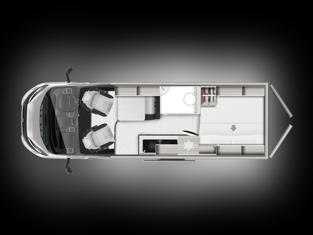 Introducing the Auto-Trail Expedition 68 campervan. Built on the market leading Fiat Ducato chassis with manual or automatic gearbox options. The Expedition 68 layout offers a practical and comfortable space with swivel captains seats, forward facing dinette with additional travel seats, side kitchen, side wetroom, and rear elevated double bed. Open up the rear doors to access an impressive storage area with optional pull out trays ideal for bikes, paddleboards, kayaks, or other leisure equipment. An optional pop-top roof offers additional sleeping space, converting the 68 into a family friendly adventure.