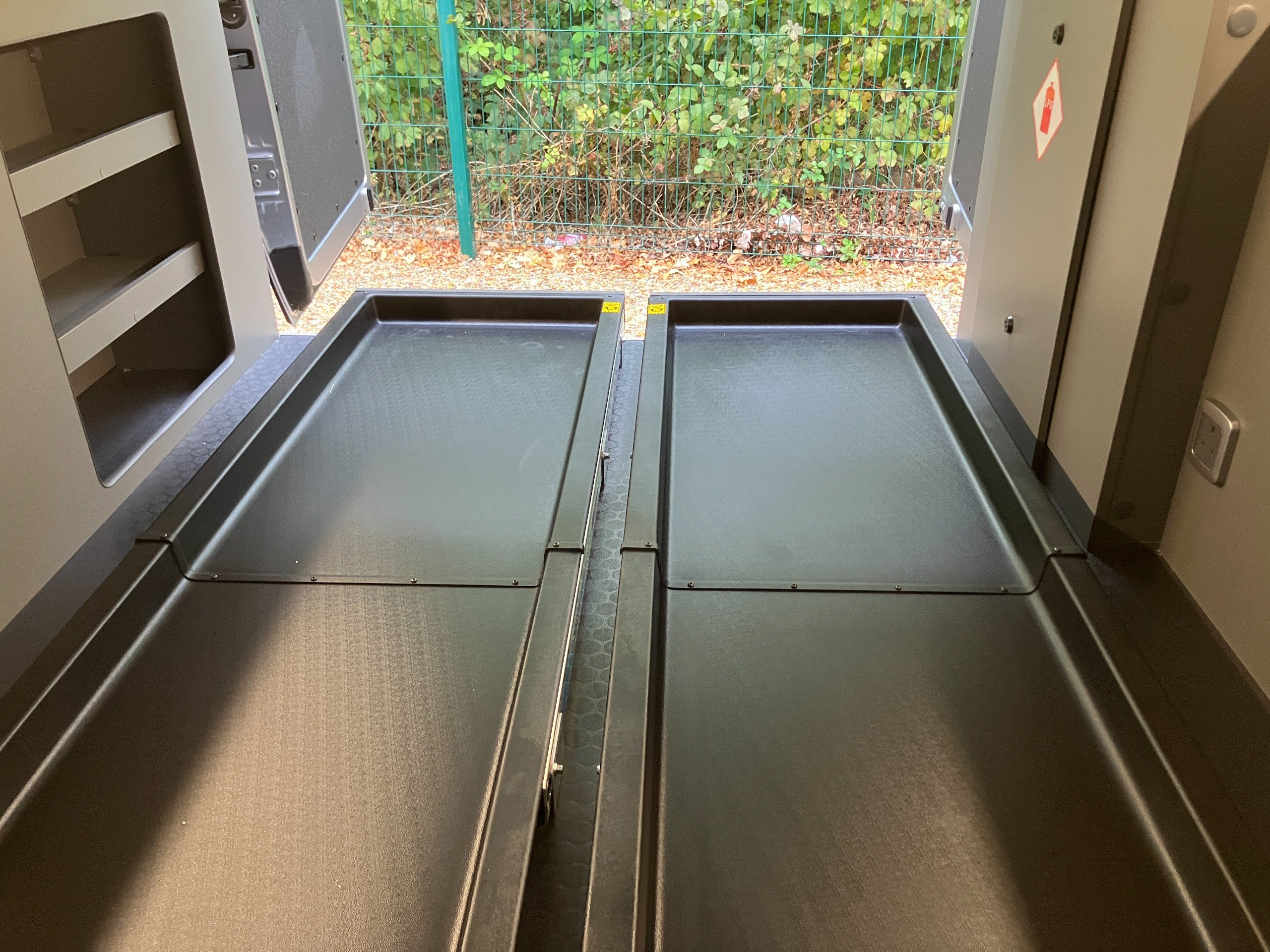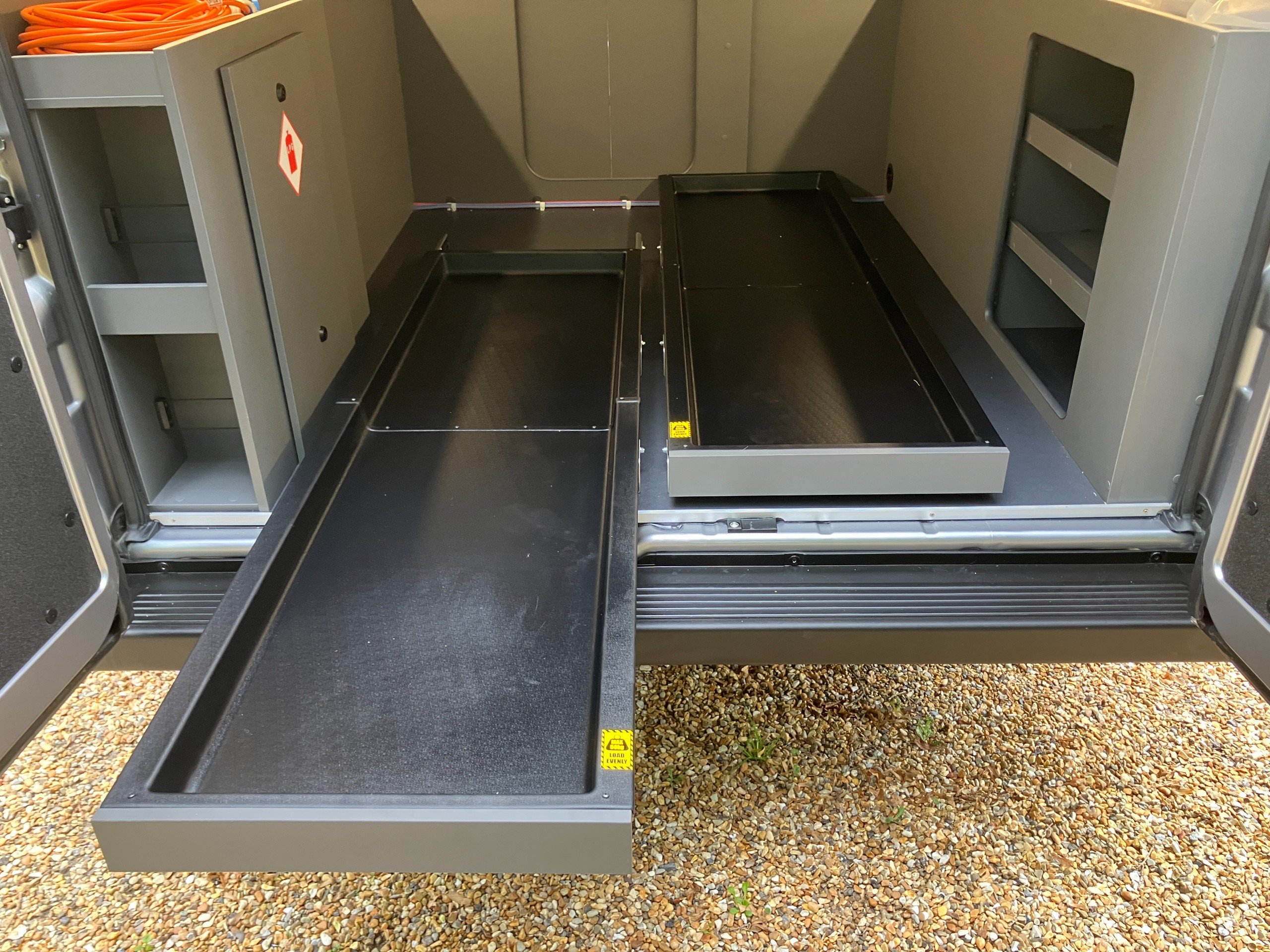 - x2 Slide out garage tray (1.2m slide out for easy loading)