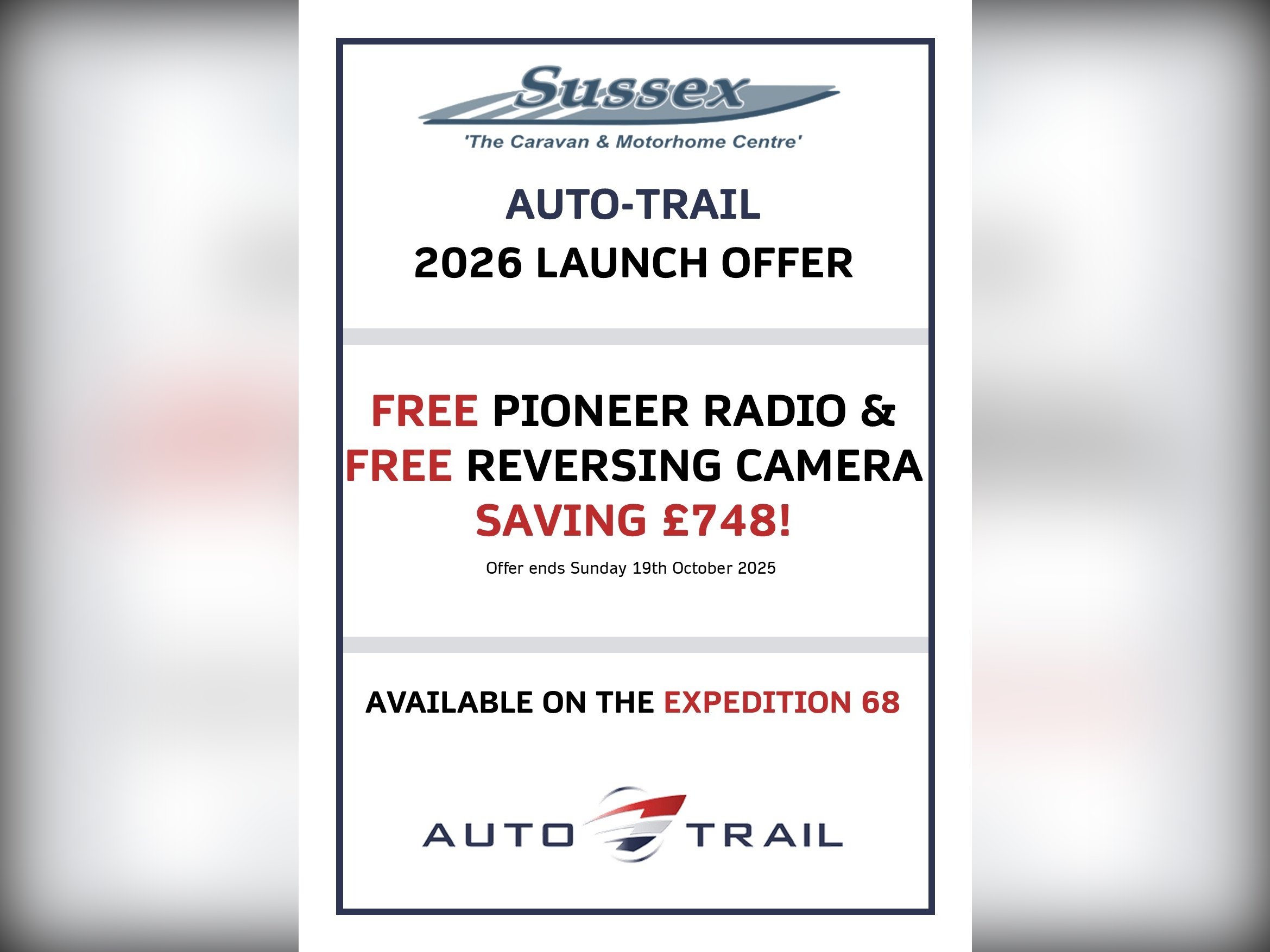2026 Auto-Trail Expedition 68 Includes Reversing Camera, Pioneer DAB touch screen radio with Apple CarPlay & Android Auto, x2 Slide out garage trays & Alloy Wheels.
