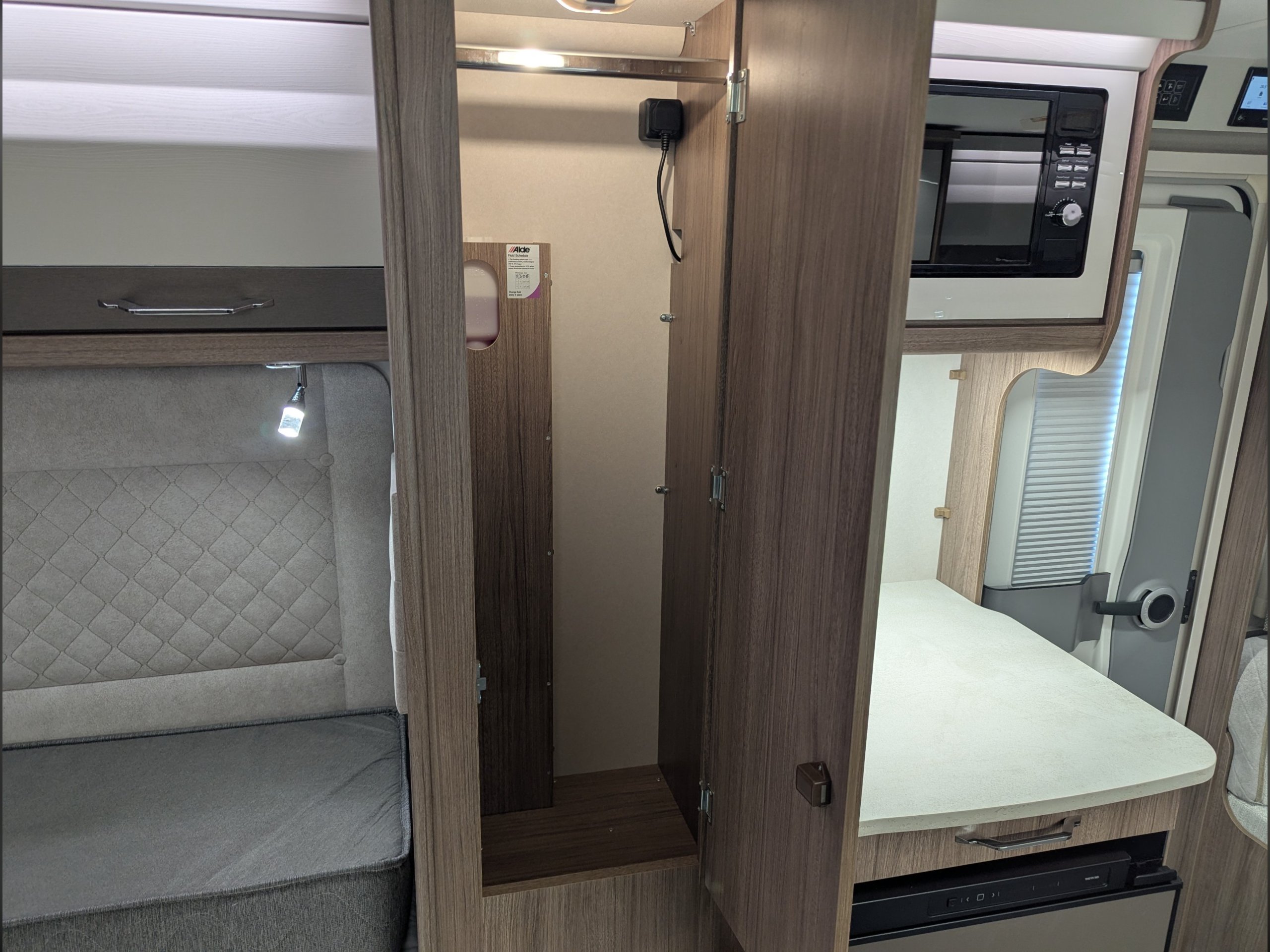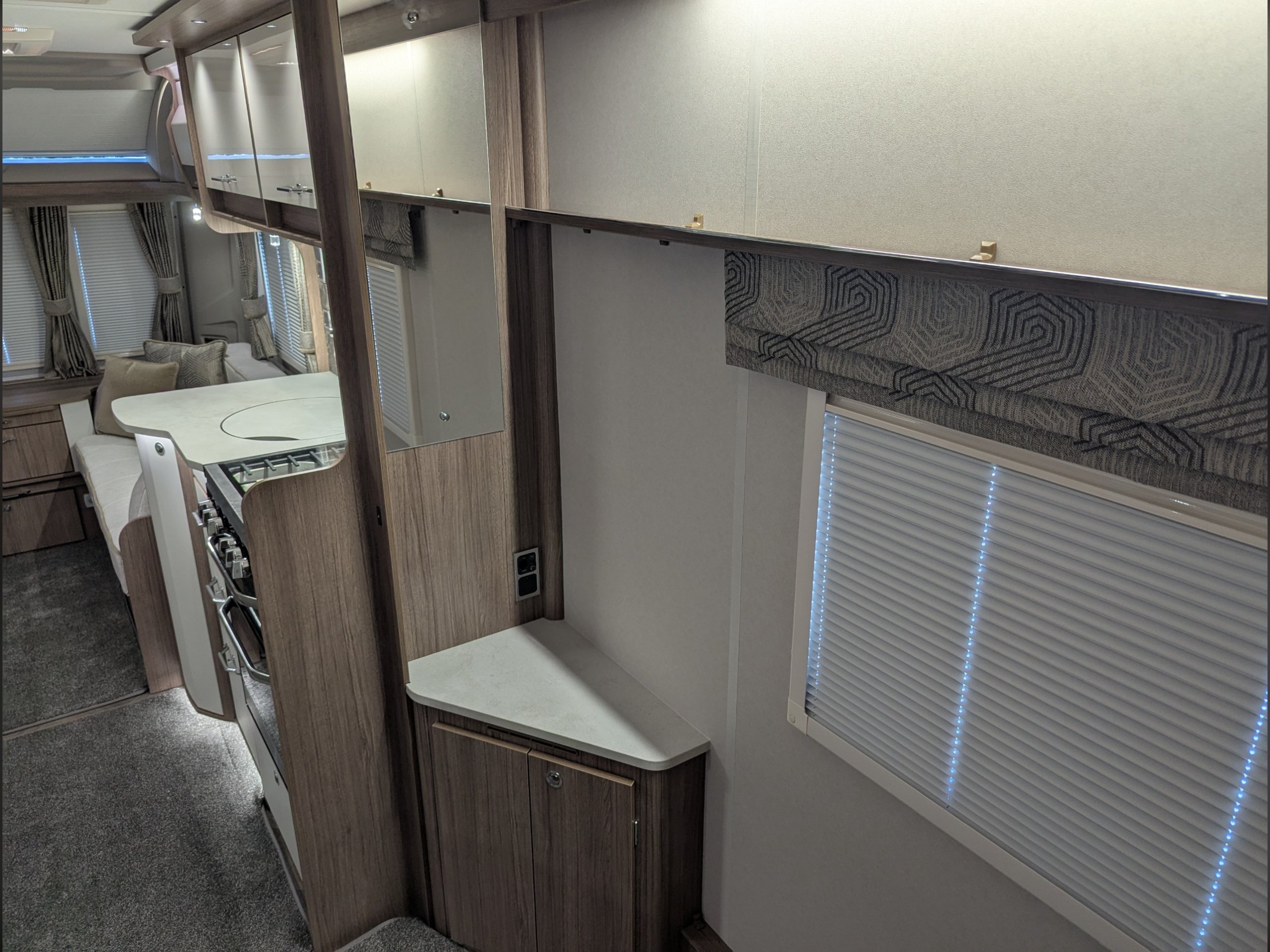 4 berth, single axle, end island bed island bed layout with mid-washroom.