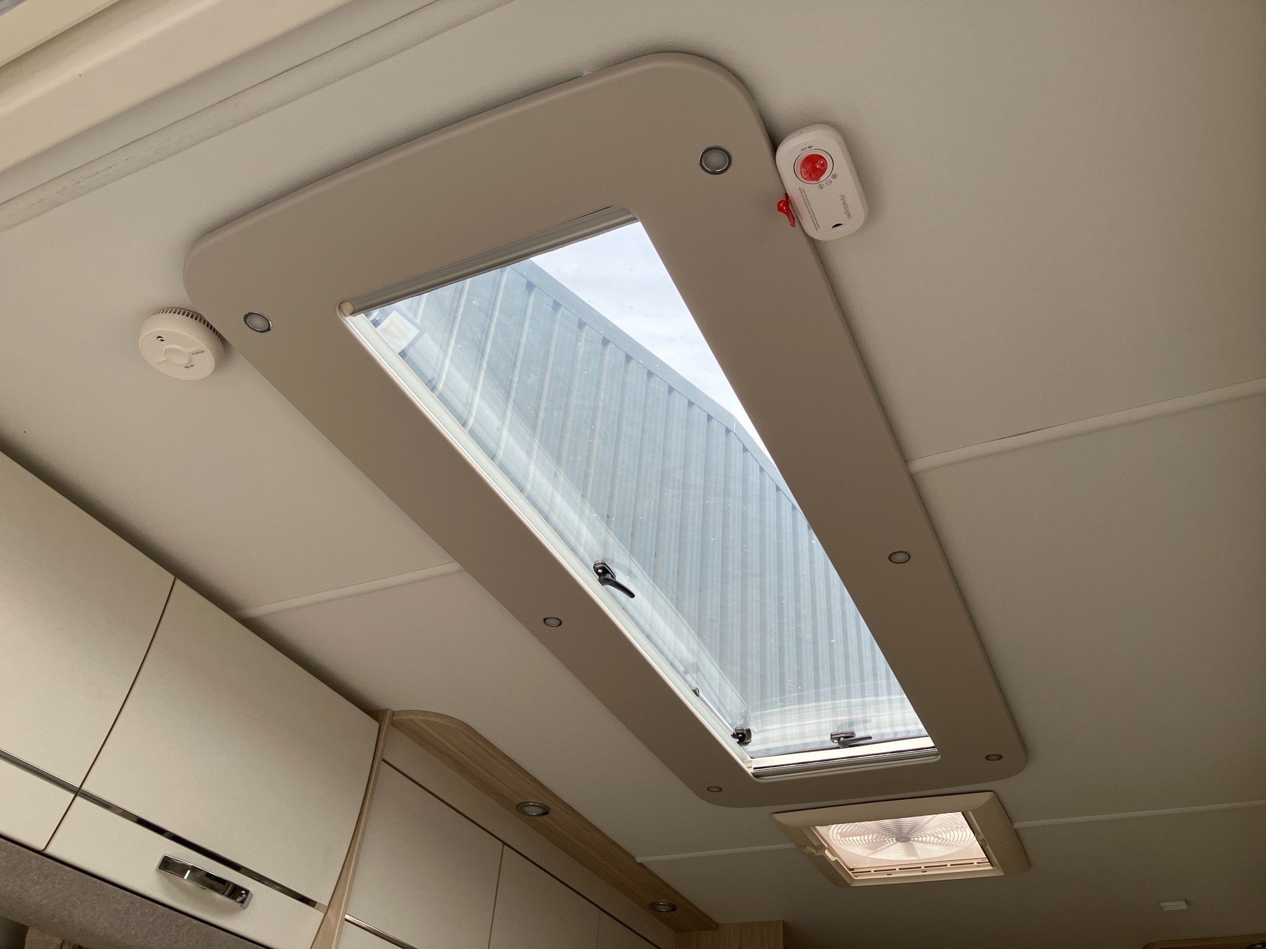 - Stargazer rooflight incorporating pleated blind and flyscreen, with stylish surround and integrated downlights
