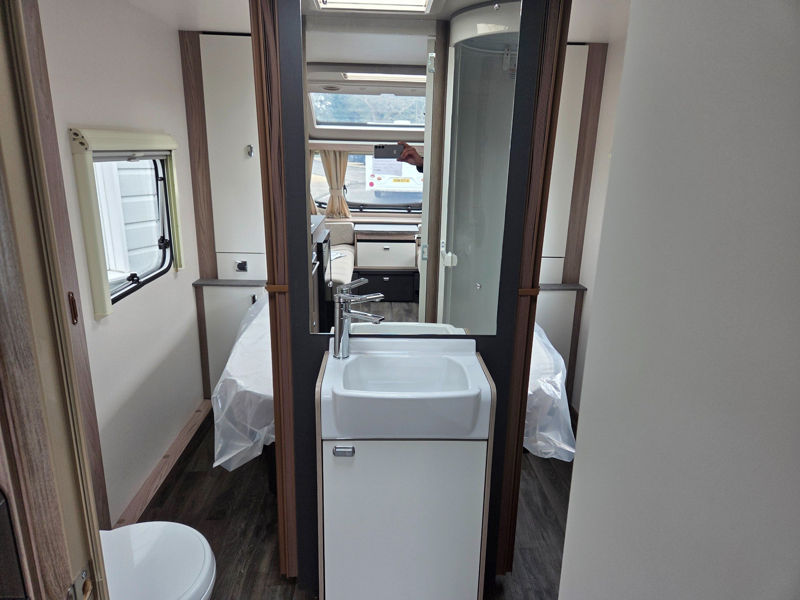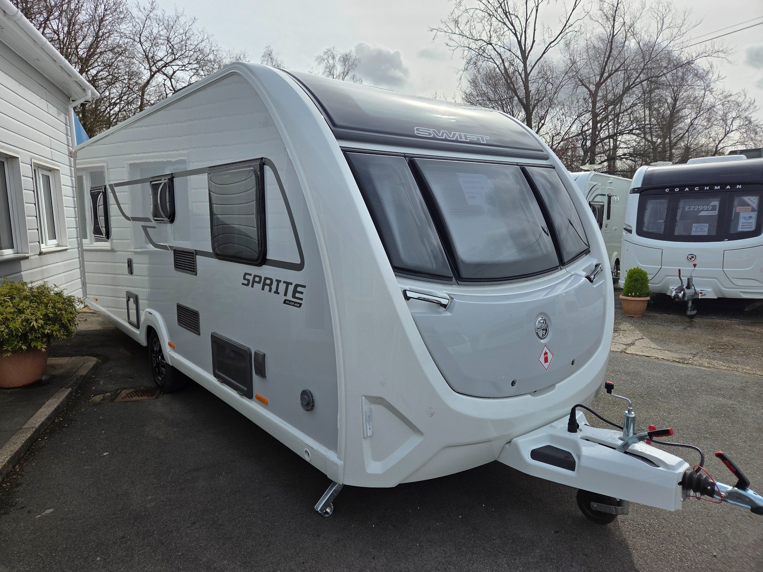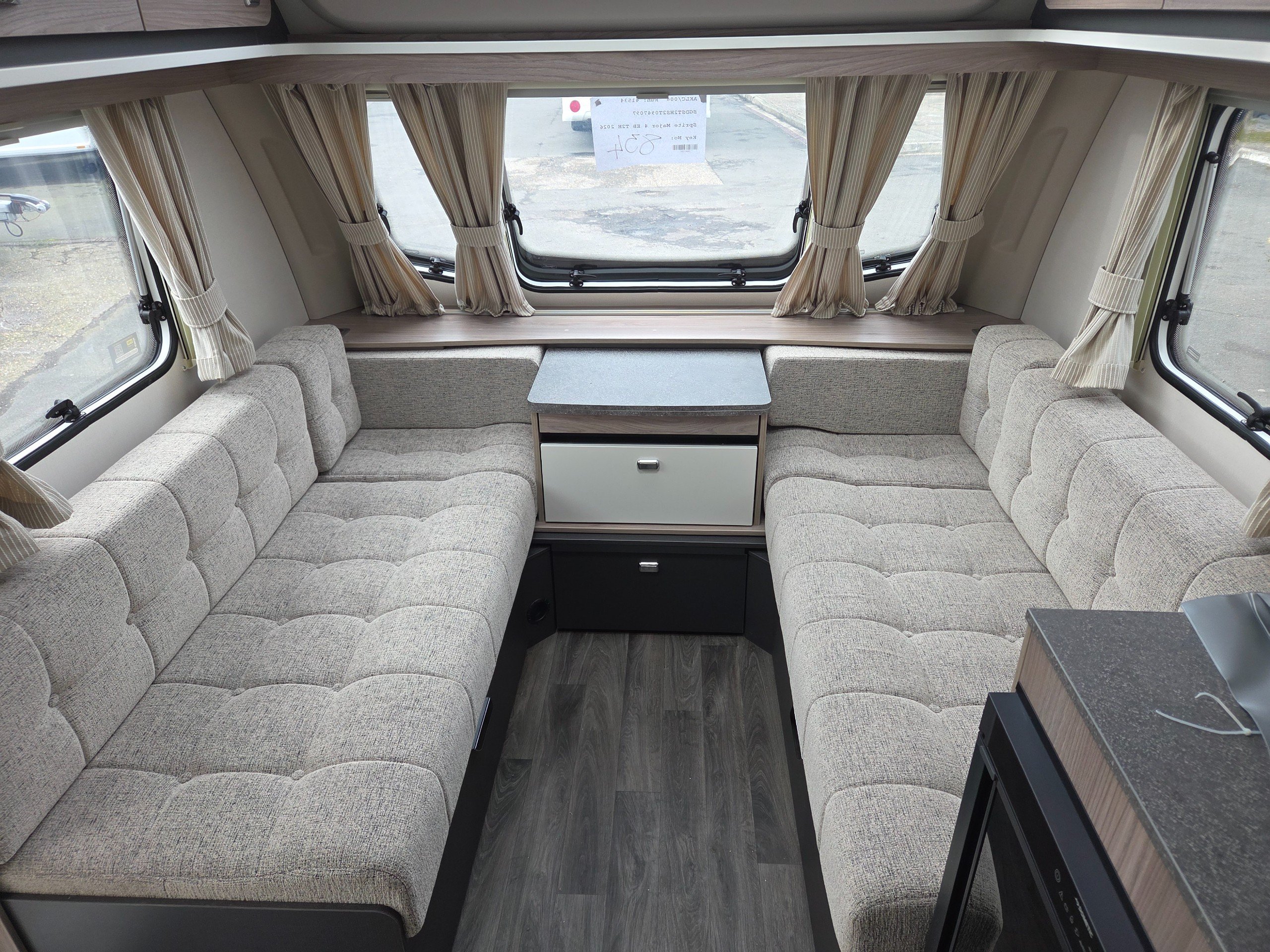 The 2026 Swift Sprite Major 4 EB is a 4-berth caravan with a fixed rear island bed, a mid washroom, and a front living area.