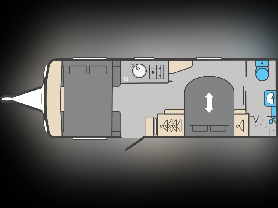 The 2026 Swift Sprite Major 4 SB is a 4-berth caravan with a transverse island bed, a rear washroom, and a front living area.