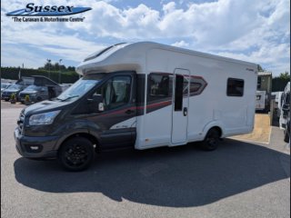 This Auto-Trail F-Line F74 motorhome, built on the popular Ford chassis with manual or automatic gearbox options available. This layout offers a spacious front living area and large island bed at the rear above a garage storage area. An option to add a drop-down electric bed over the front lounge area is also available.