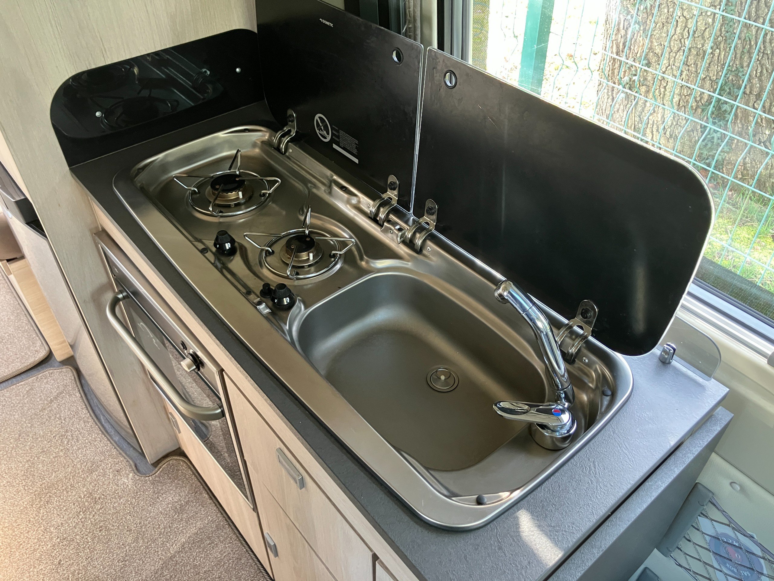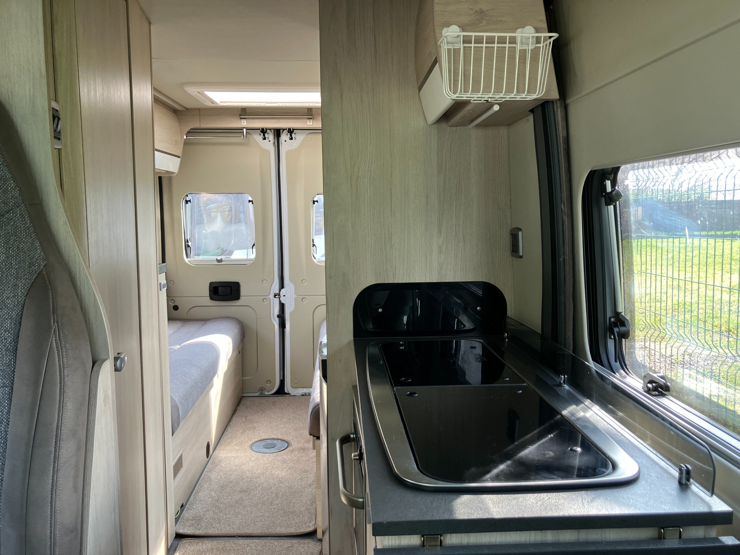 Good things come in small packages and the Benimar Benivan 122 is no exception. Sleek and stylish in a Tardis style package, the Benivan 122 is ready for every outdoor adventure. Measuring under 6.5m the Benivan is suitable for driveways and carparks alike. Euipped with heated driver and front passengers seats combined with grade III insulation and the chassis mounted dual fuel blown air heating and boiler for reliable hot water and heating on tour perfect for those cooler travels in winter and early spring. The Benivan's bejoux kitchen featuring 2 burner gas hob, oven, fridge/freezer and stainless steel sink is ready for you to cook up a storm, alongside the sliding side door complete with flyscreen, and exterior wind out canopy perfect for taking shade from the summer sun.