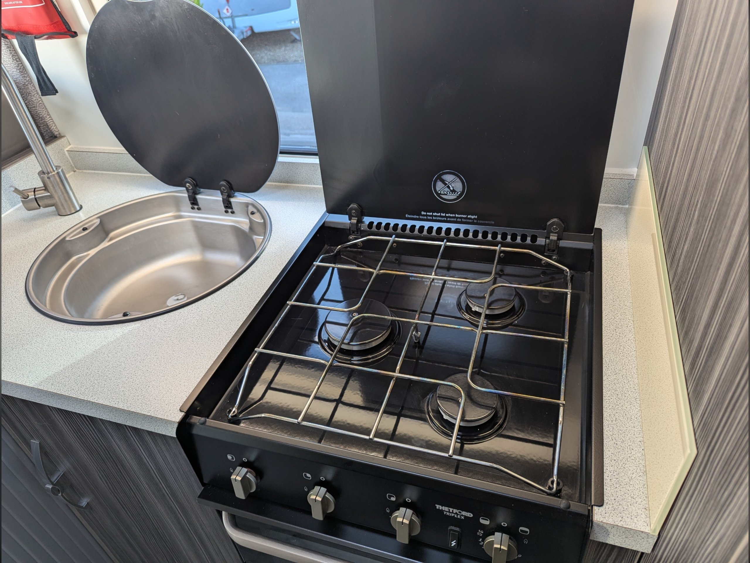 It comes with the added benefit of a solar panel, sun canopy, reverse camera and satnav
