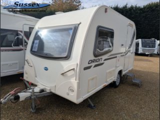 The 2011 Bailey Orion 400/2 is a 2-berth caravan with a spacious front lounge, a side kitchen, and a large end washroom.
