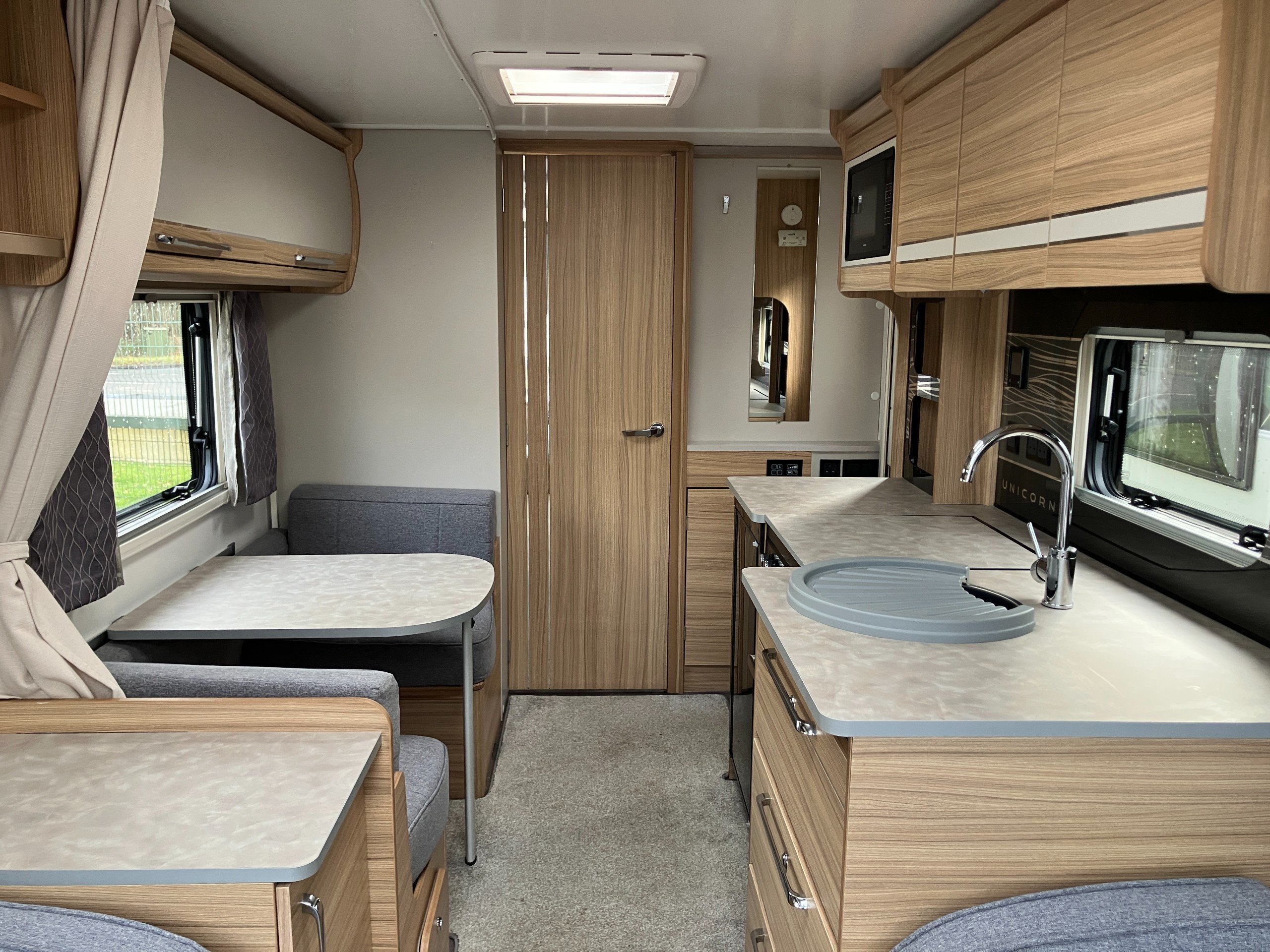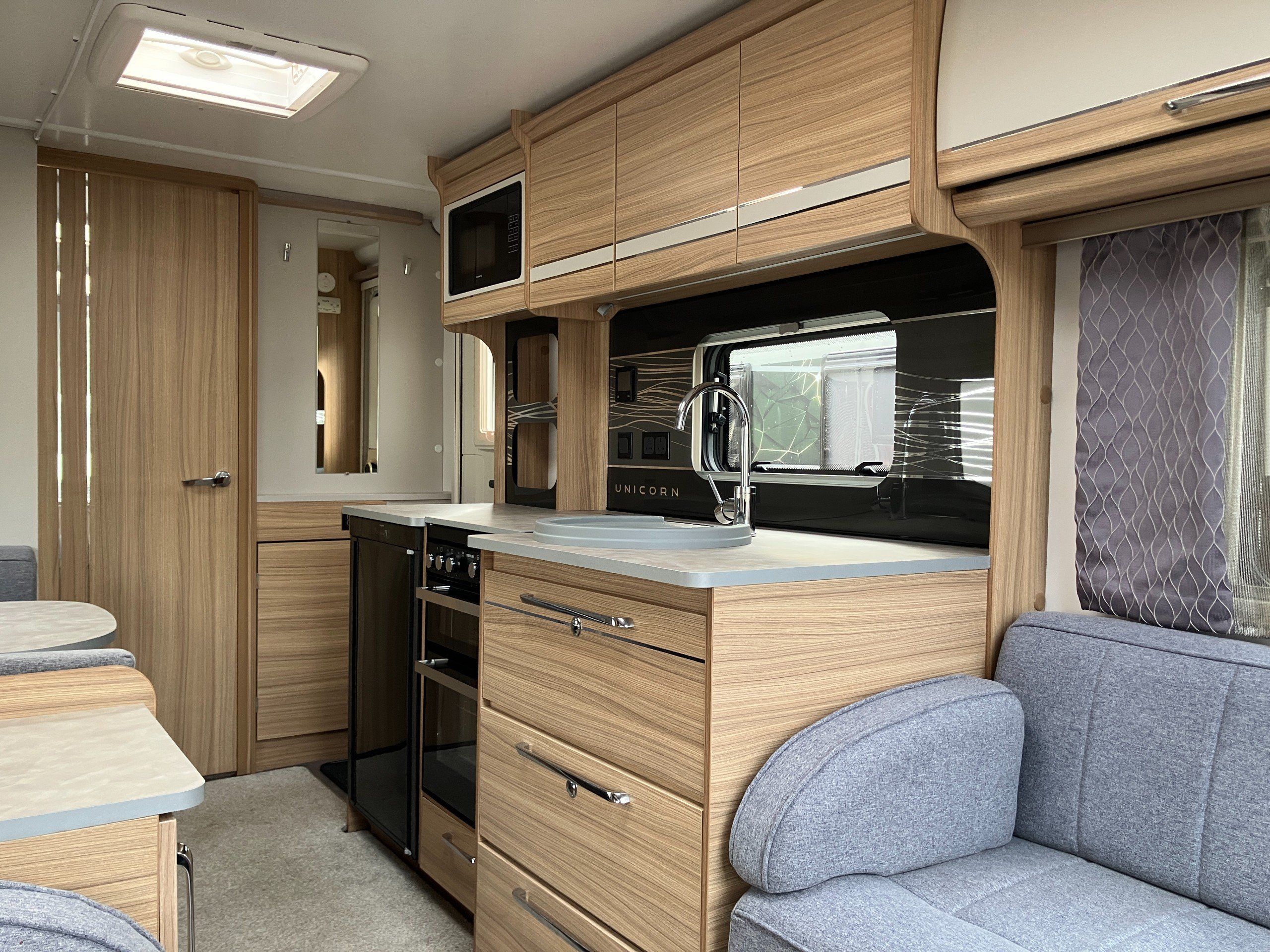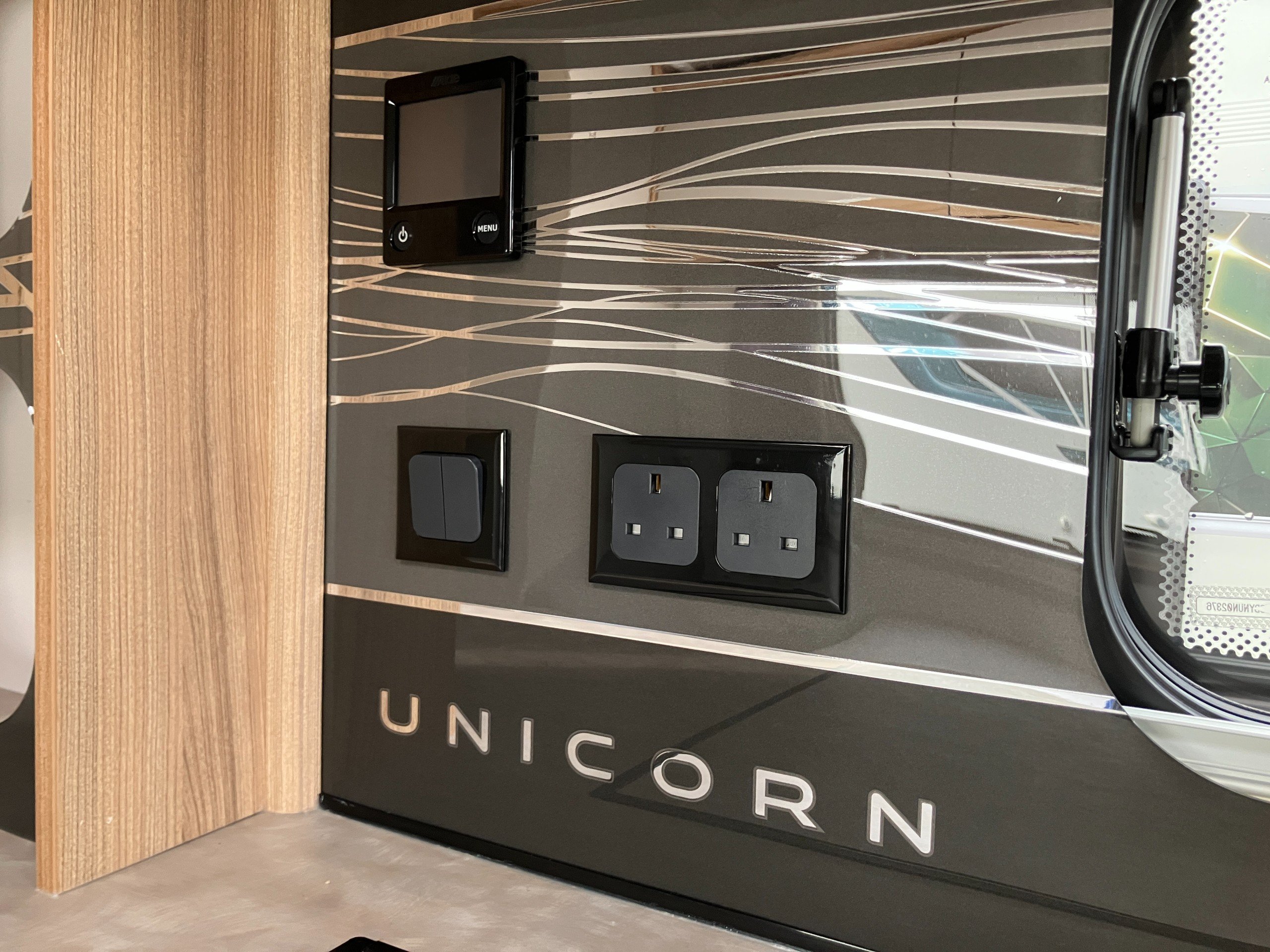 Spacious and practical layout with the luxury of ALDE wet central heating. Combined with Alu-Tech technology, using a unique interlocking aluminium framework to clamp the body panels together providing greater protection against the elements due to a significant reduction in the number of external joints and fixing points, along with using timber-free components in the upper bodyshell panels, the Unicorn Madrid is perfect for anyone looking for a comfortable escape in summer or winter.