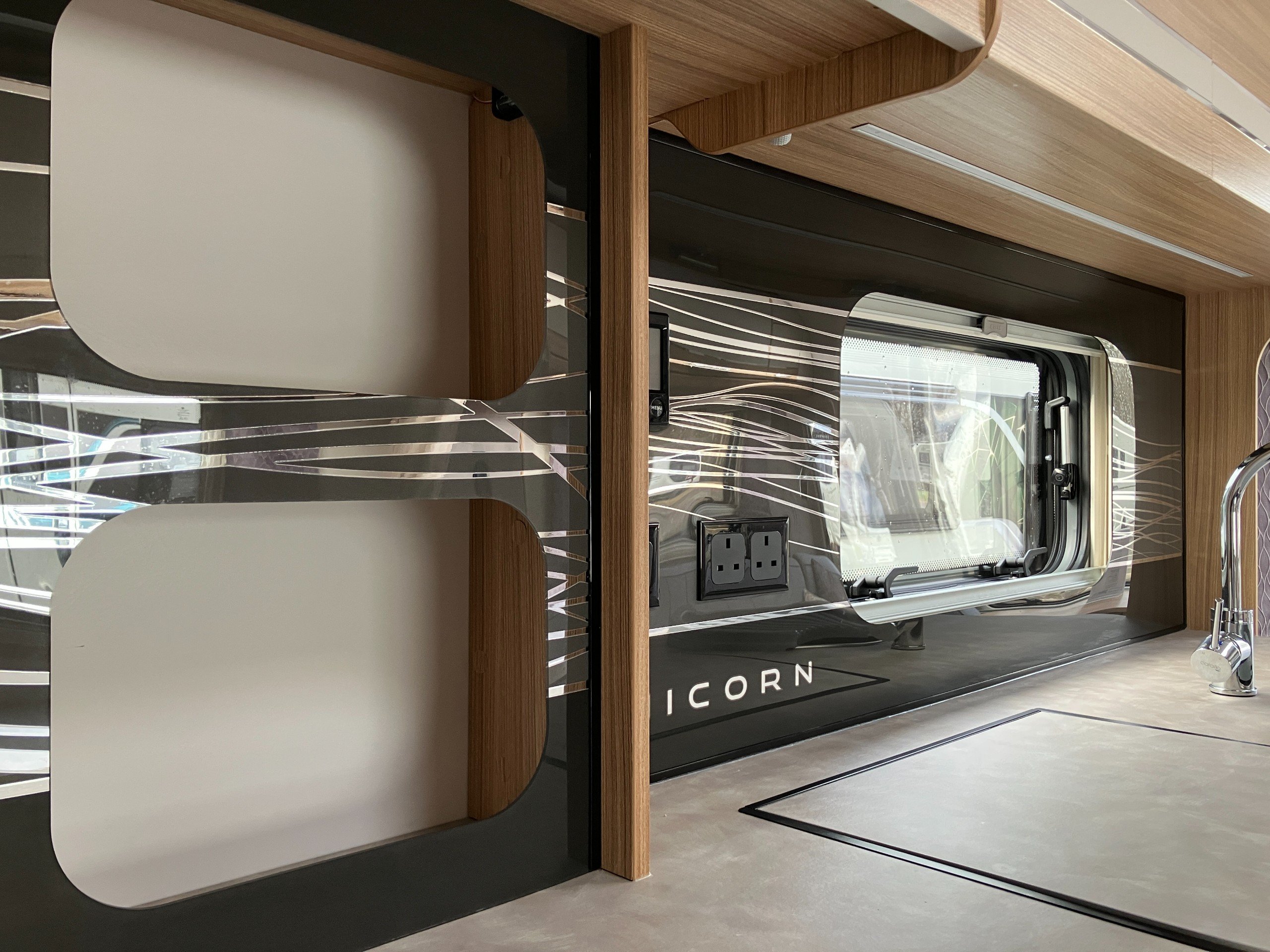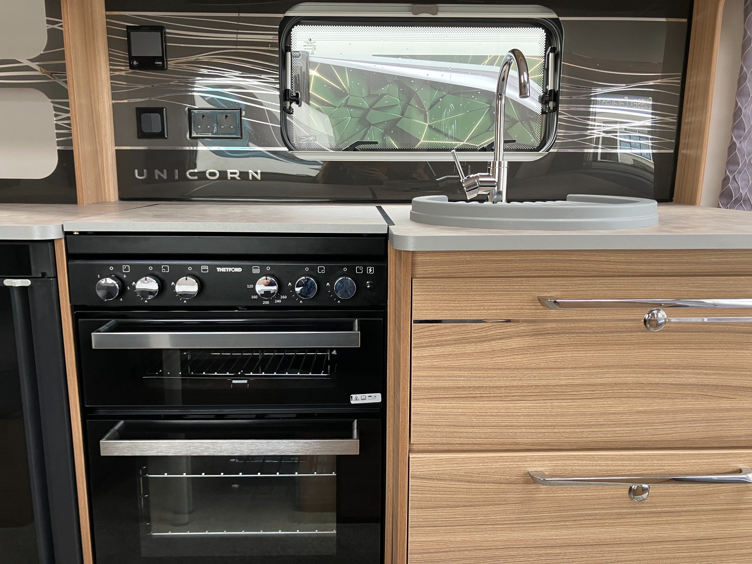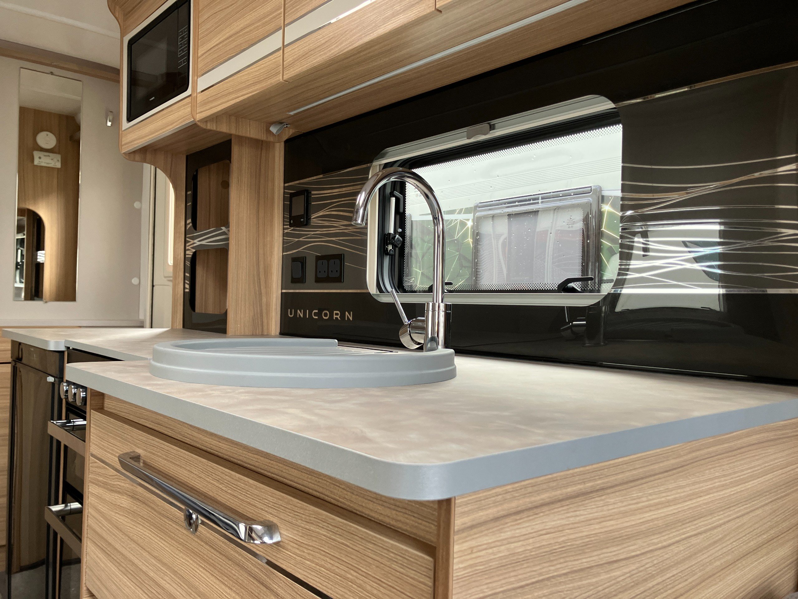 Spacious and practical layout with the luxury of ALDE wet central heating. Combined with Alu-Tech technology, using a unique interlocking aluminium framework to clamp the body panels together providing greater protection against the elements due to a significant reduction in the number of external joints and fixing points, along with using timber-free components in the upper bodyshell panels, the Unicorn Madrid is perfect for anyone looking for a comfortable escape in summer or winter.