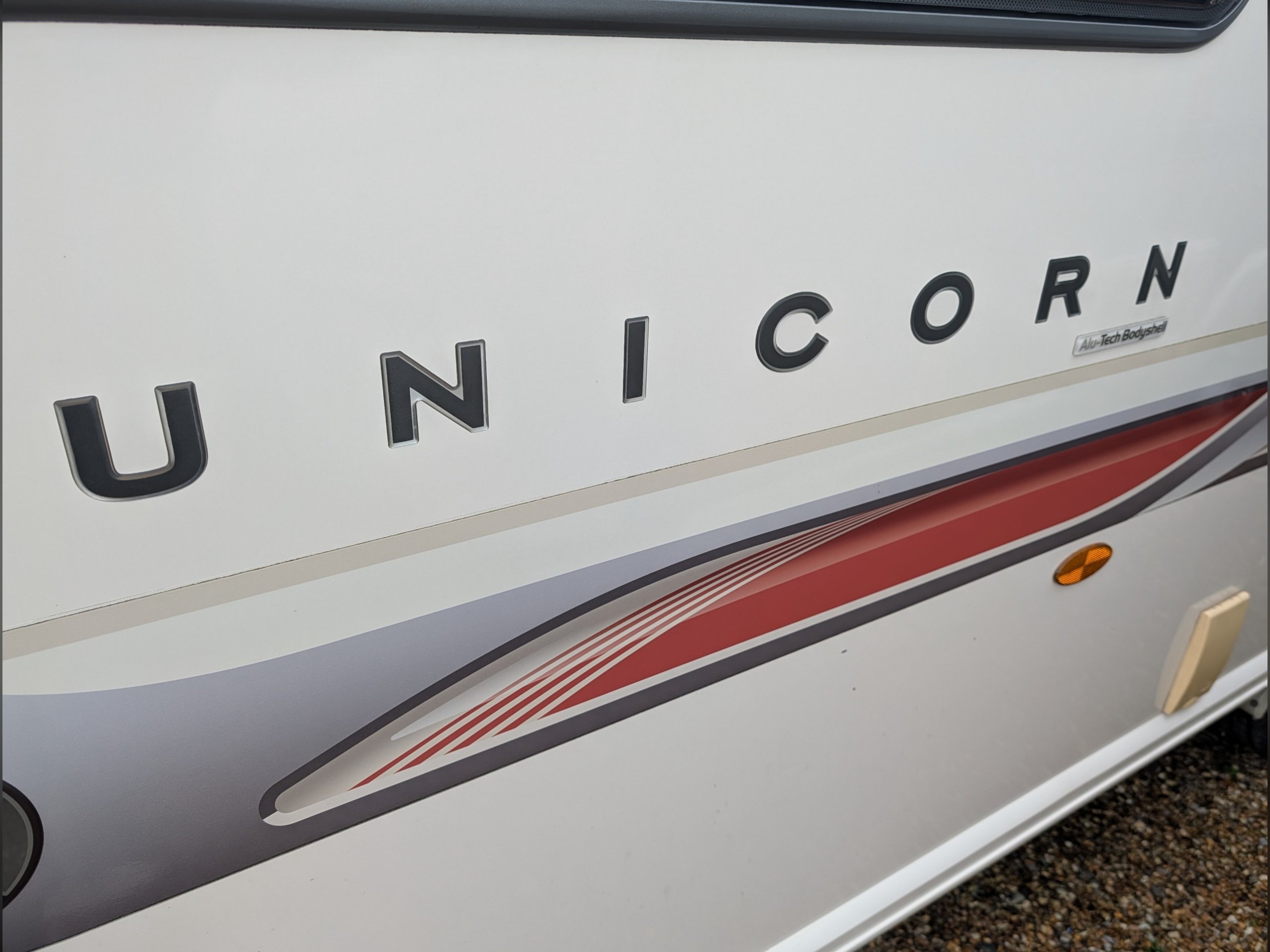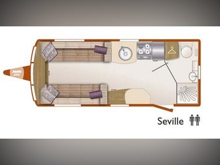This 2011 Bailey Unicorn Seville is a 2-berth touring caravan featuring an end-washroom, parallel front lounge, and a mid-kitchen layout.