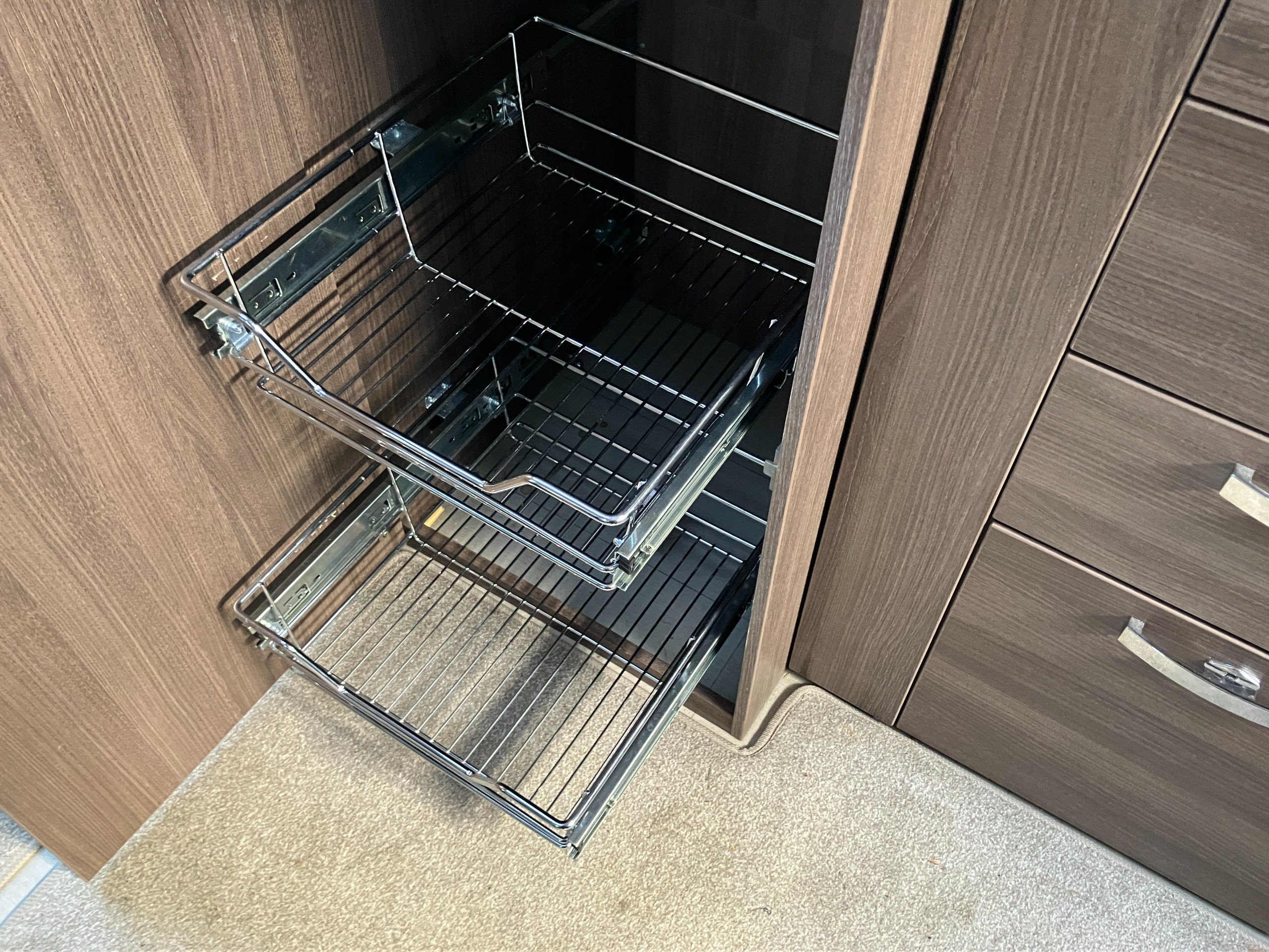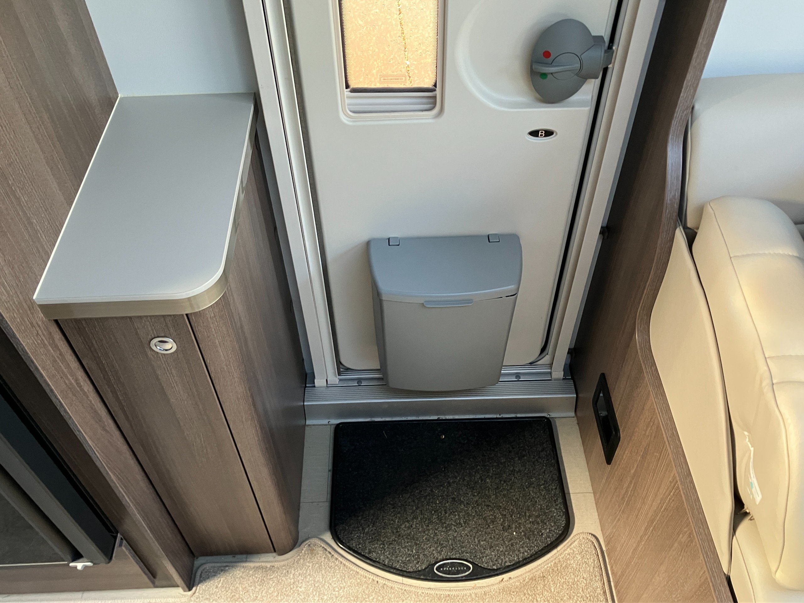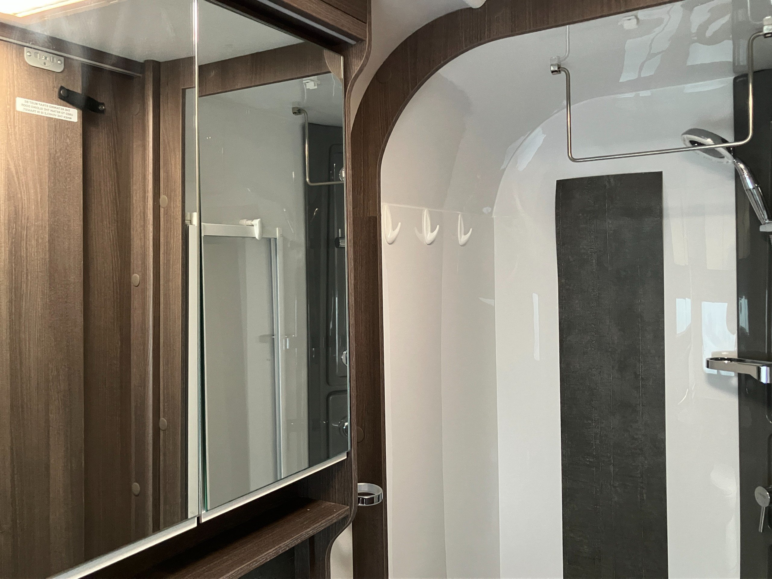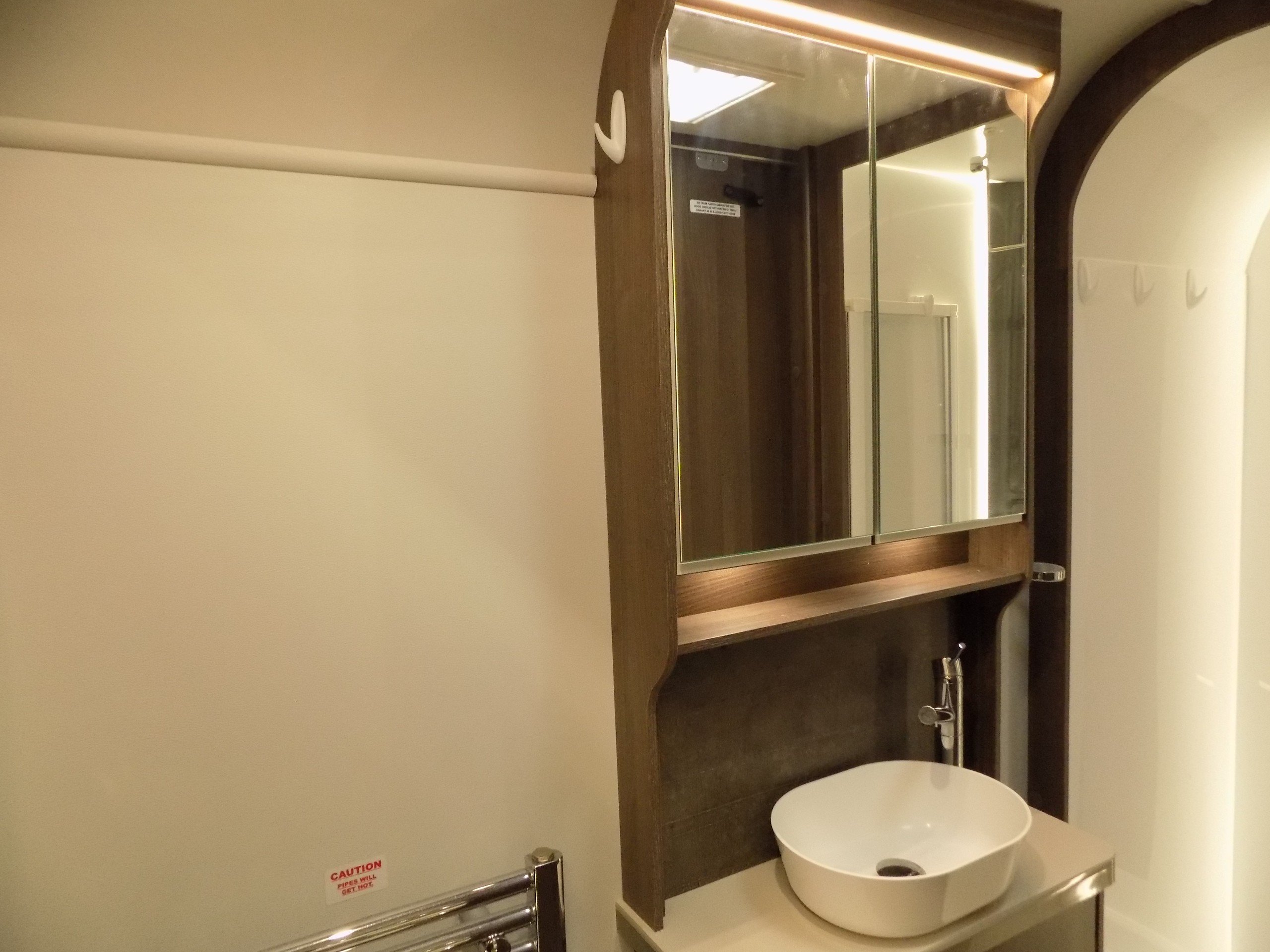 Twin axle, 8ft Wide, 4 berth, transverse bed, rear washroom layout. Load margin: 234kg.