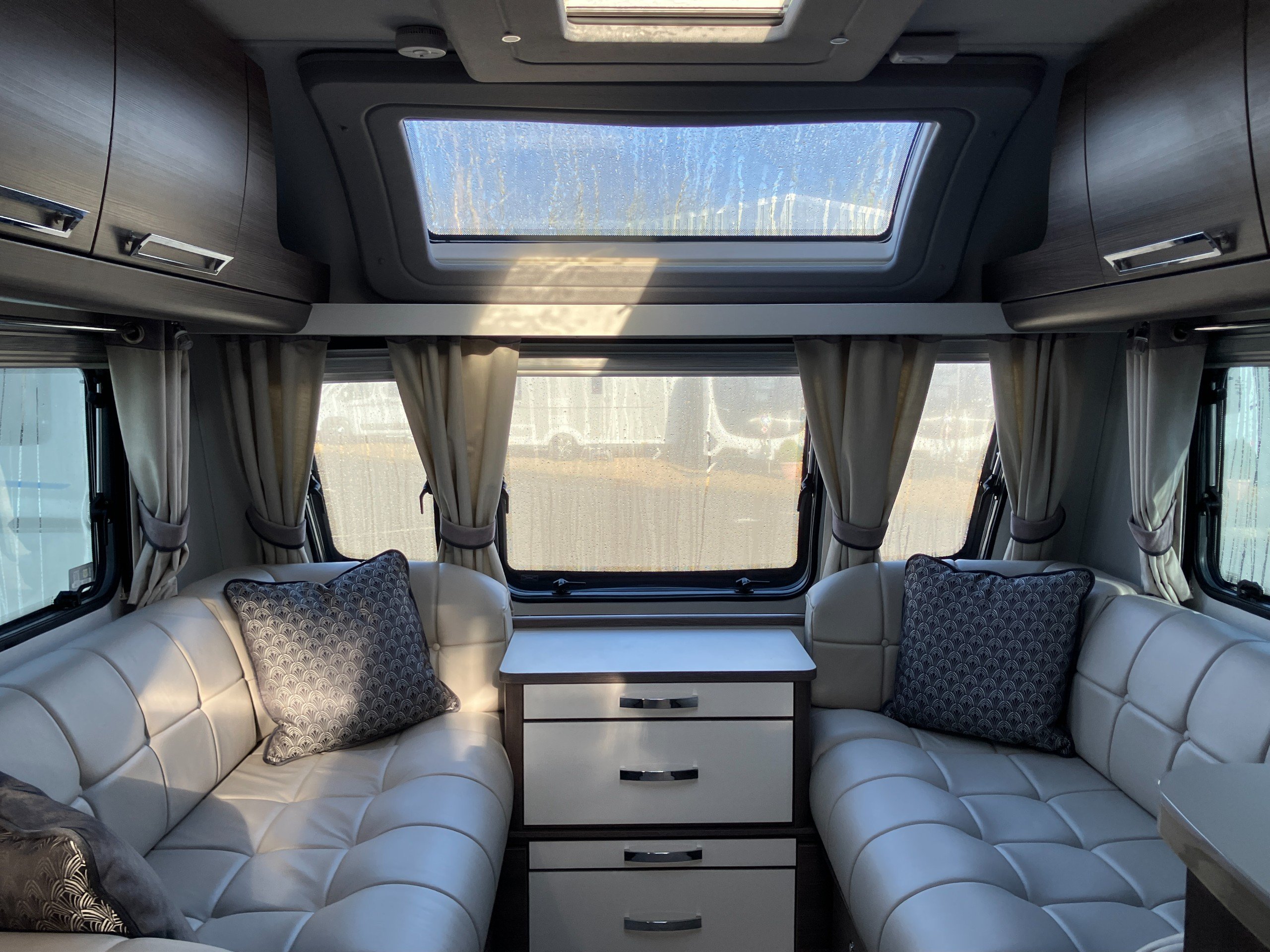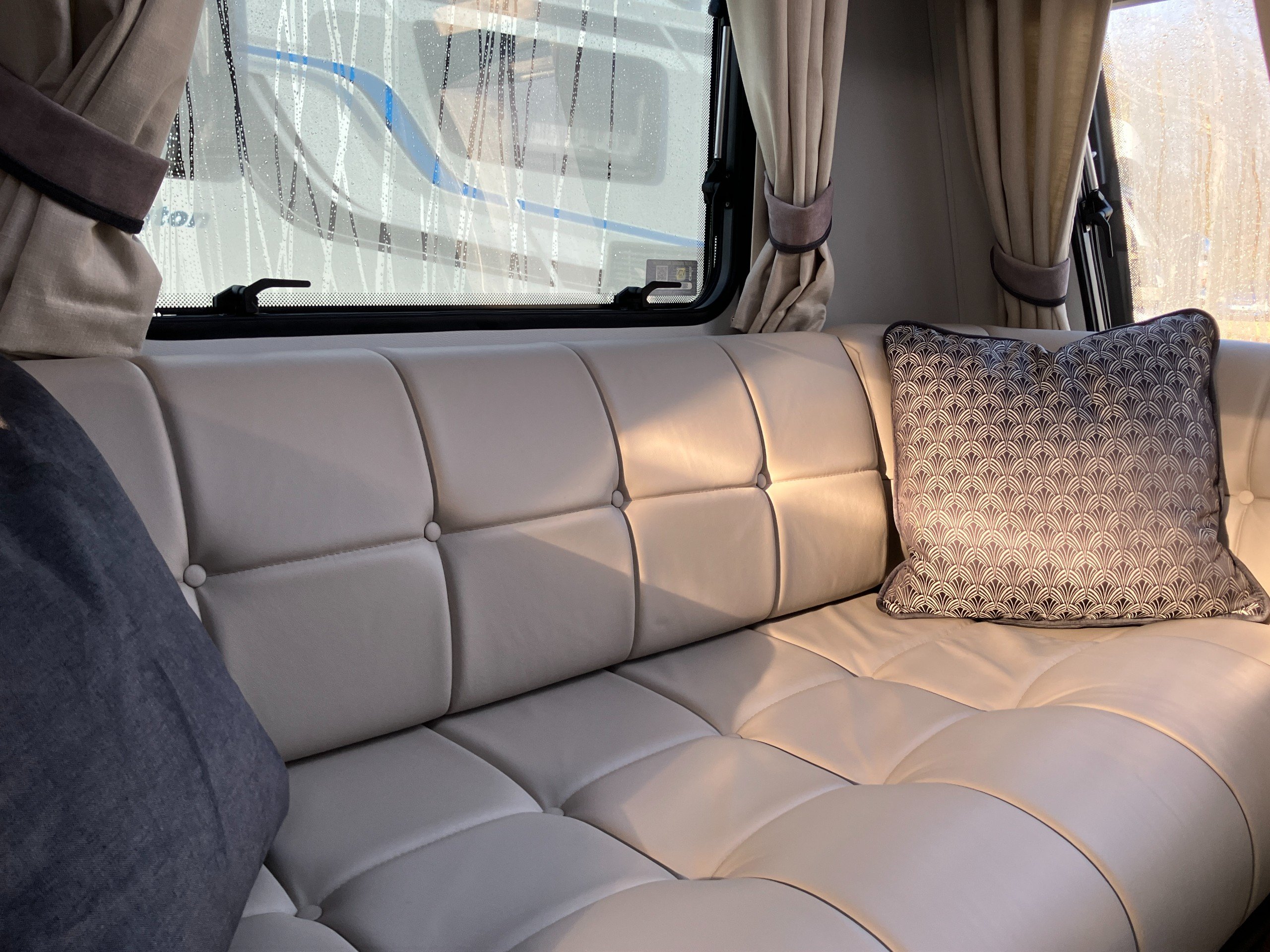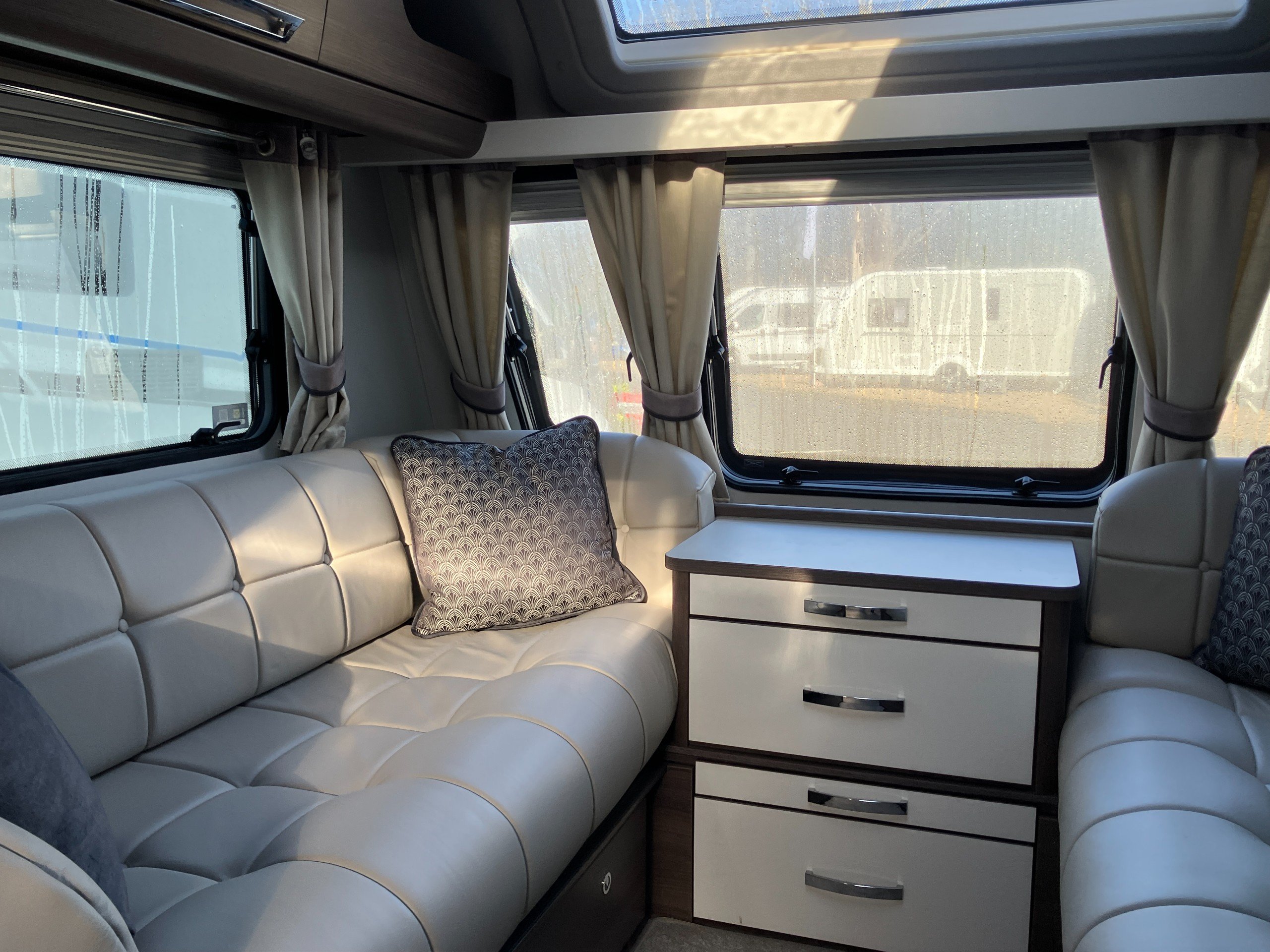 Luxury touring caravan with opulent design, the Cruiser is a statement of touring elegance with an expansive layout, grand interior flow, hotel inspired rear washroom facilities, and striking exterior finish. This high specification model offers premium performance and elevated comfort with ALDE wet central and underfloor heating, roof mounted air conditioning, E&P self levelling , sumptuous leather upholstery and AWD motor mover.