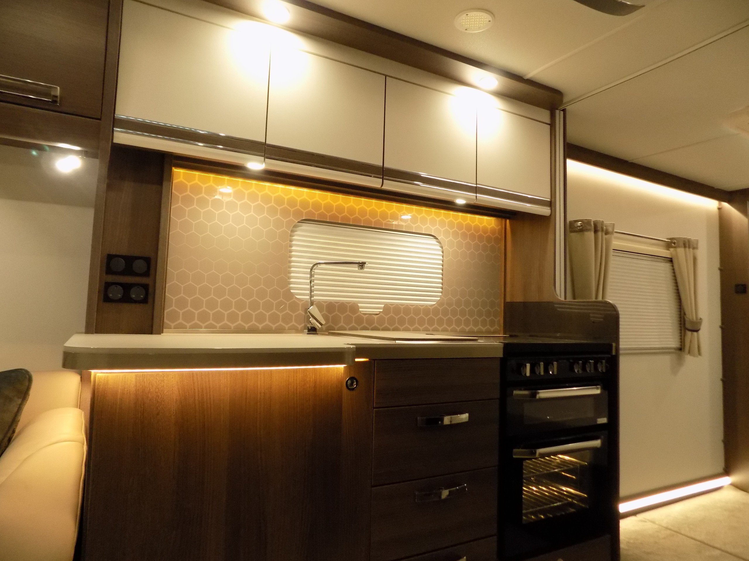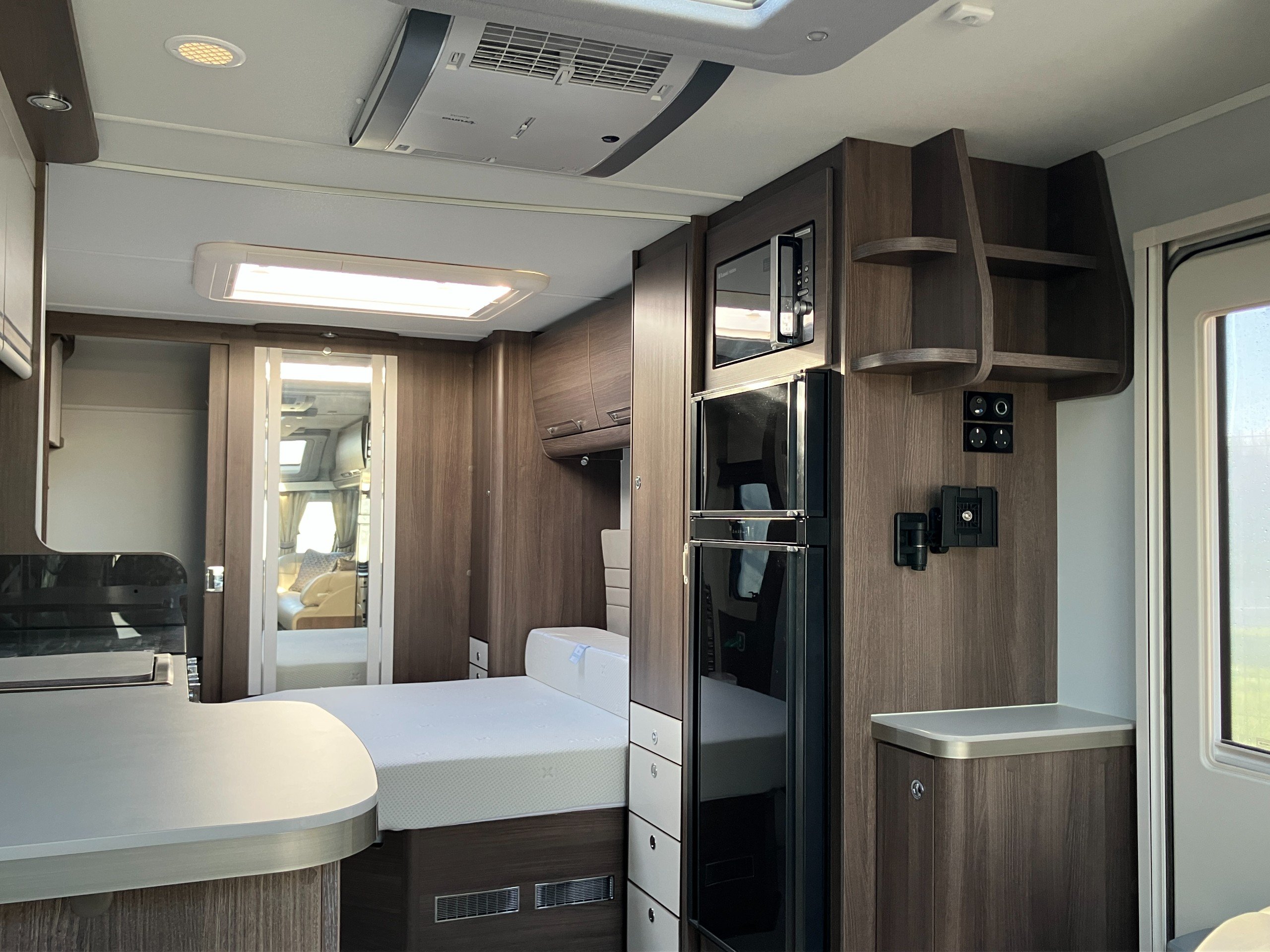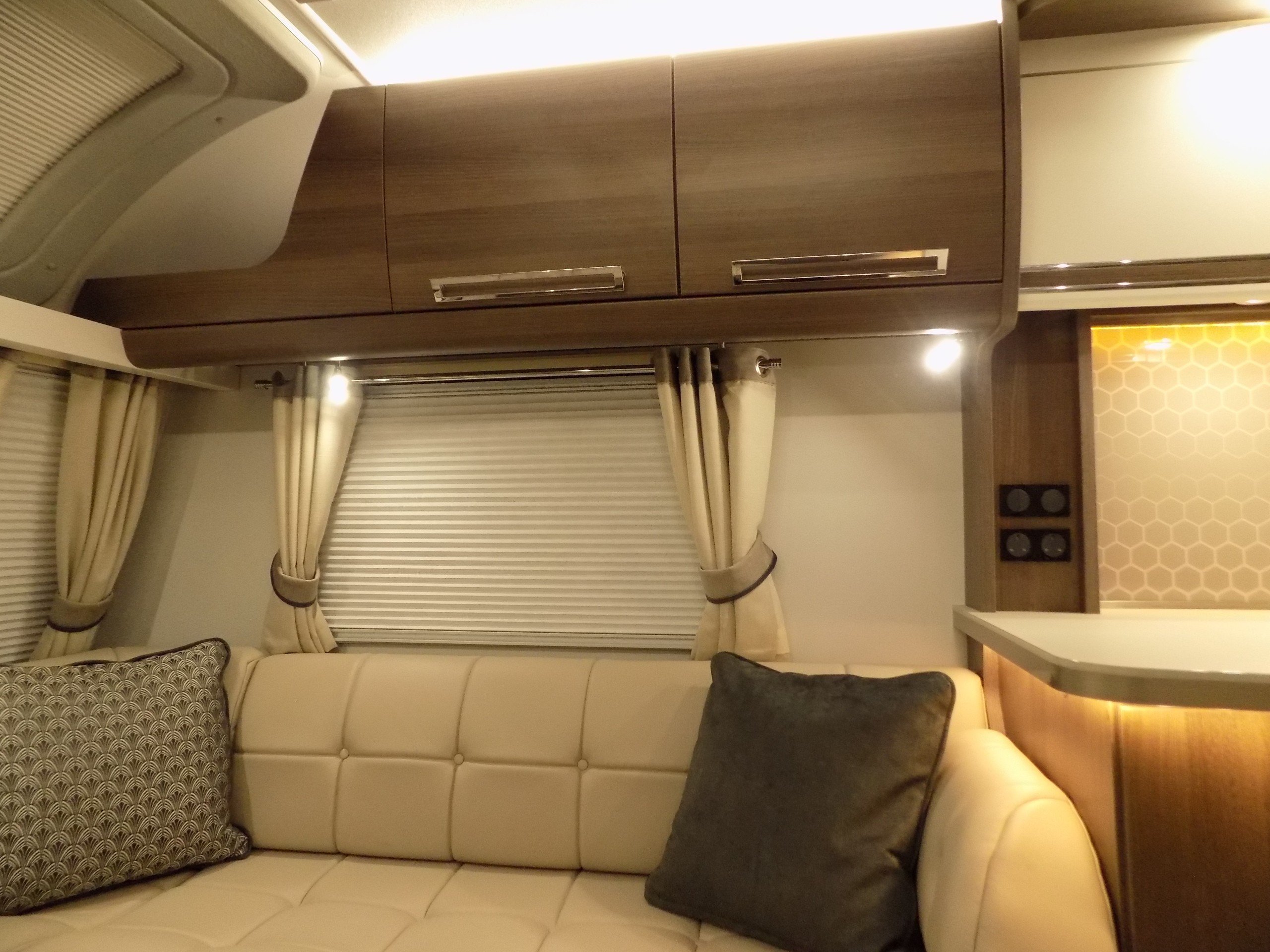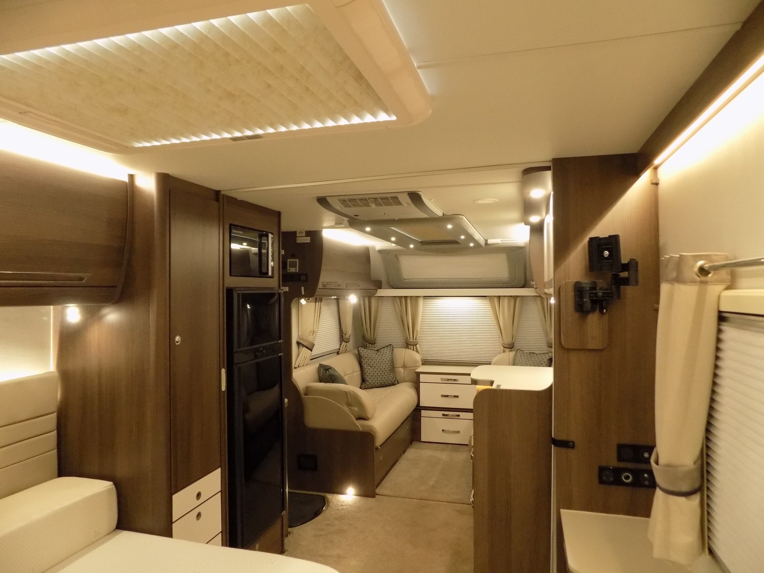 Luxury touring caravan with opulent design, the Cruiser is a statement of touring elegance with an expansive layout, grand interior flow, hotel inspired rear washroom facilities, and striking exterior finish. This high specification model offers premium performance and elevated comfort with ALDE wet central and underfloor heating, roof mounted air conditioning, E&P self levelling , sumptuous leather upholstery and AWD motor mover.