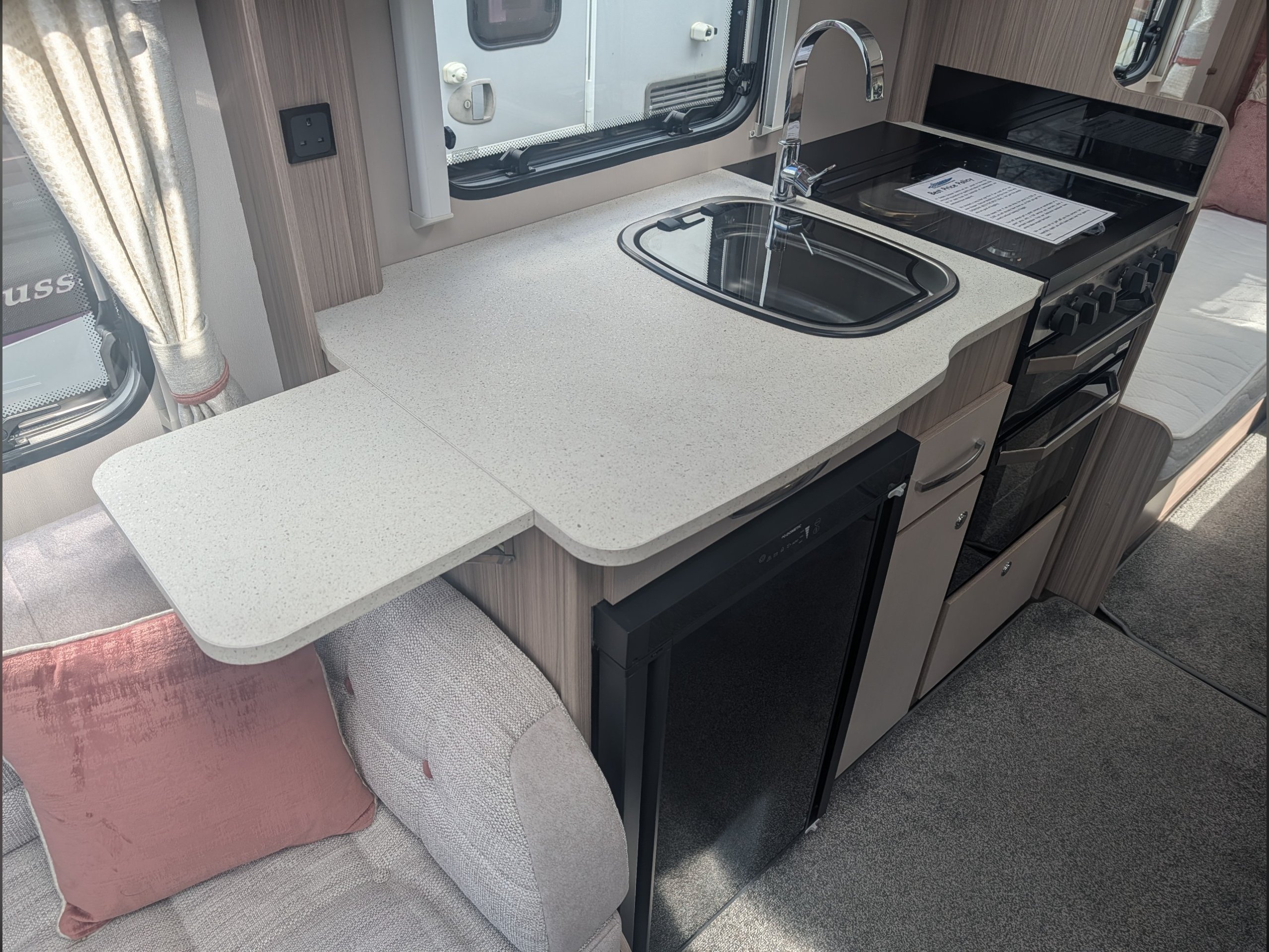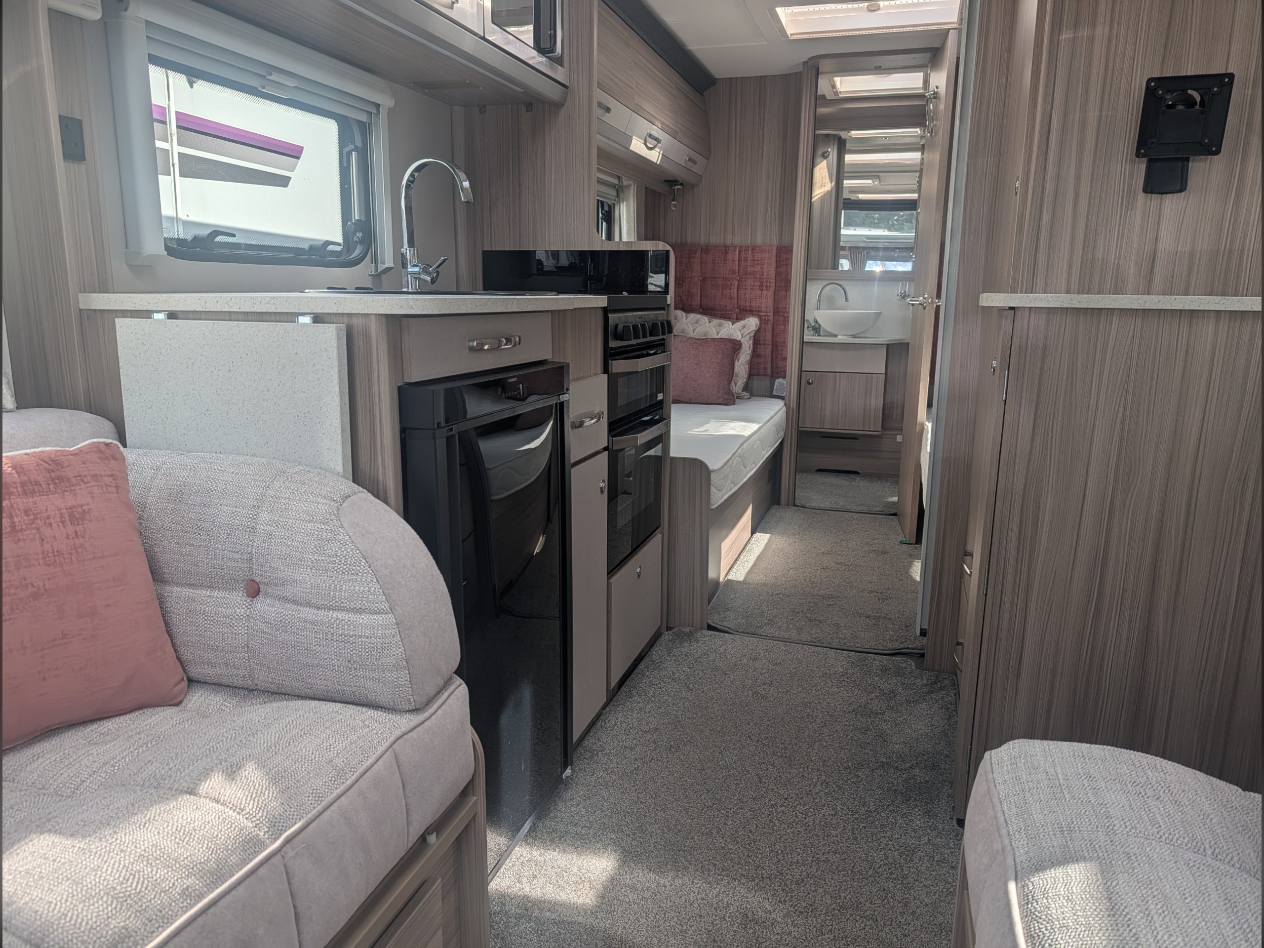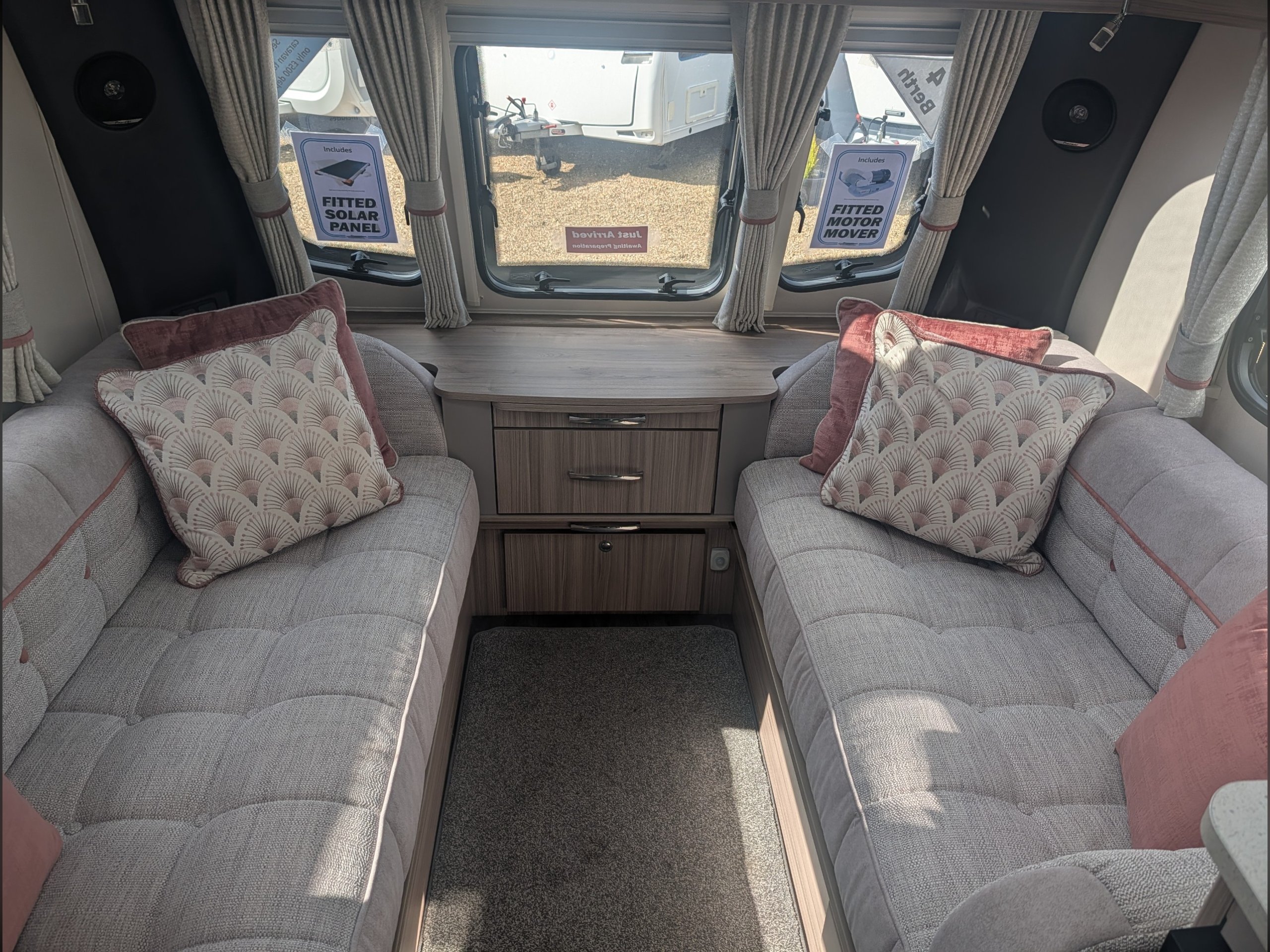 Comes with a fitted solar panel, Evo manual motor mover and bespoke Sussex graphics and soft furnishings.