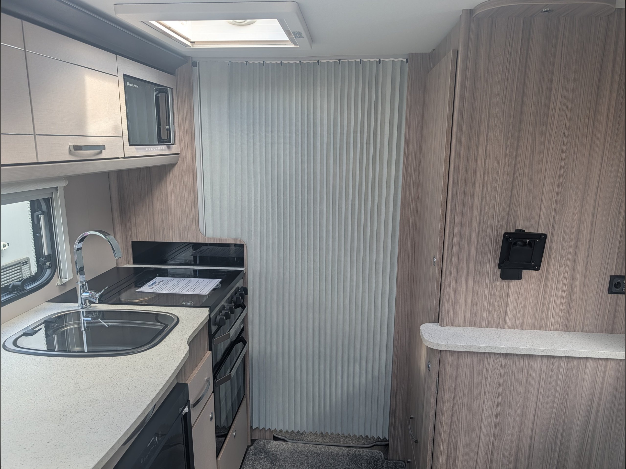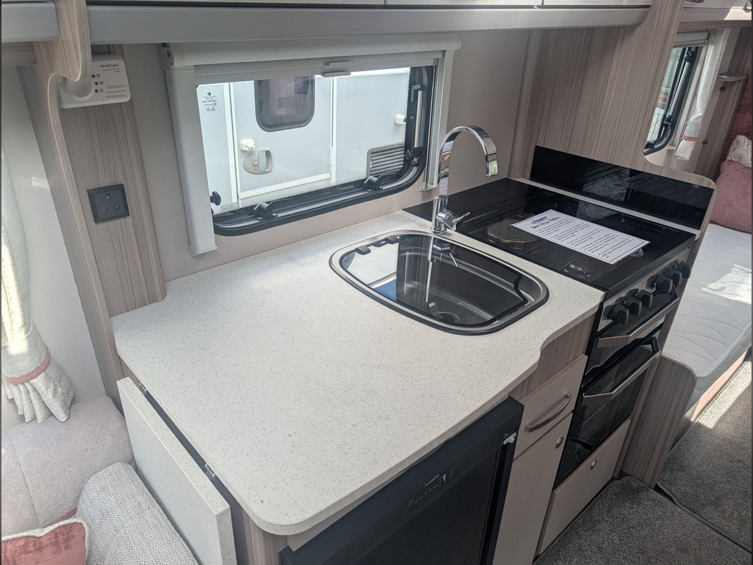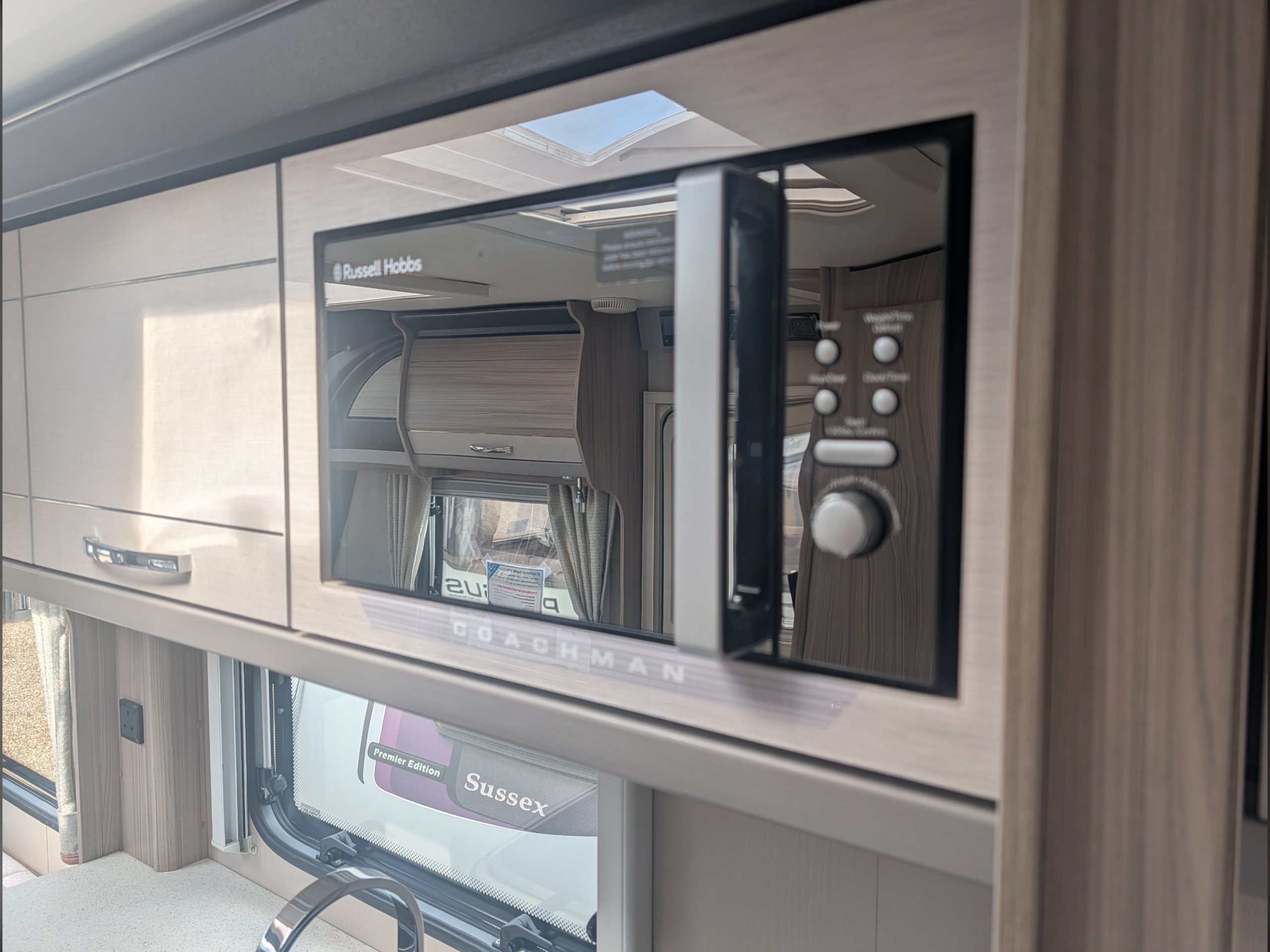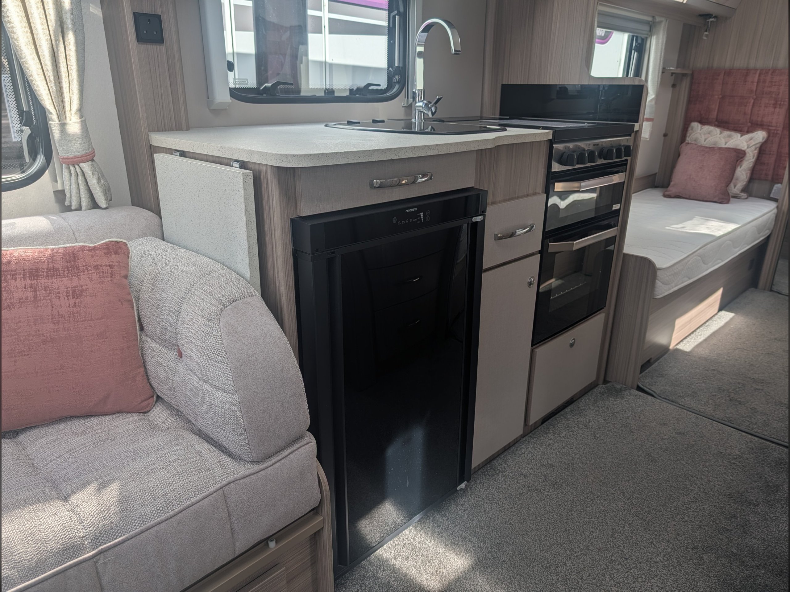 Comes with a fitted solar panel, Evo manual motor mover and bespoke Sussex graphics and soft furnishings.