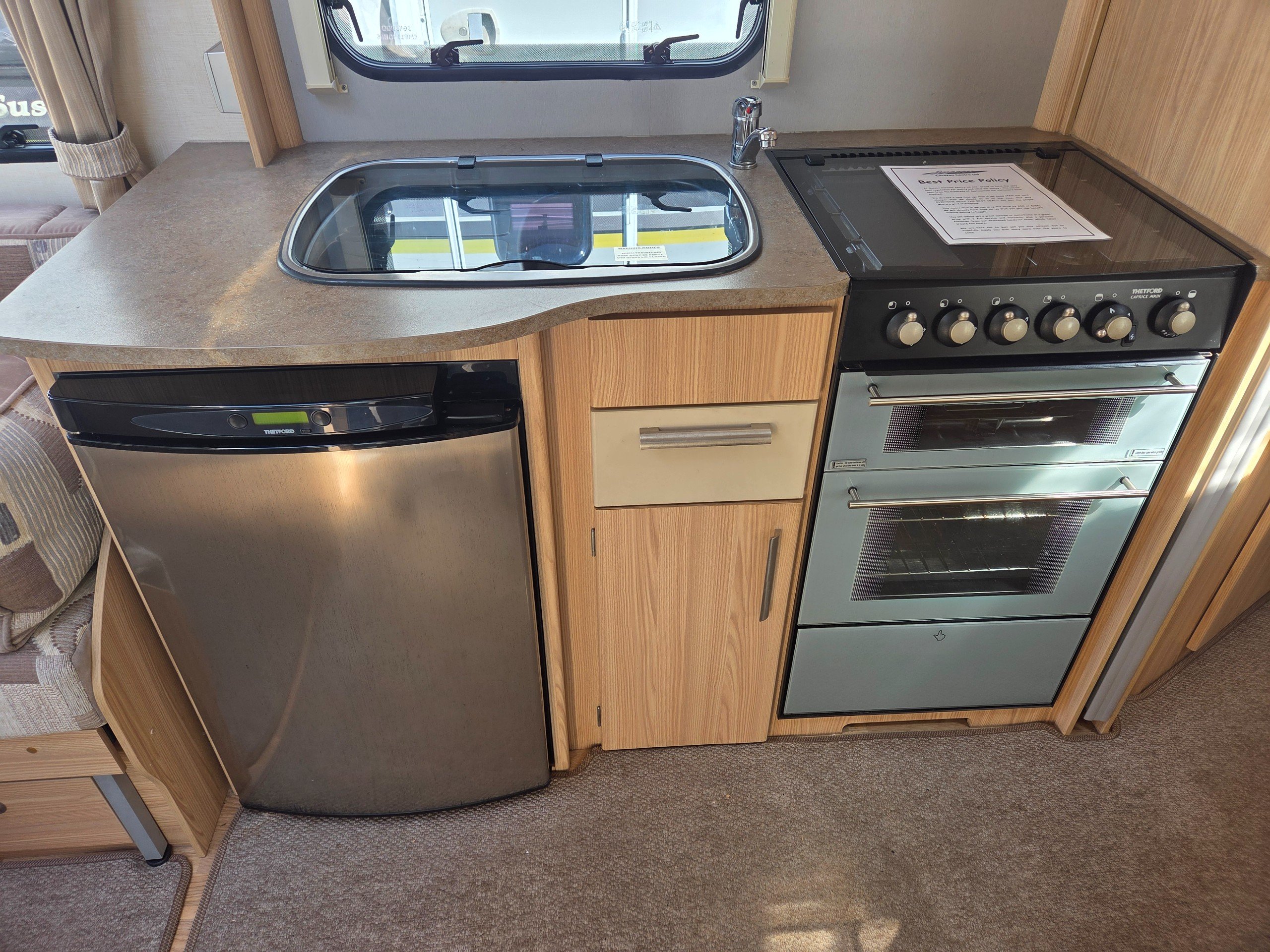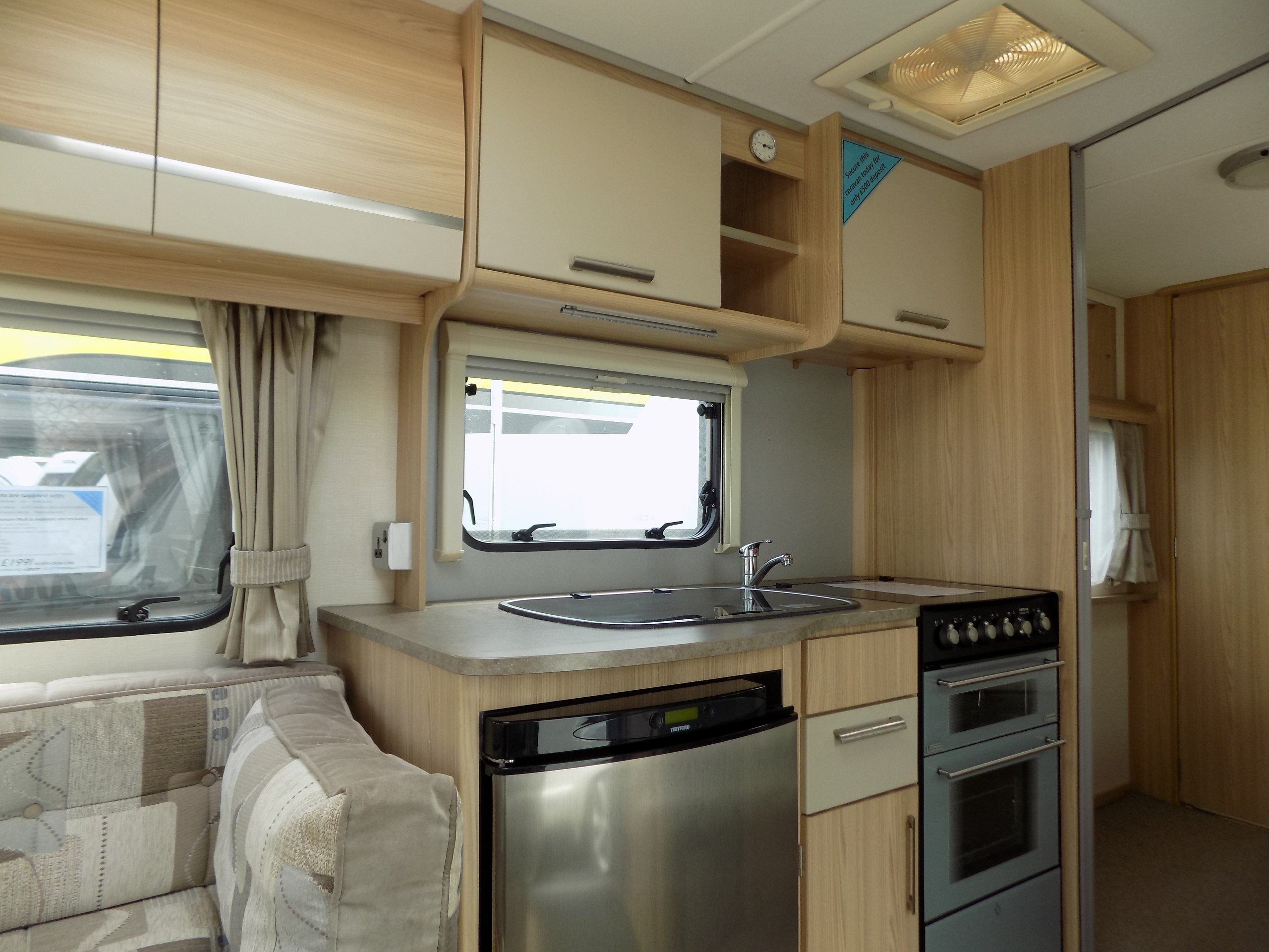 This lovely 2011 Coachman Amara is the perfect caravan for a family or couple looking to hit the great outdoors at a very affordable price. With a 4 berth capacity, there's plenty of room for everyone to sleep comfortably. The interior is well-designed and offers all the amenities you need for an enjoyable trip, including a fully equipped kitchen with a full oven good sized fridge and a microwave. The lounge area has plenty of space to relax during the day and converts into a second double bed when needed.