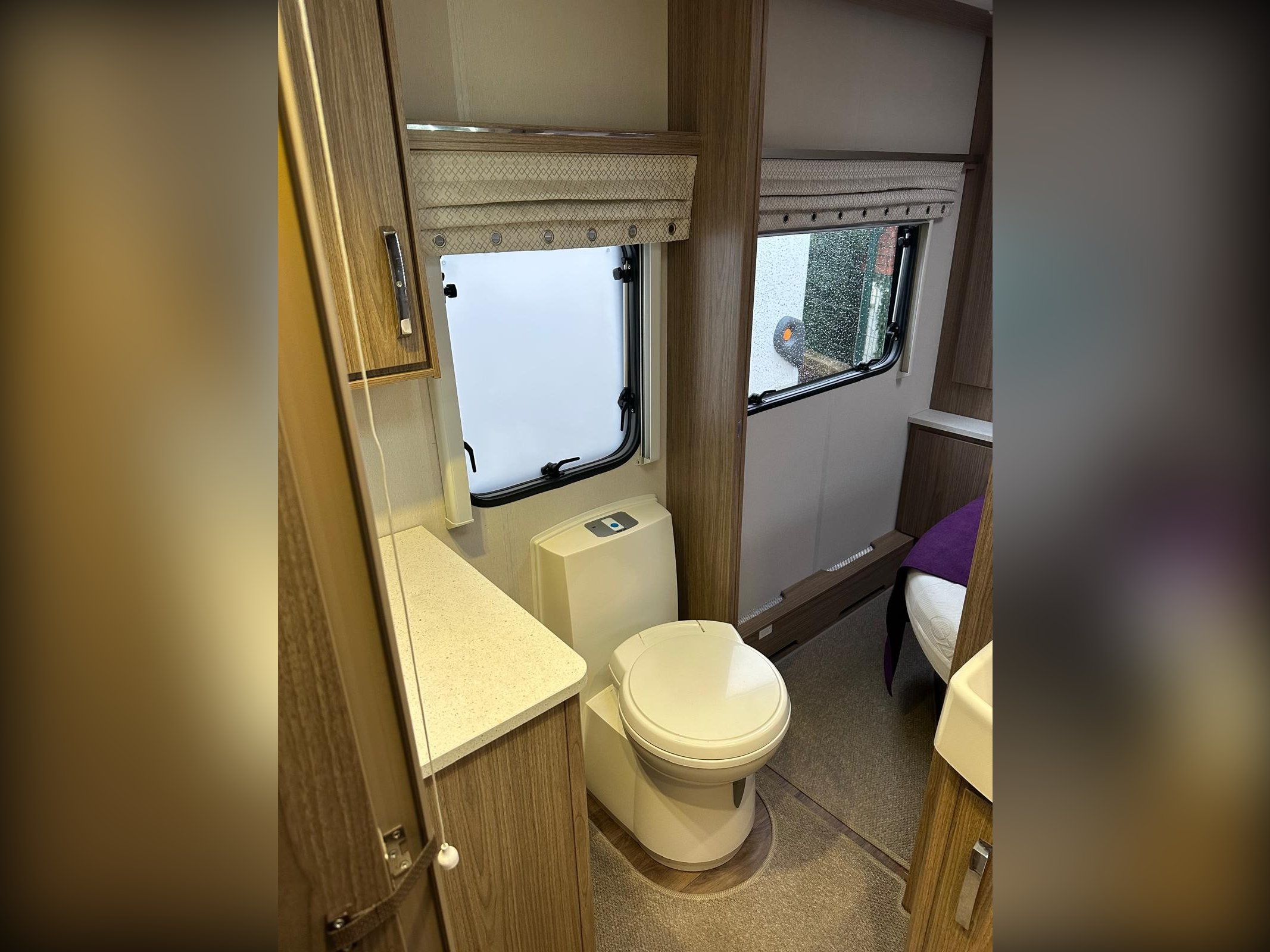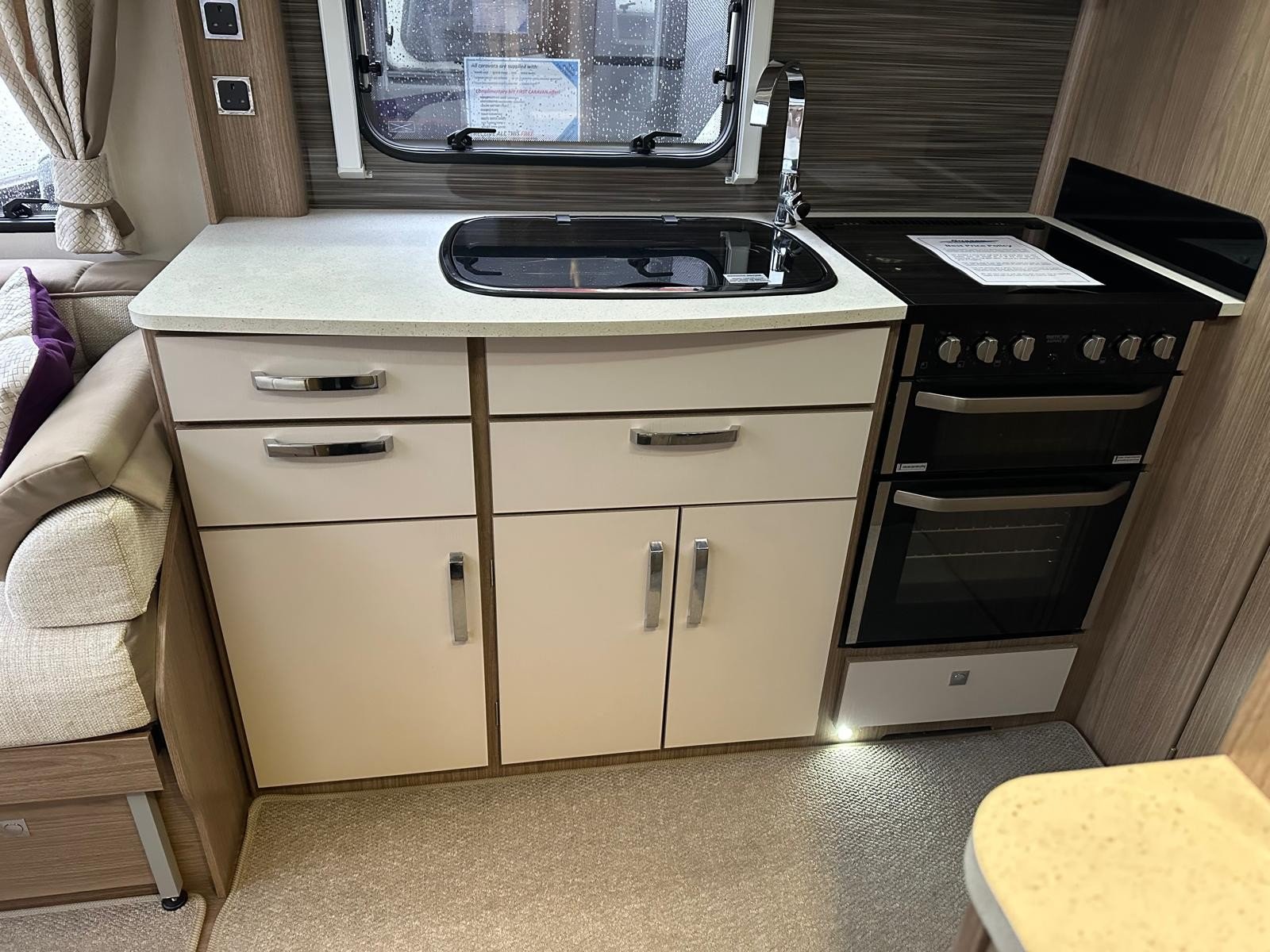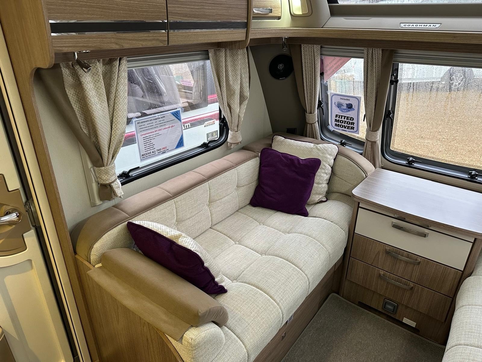 4 berth, rear island bed, mid washroom layout. Load margin: 159kg. This fantastic Coachman caravan is based on the top spec Laser range and comes with bespoke 'Sussex' fabrics and graphics.