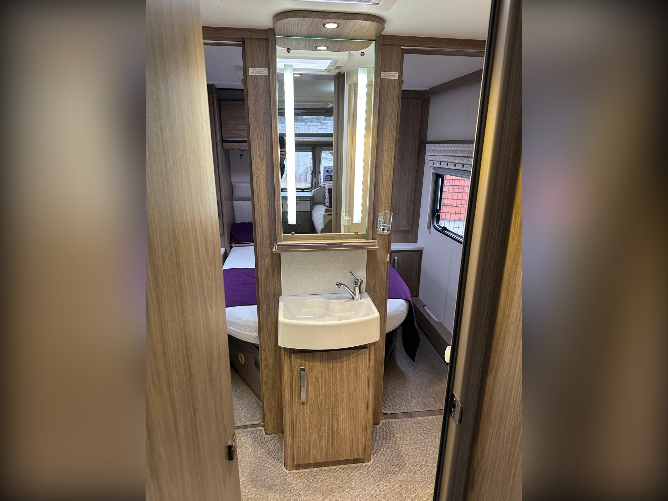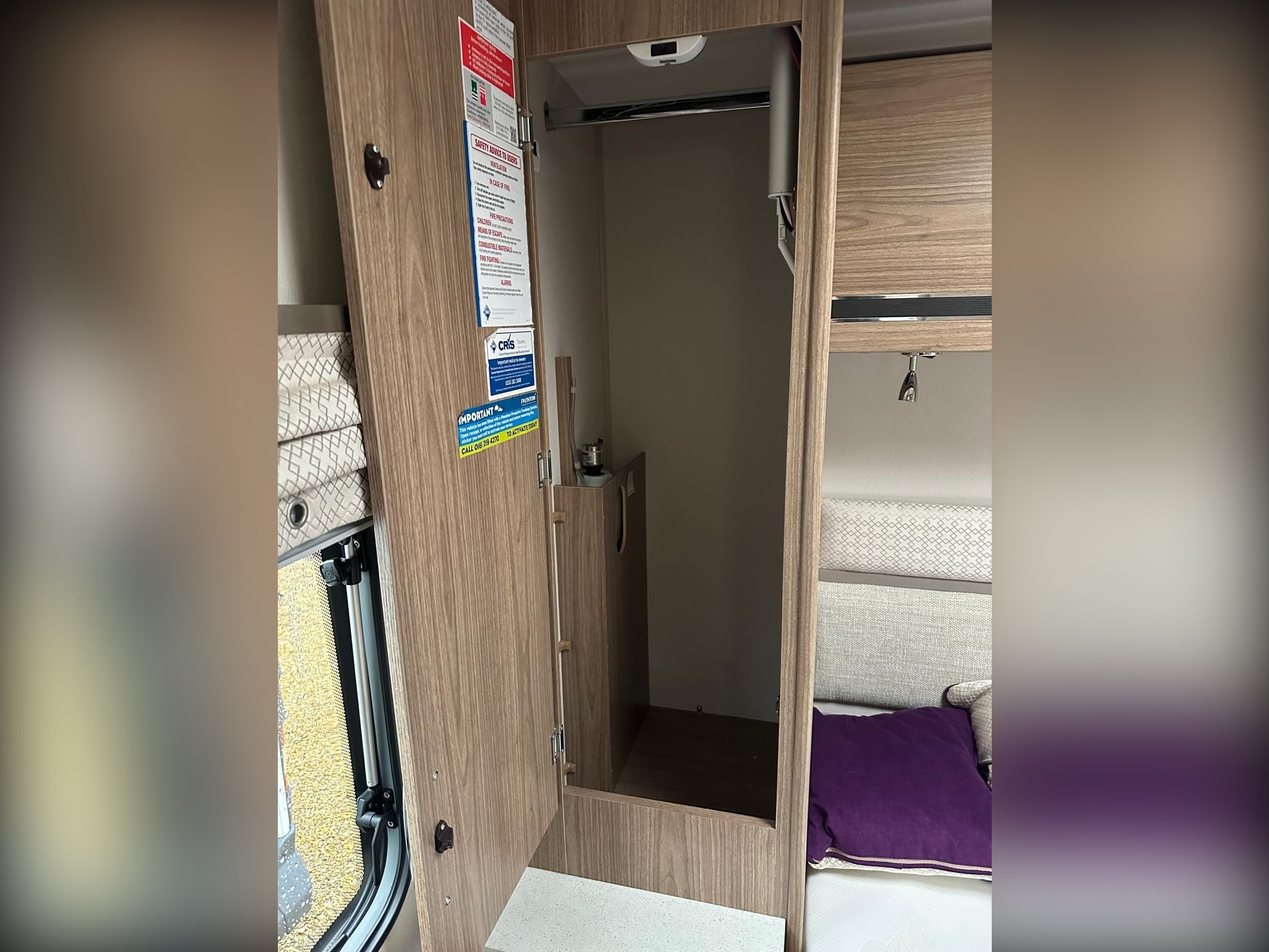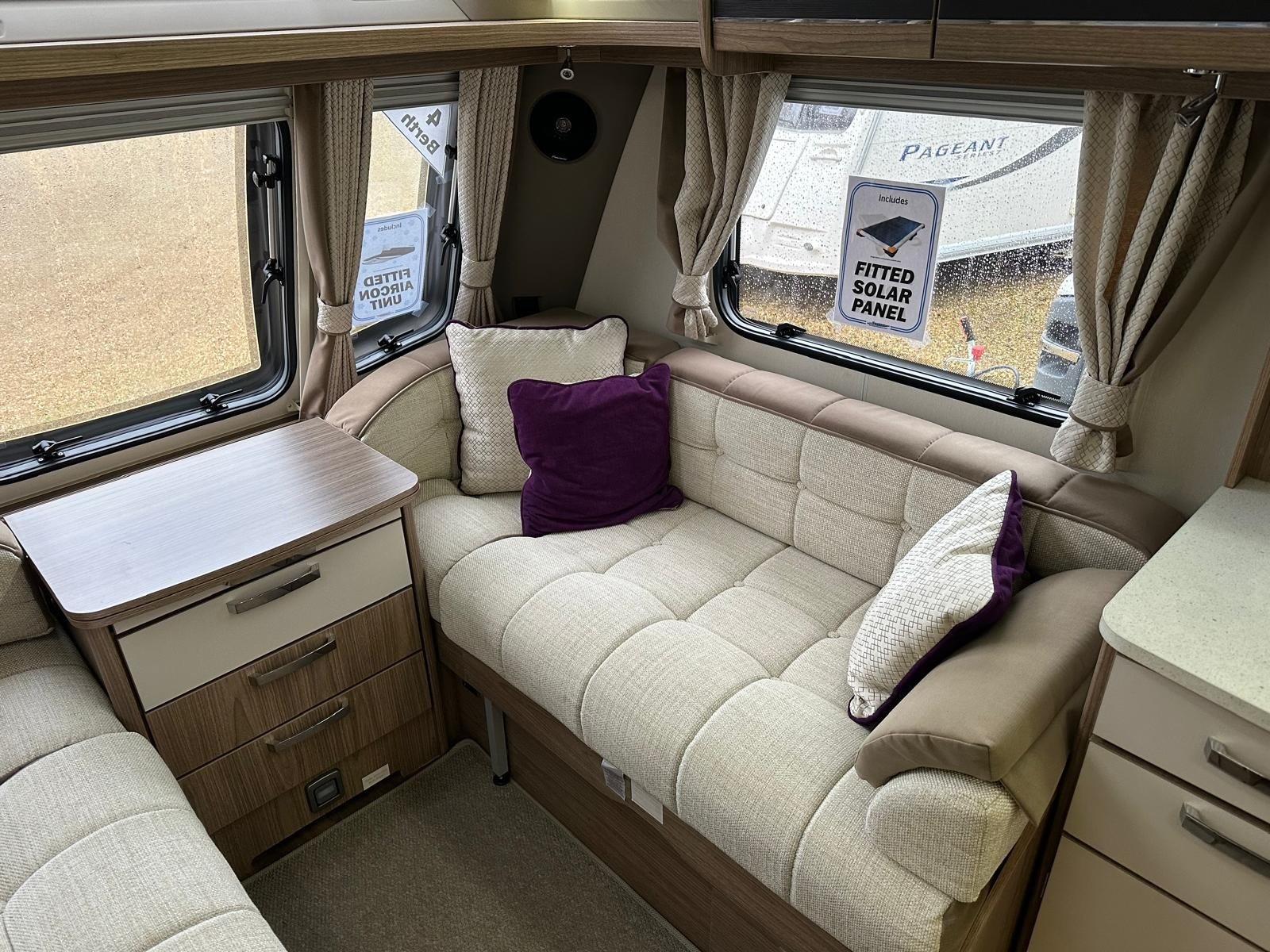 4 berth, rear island bed, mid washroom layout. Load margin: 159kg. This fantastic Coachman caravan is based on the top spec Laser range and comes with bespoke 'Sussex' fabrics and graphics.