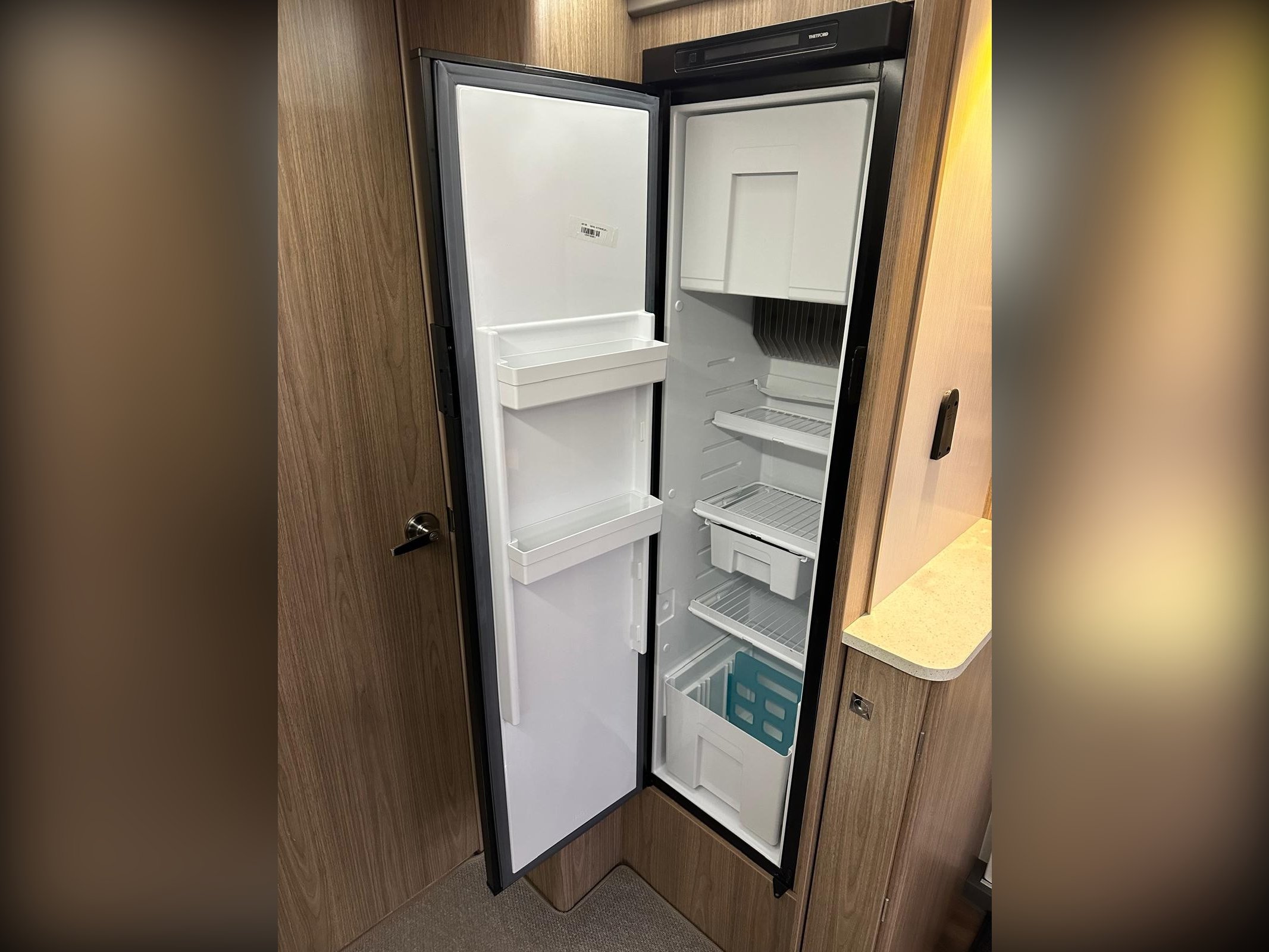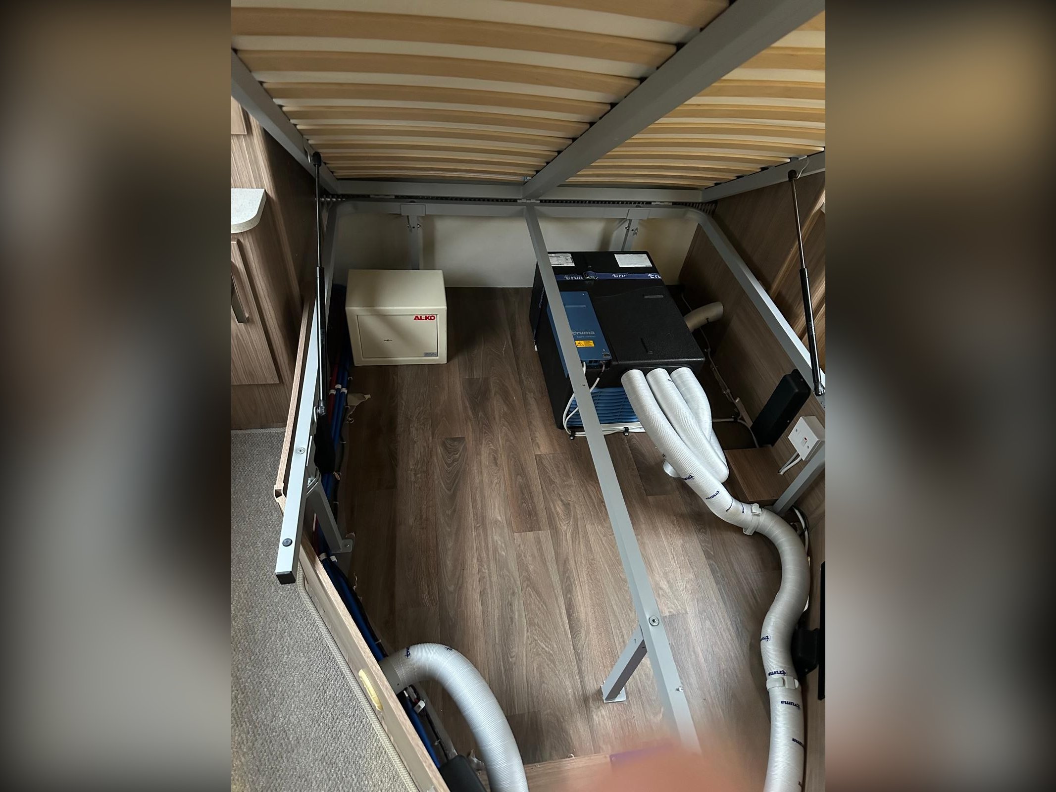 This particular model also comes with the added benefit of a Powrtouch 2wd motor mover and a Truma Saphir 1800watt underbunk air-conditioning.