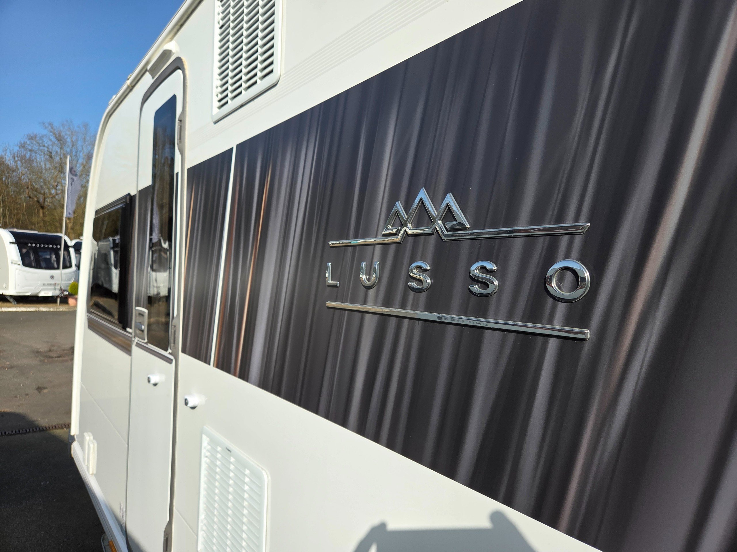 The Lusso is 8ft wide as standard and boasts Alko ATC, E&P Hydraulic levelling system, Wifi a 100w solar panel, Habitational air conditioning, Dometic 133l fridge, Alde heating, Alde flow continuous hot water and wireless phone charging.