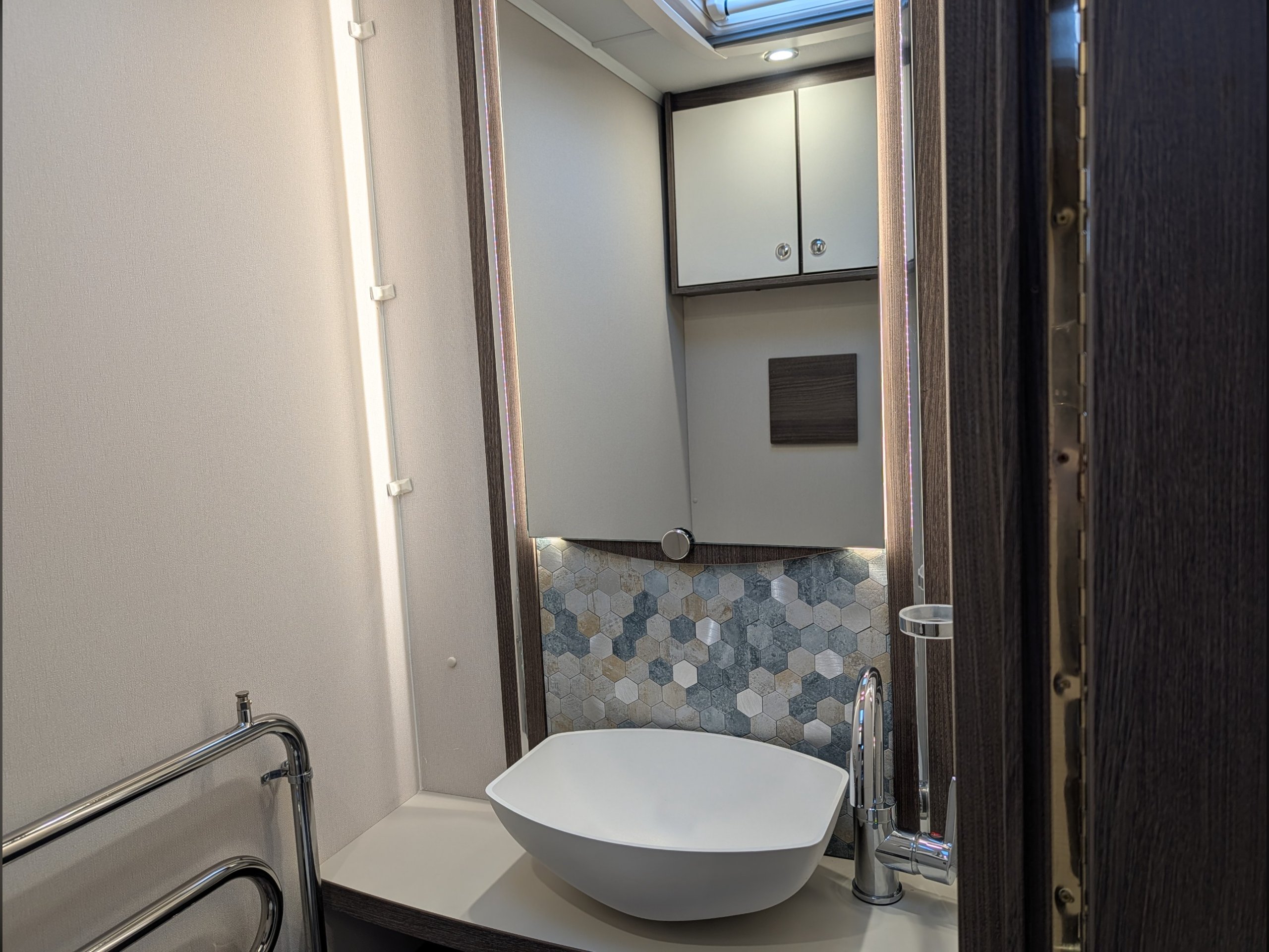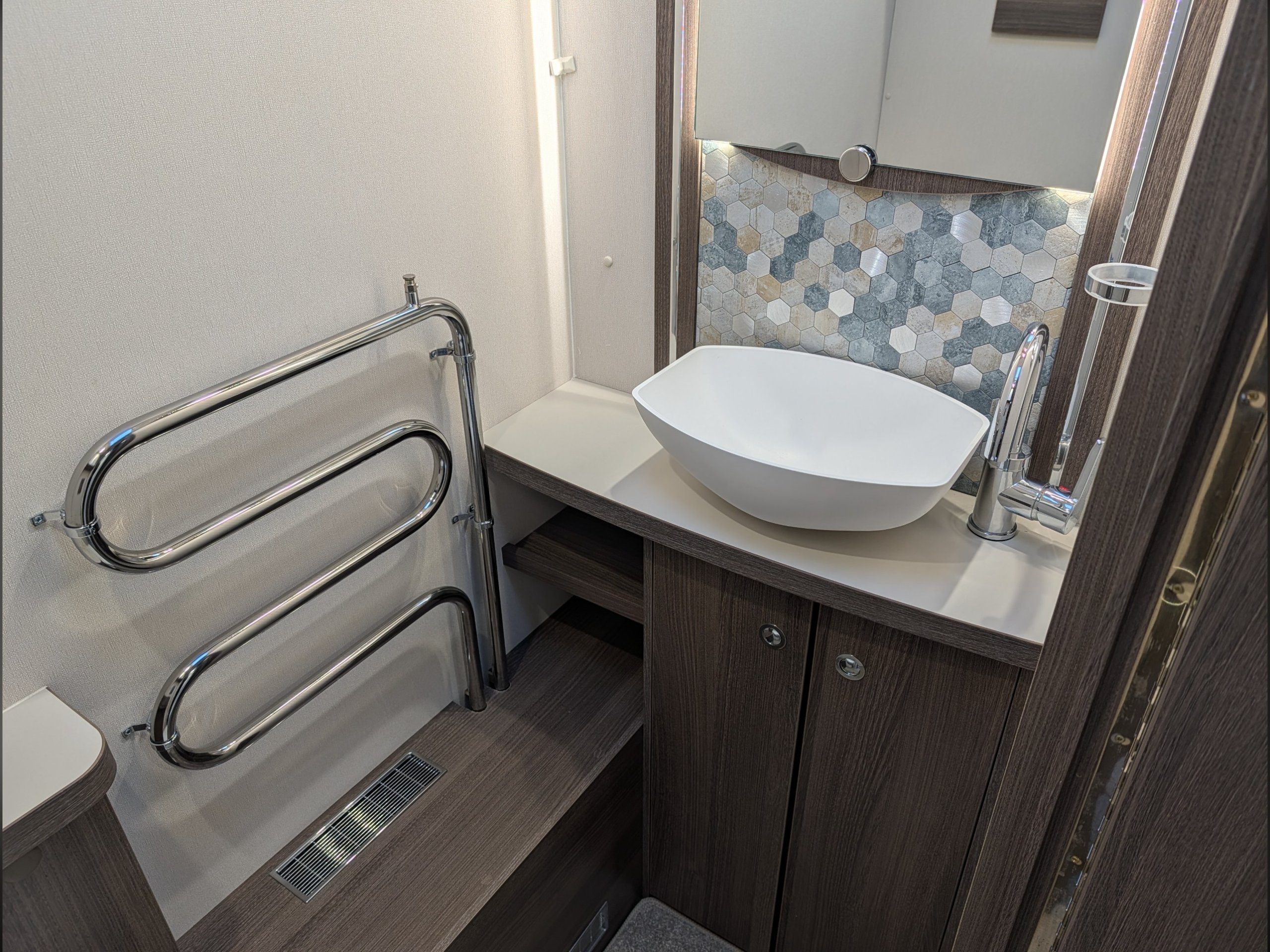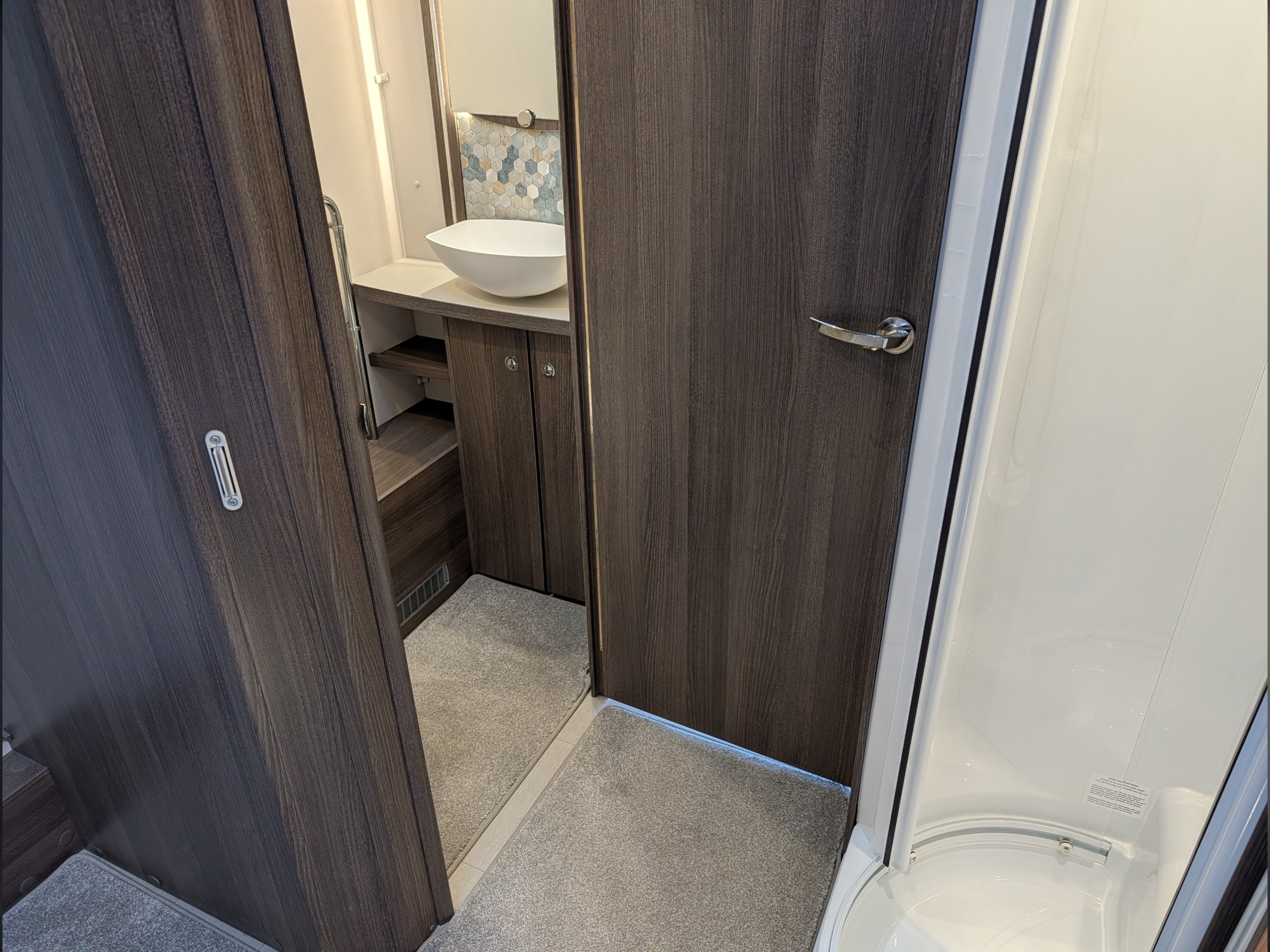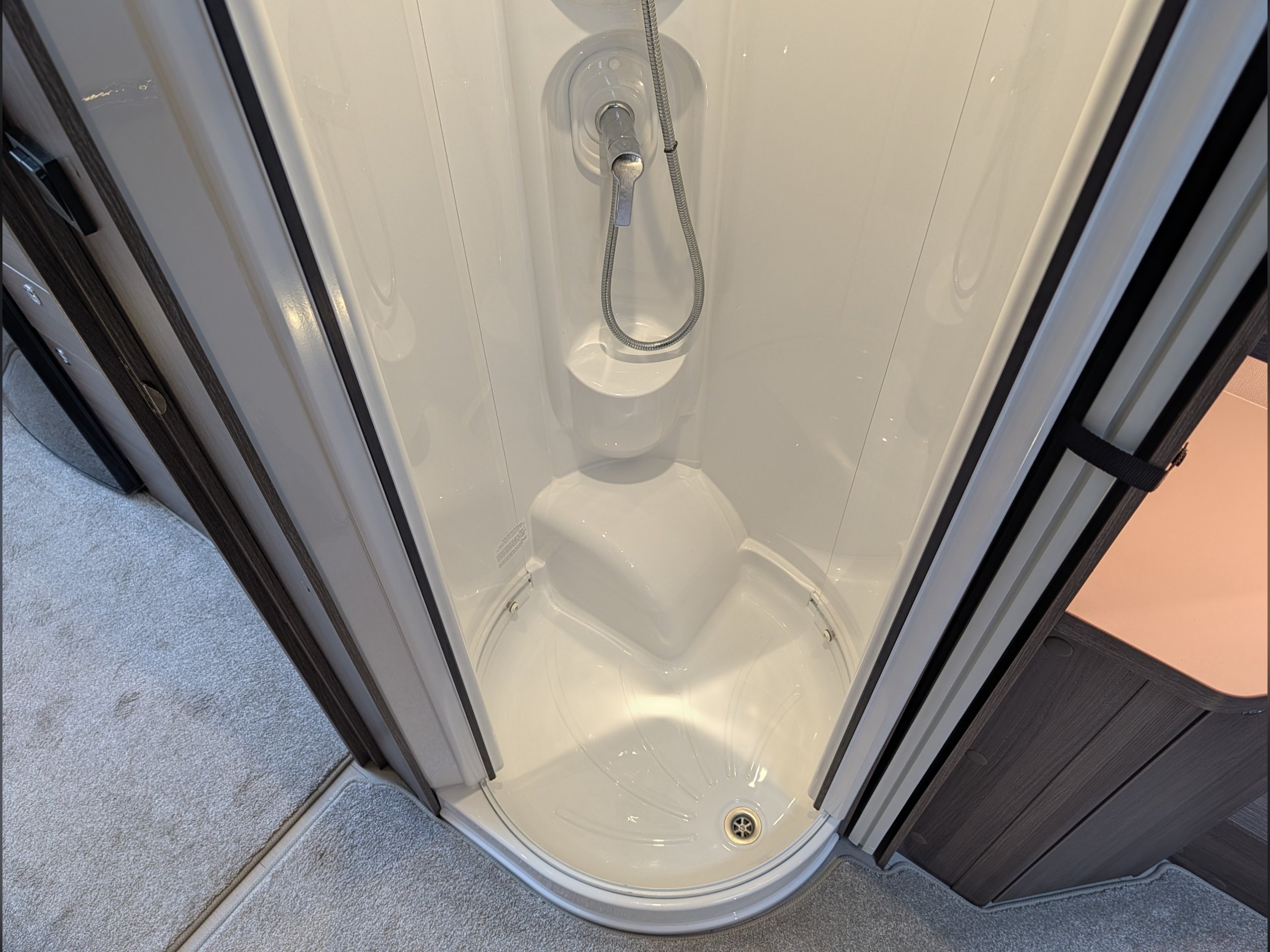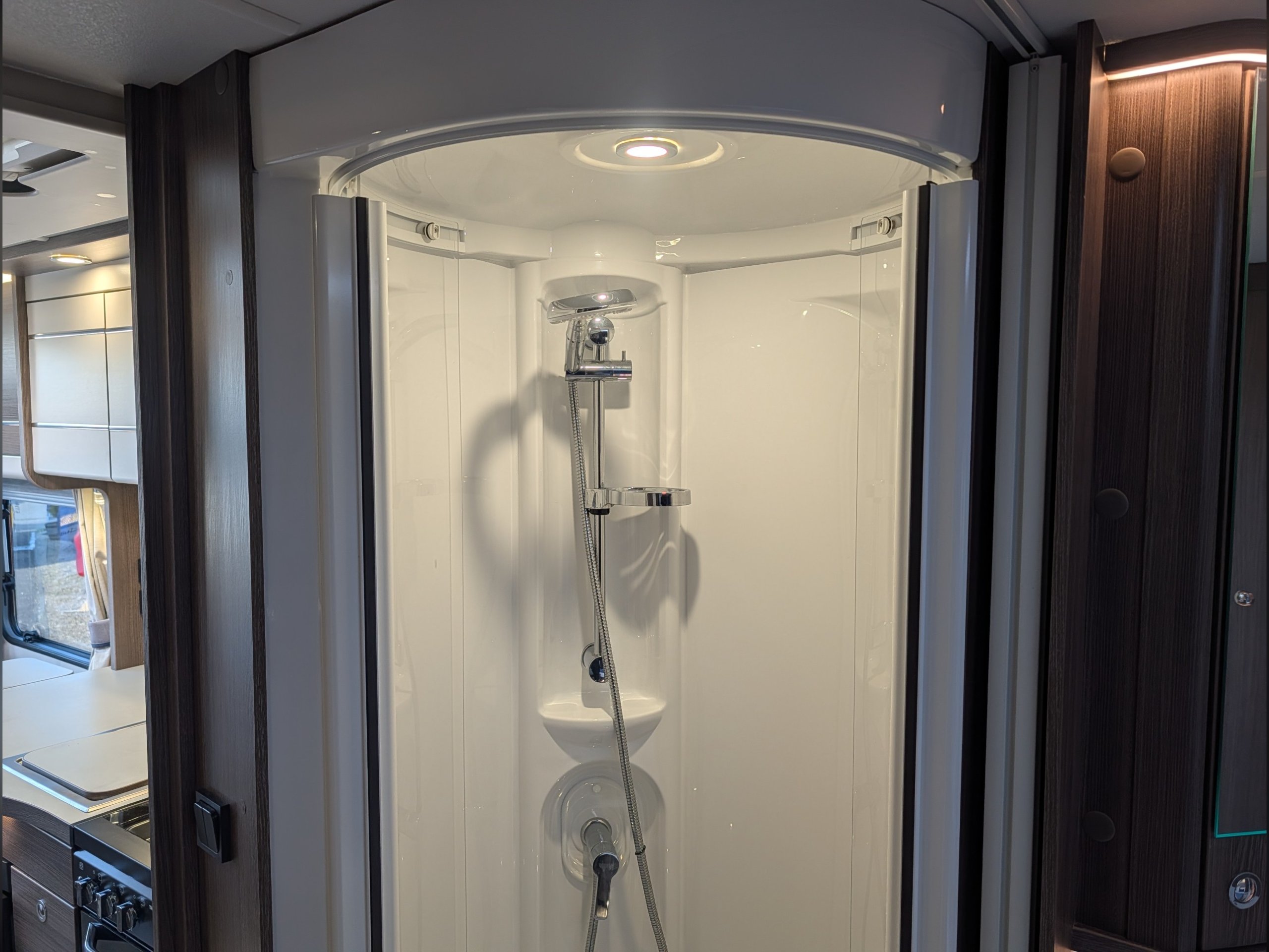 A beautiful 4 berth tourer which features a rear fixed island bed, a separate washroom and shower cubicle, which can be sectioned off for privacy, making it a great option for couples or families.