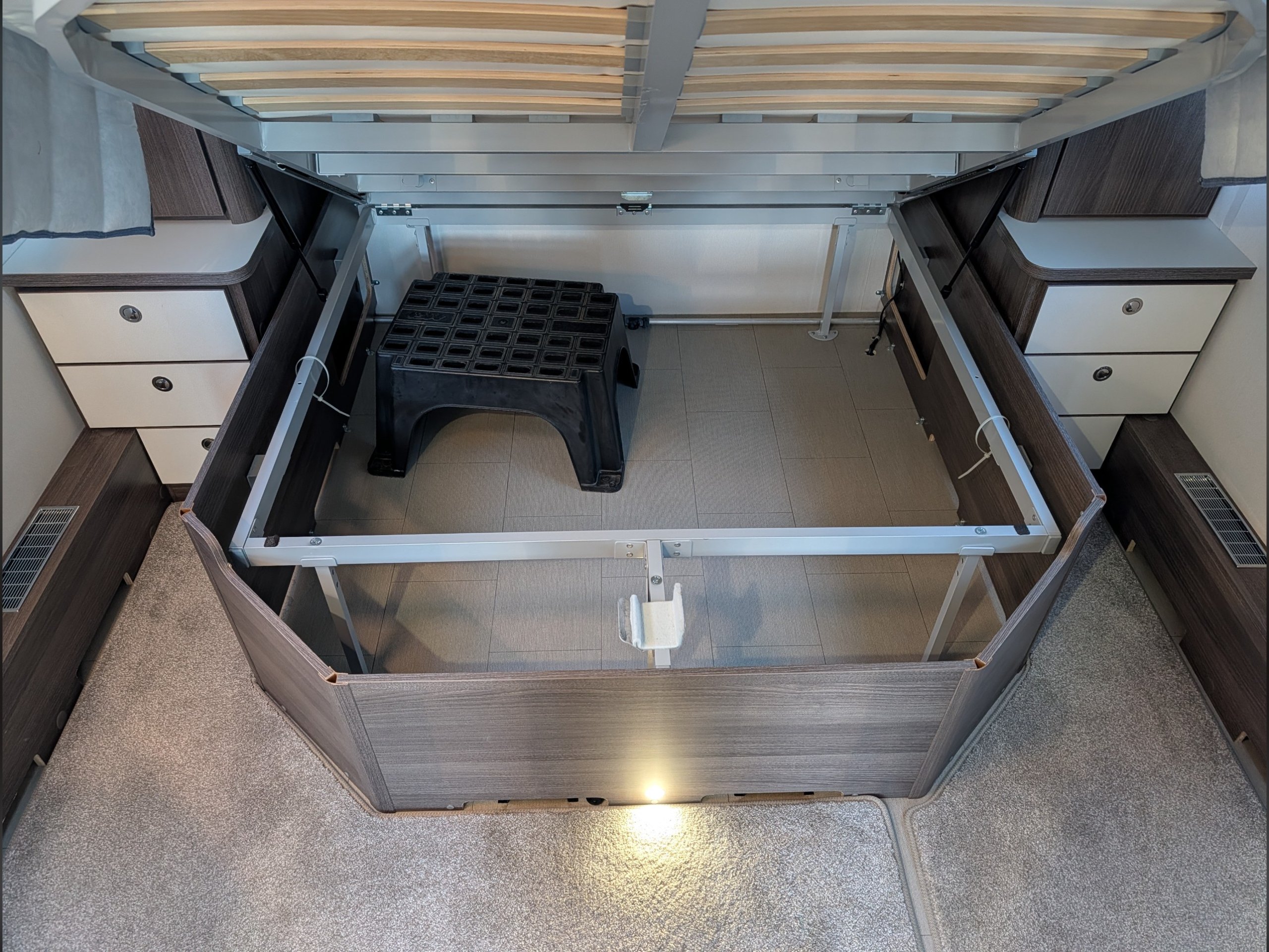 The front lounge area converts into a further double bed.