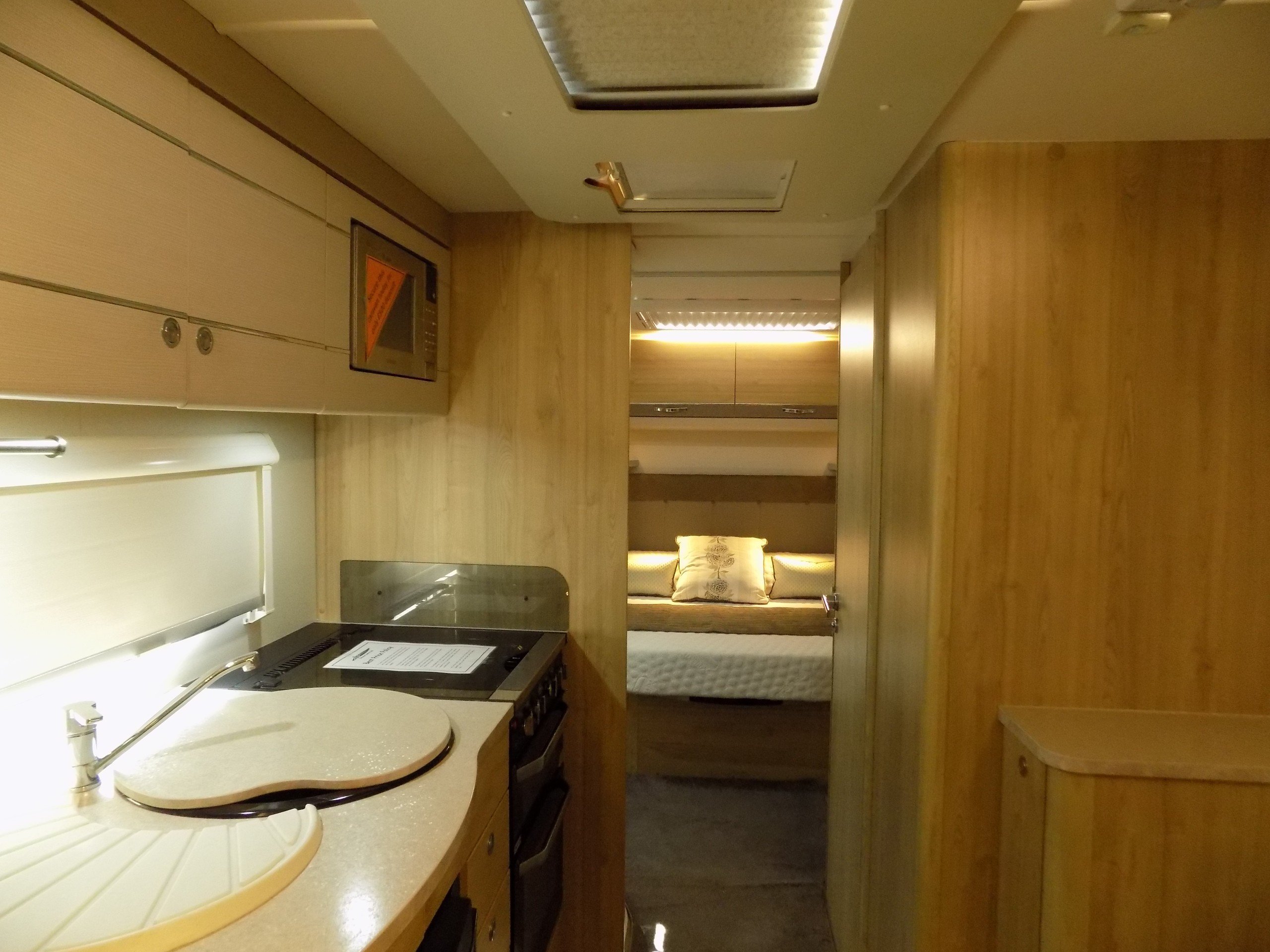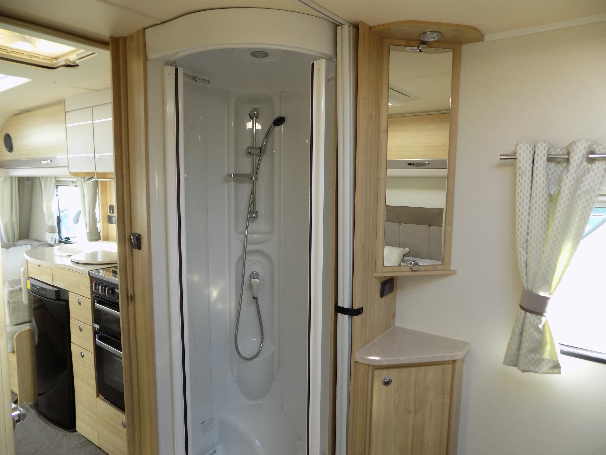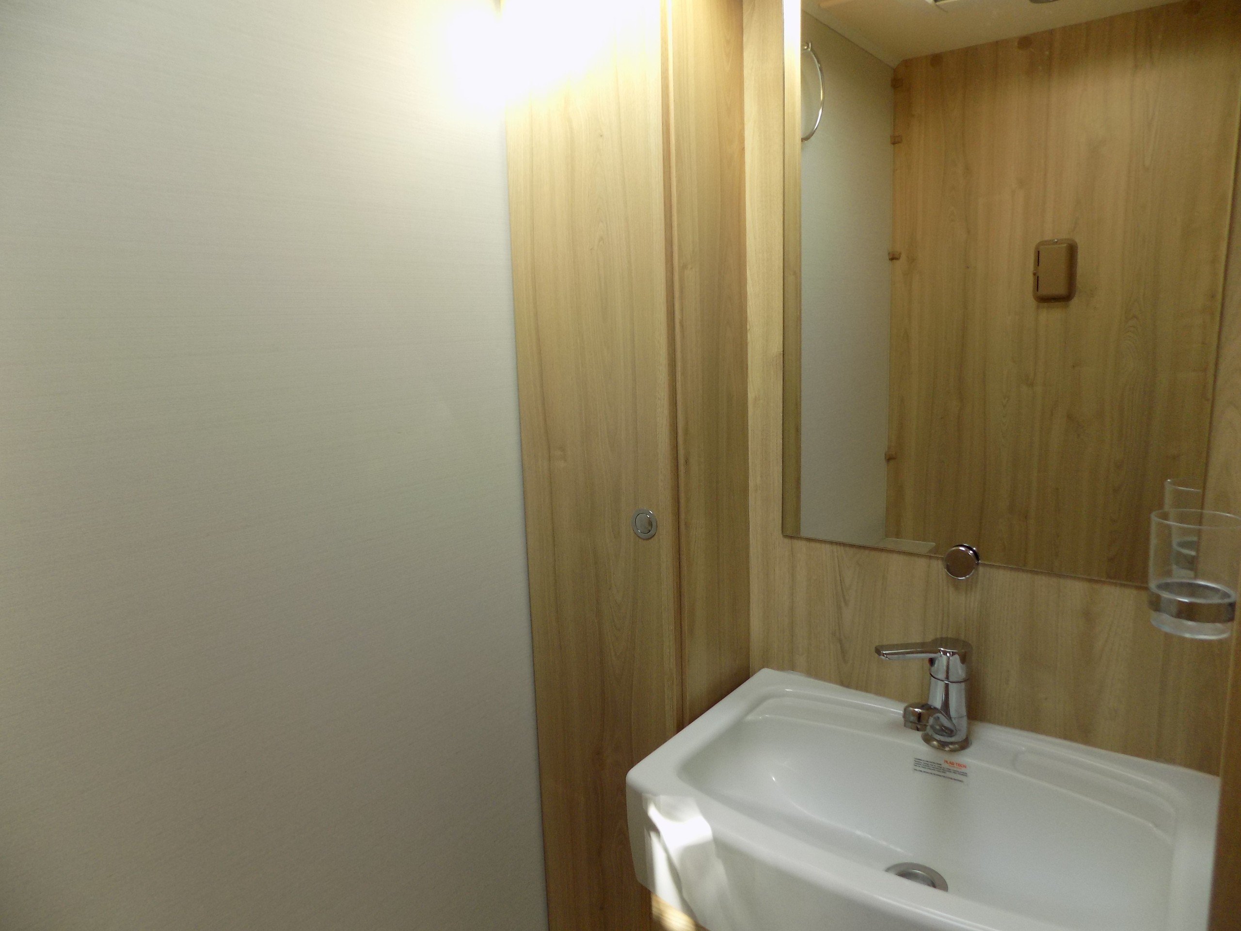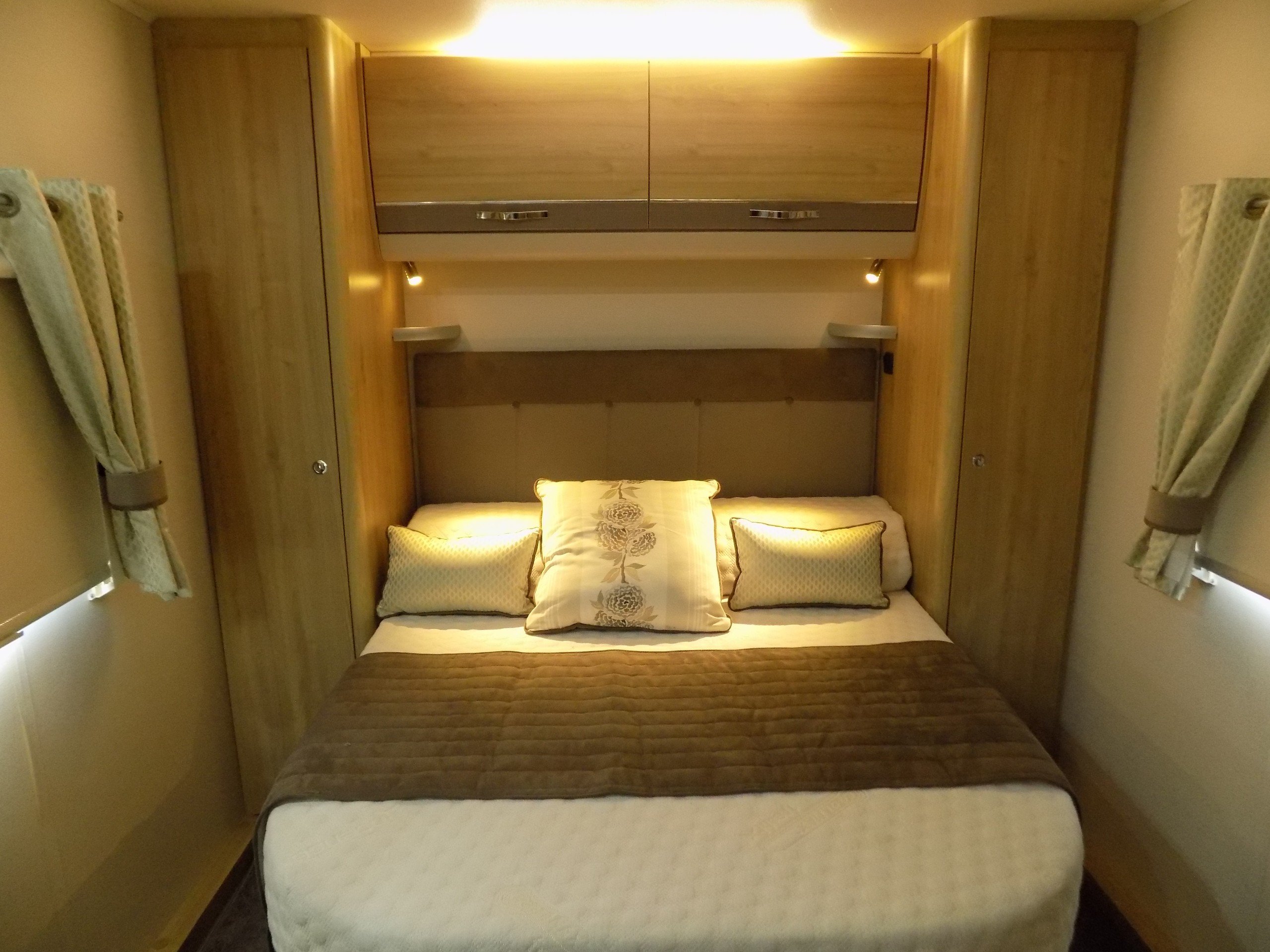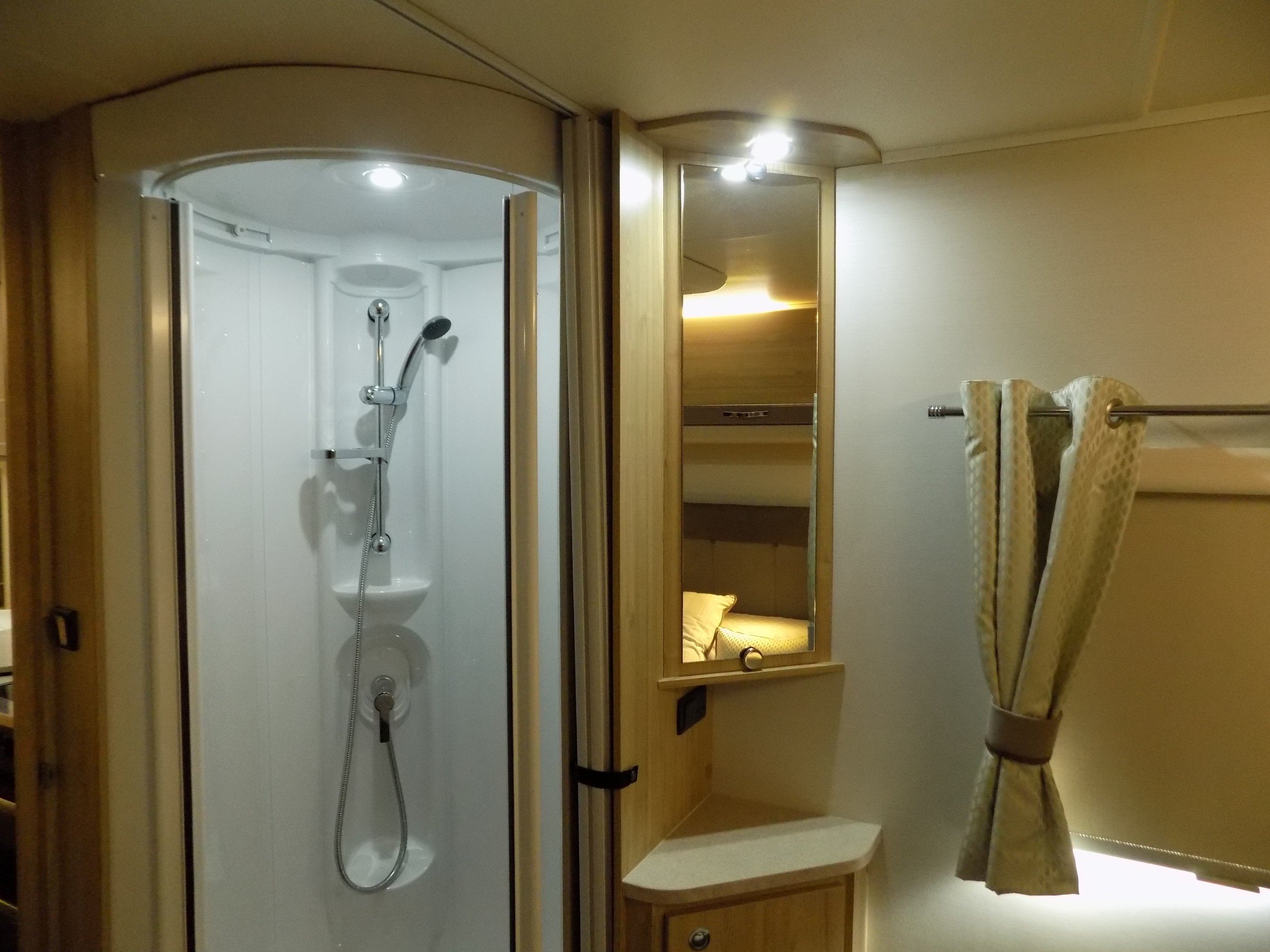 The mid-washroom provides a division for the sleeping quarters whilst a 90 degree door can be closed to create a private W/C during the day, leaving the corridor between the lounge and bedroom open for a more spacious feel.
