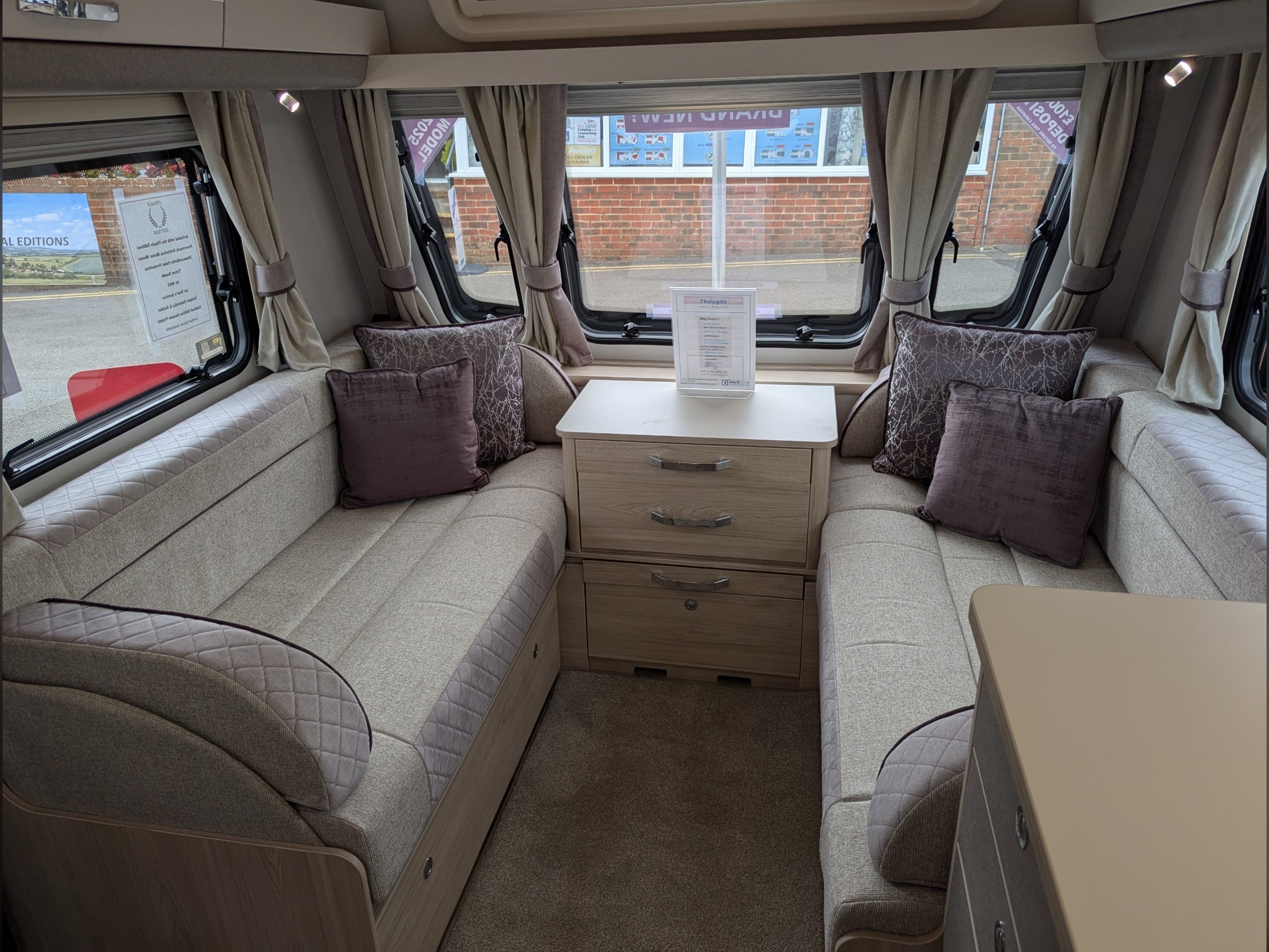 The Midhurst Premier is an exclusive Sussex Special Edition caravan, designed by us and based on the Elddis Avante 554. Comes with a all-new facelift for 2025 taken from the Buccaneer and Crusader ranges.