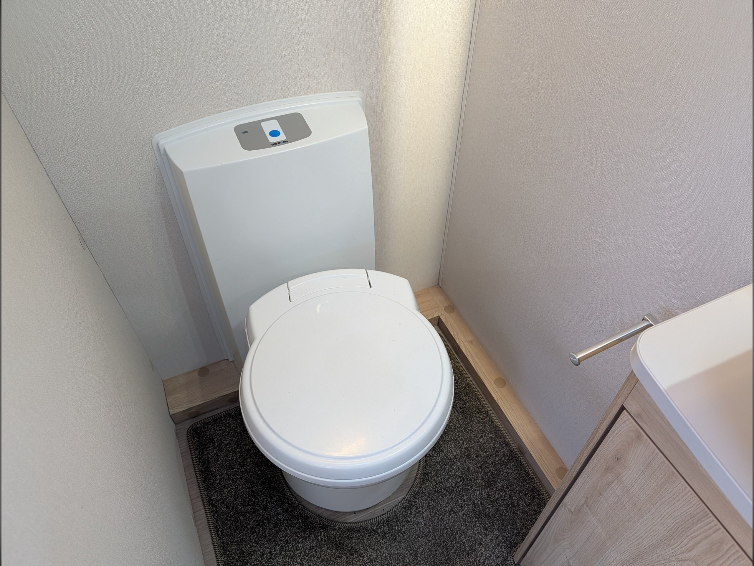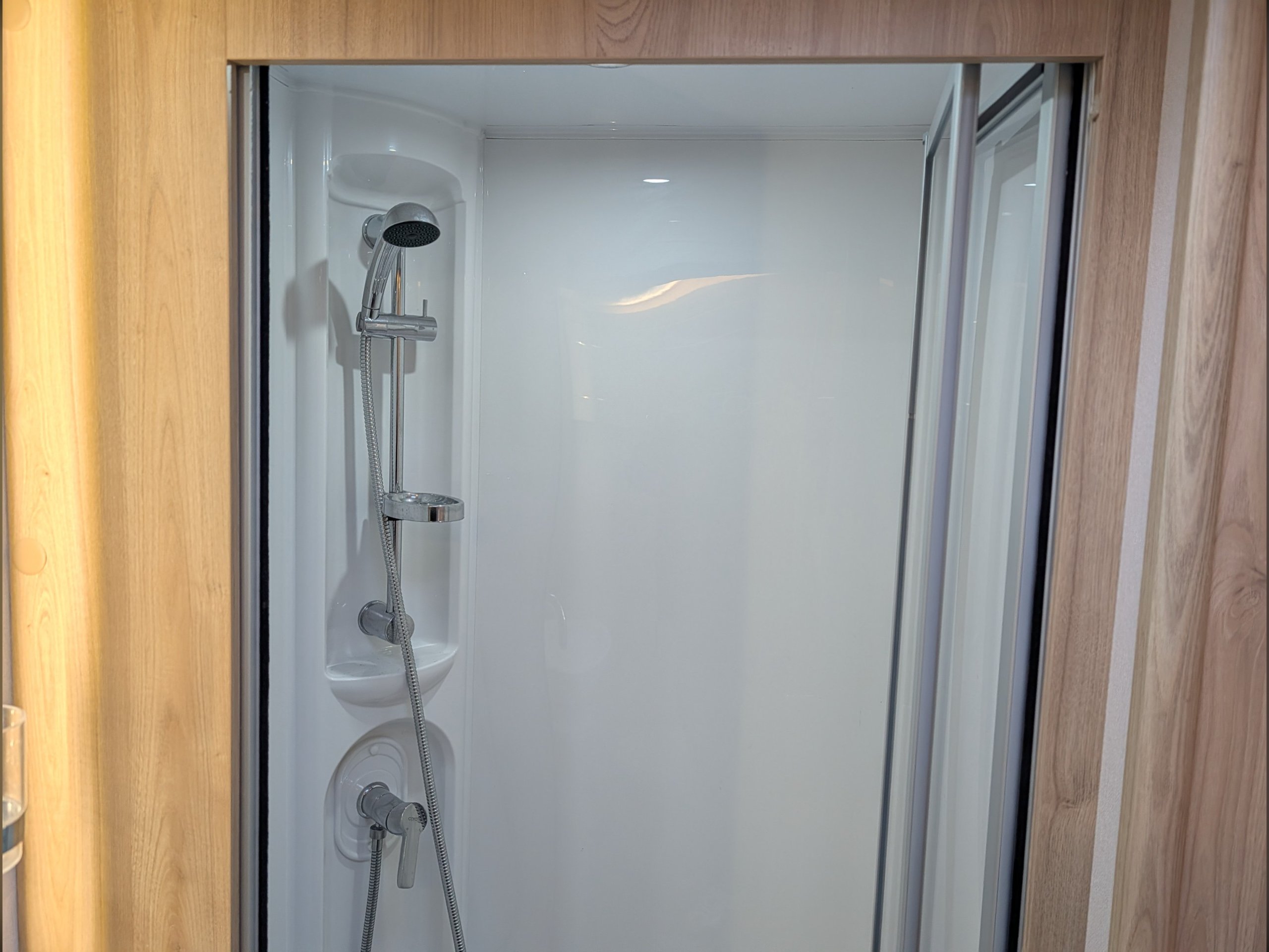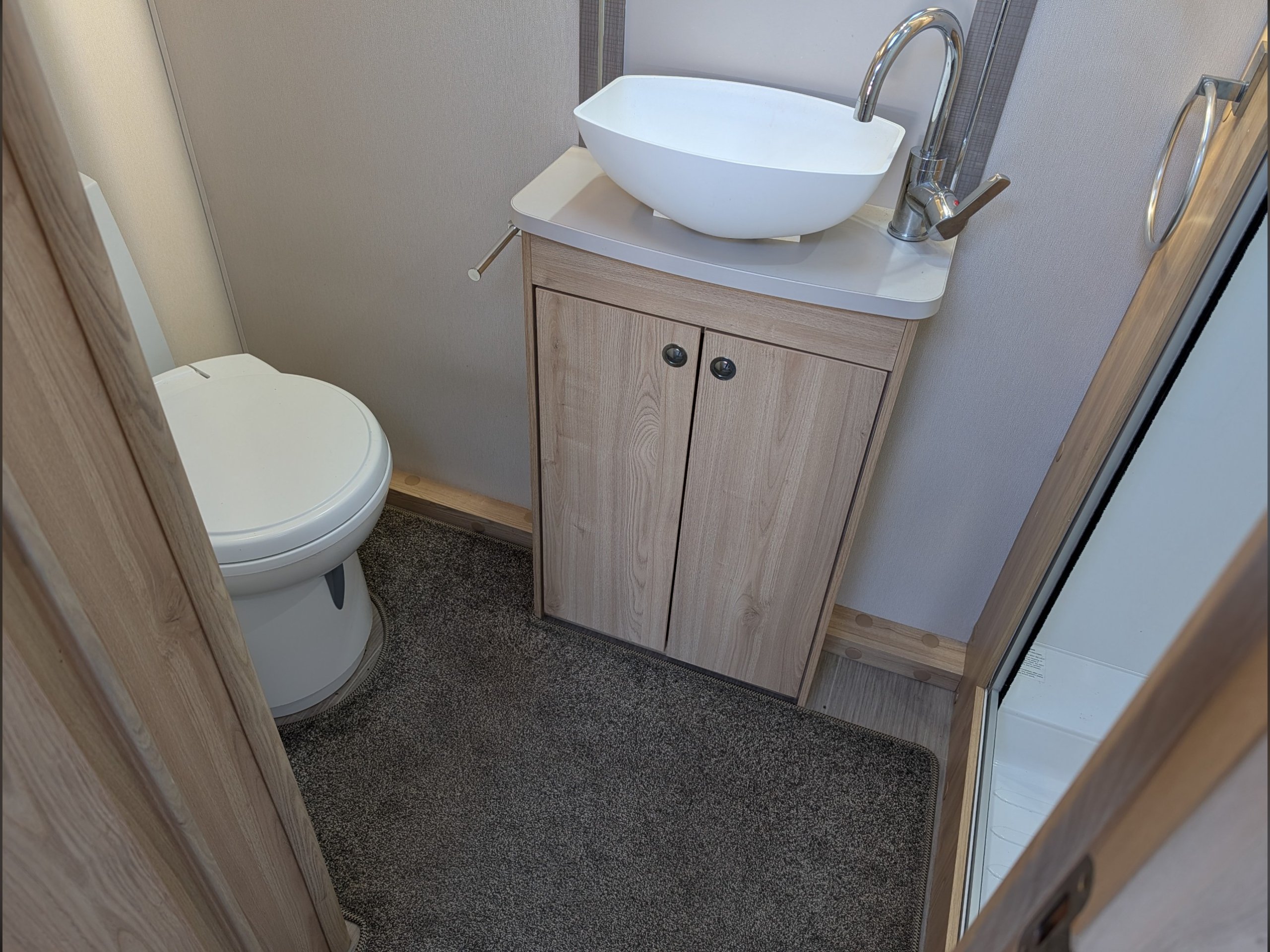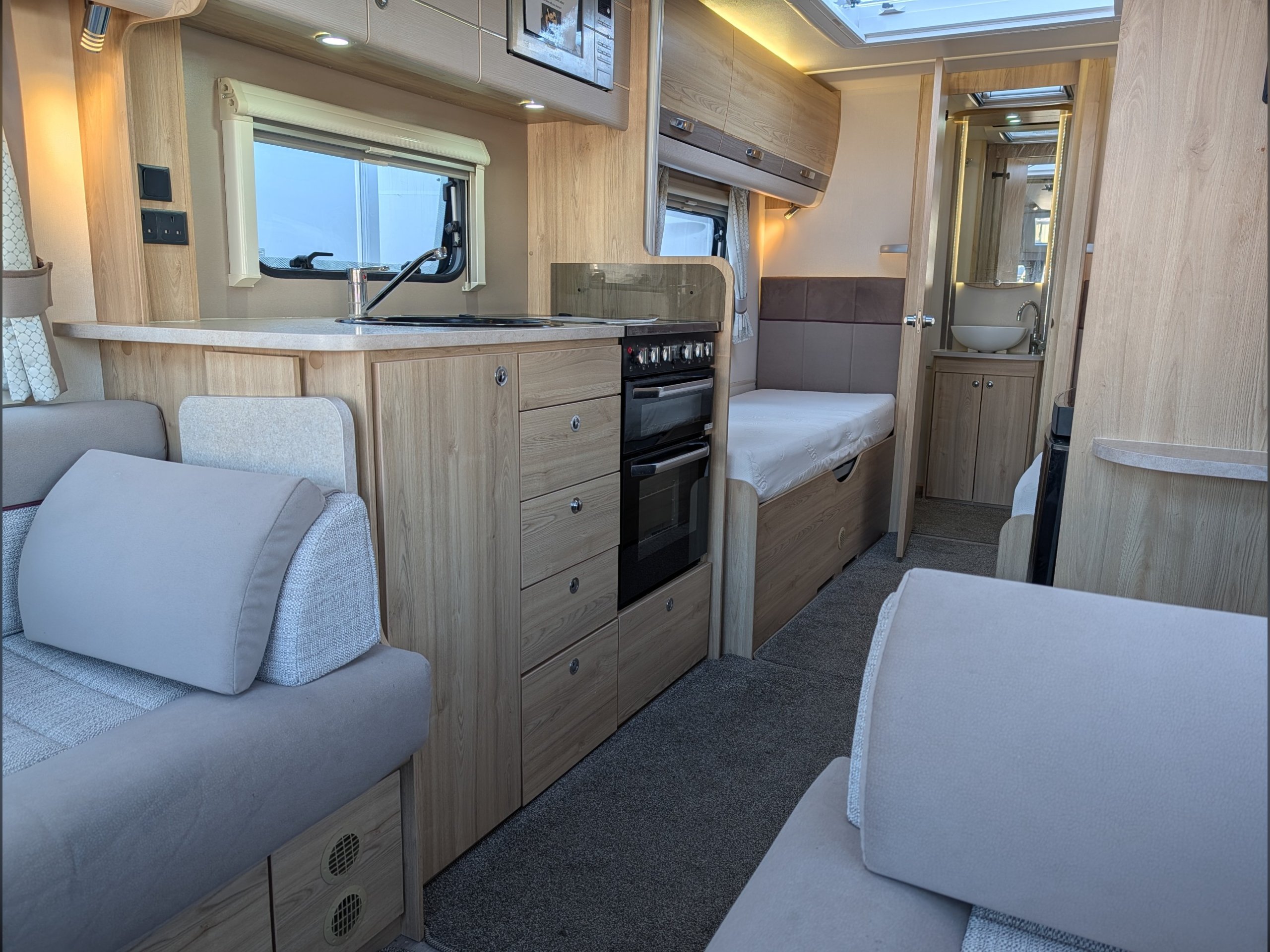 Access to the washroom is easy for everyone, and a concertina room divider can be used to separate the front and rear of the caravan in its sleeping configuration.