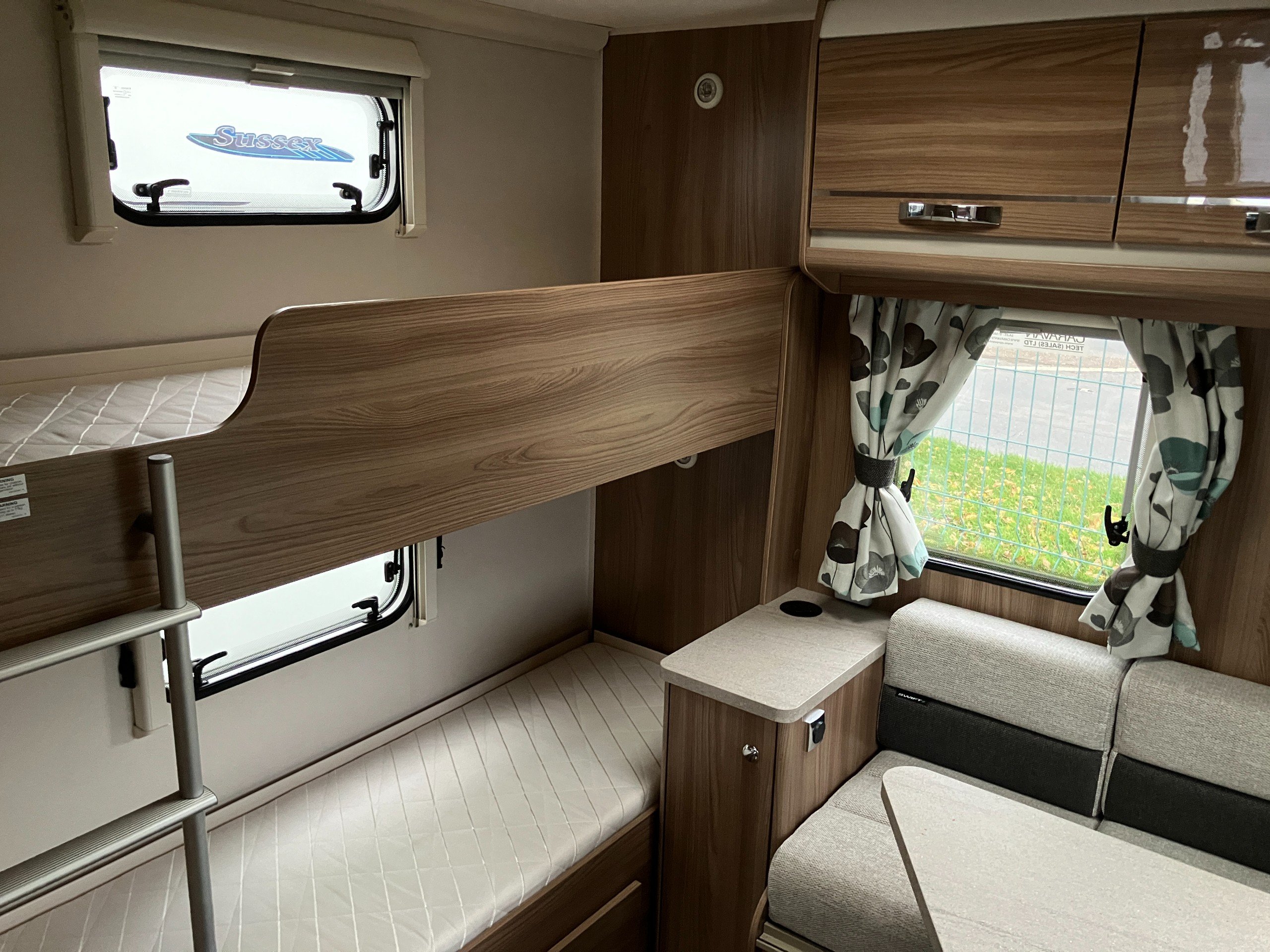 Popular family layout with the luxury of ALDE wet central heating. Holiday in style without compromise in the Challenger 590, complete with fixed bunk beds and side dinette which can convert into two additional bunks perfect for additional family members or friends looking to join the adventure. The family can holiday in confidence that the Challenger 590 has you covered for all season touring, with a deceptively spacious washroom and fully equipped kitchen, complimented by Swift's unique SMART construction timber-less highly resilient to moisture body frame and comprehensively tested sandwich flooring and GRP outer skin provides greater durability from the elements.