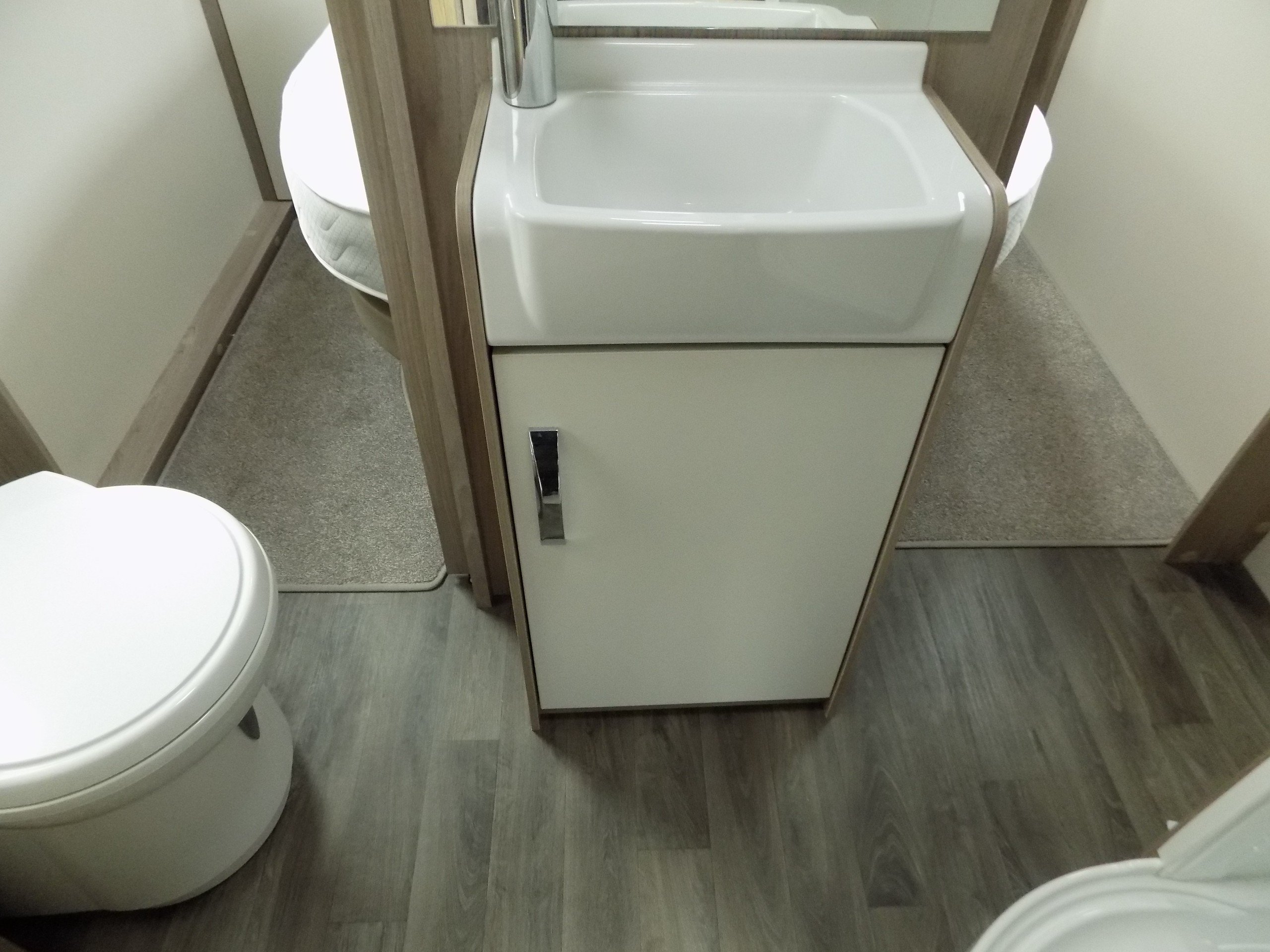 4 berth, end island bed, mid washroom layout. Load margin 156kg.
