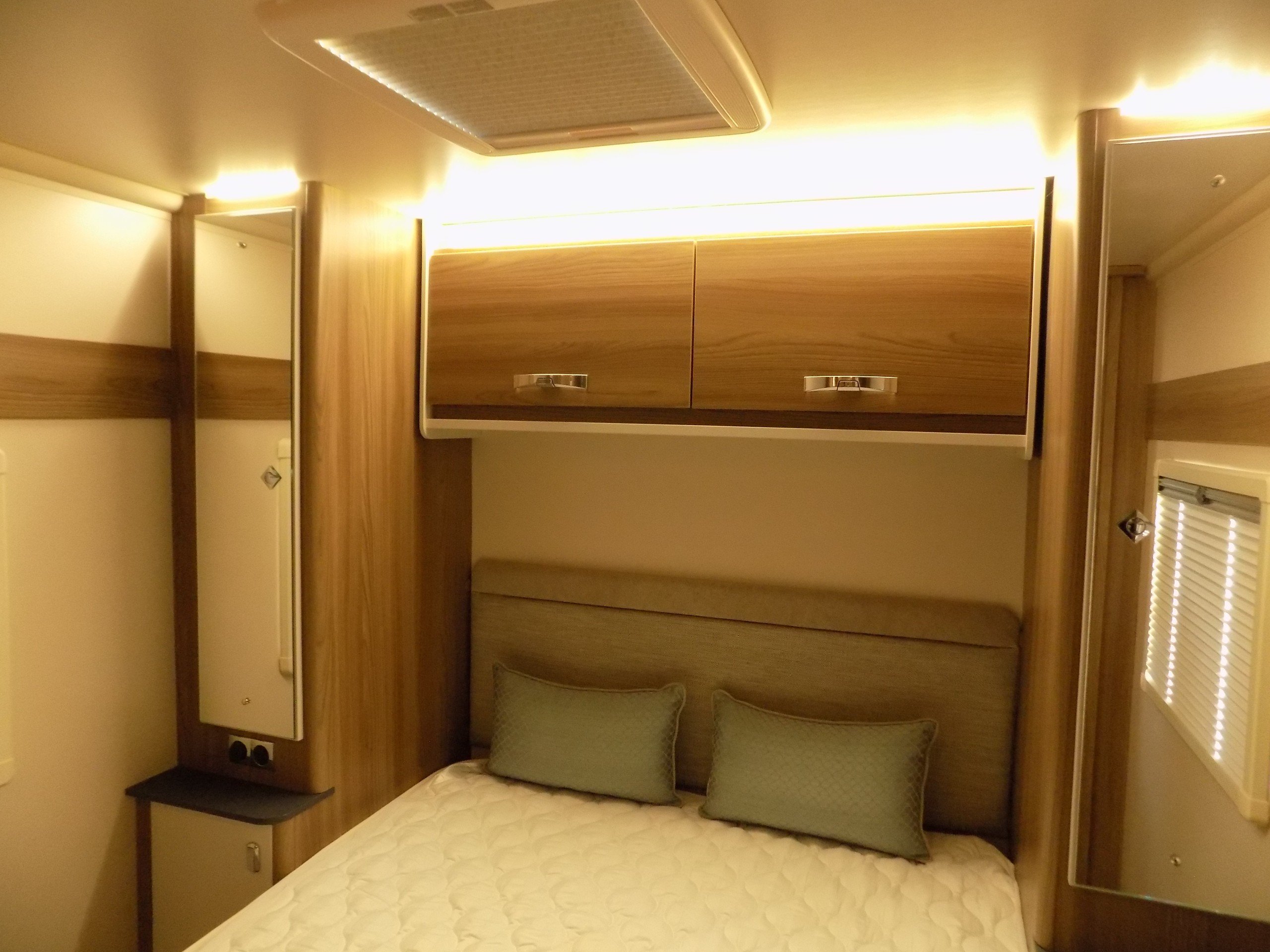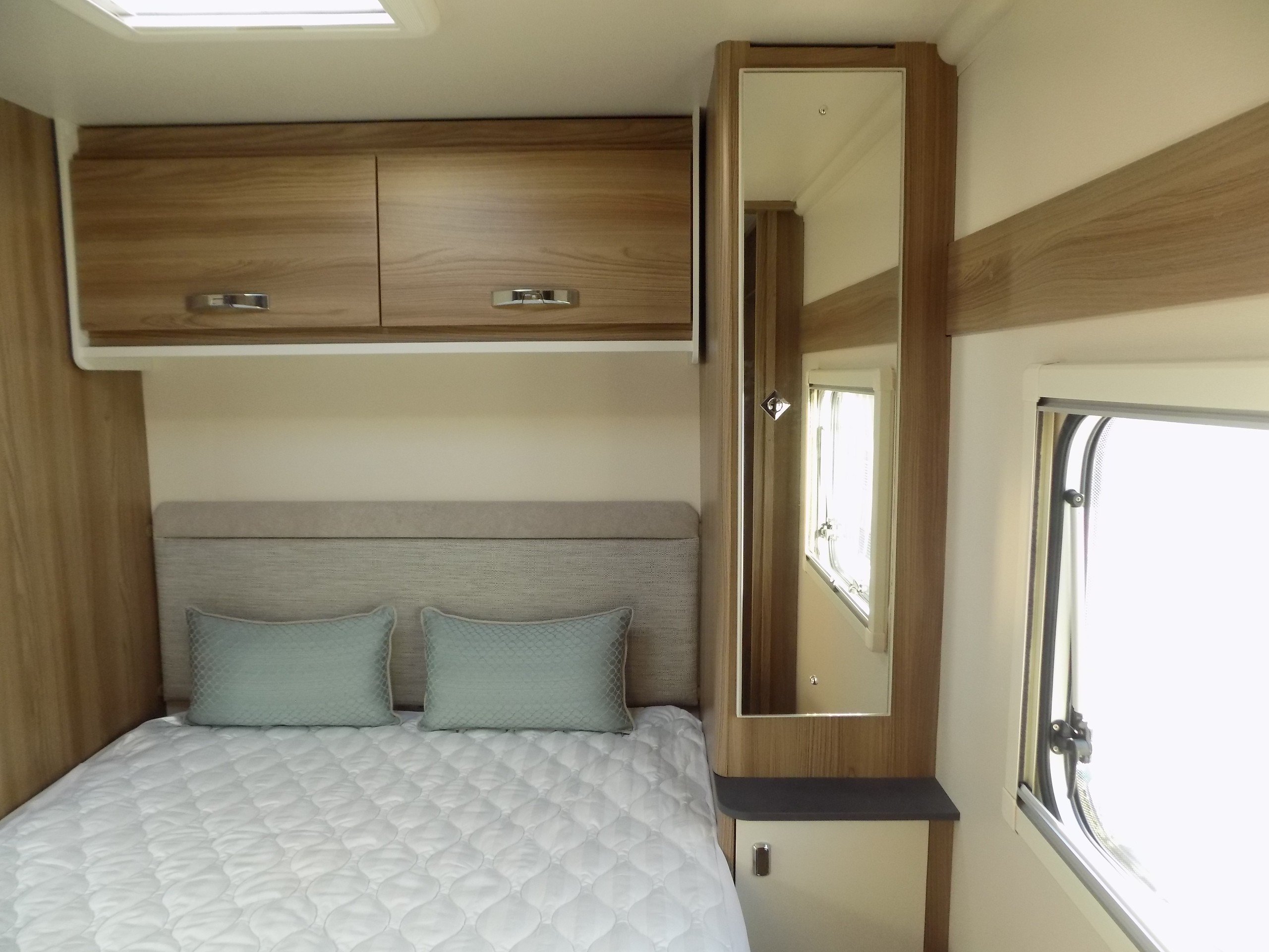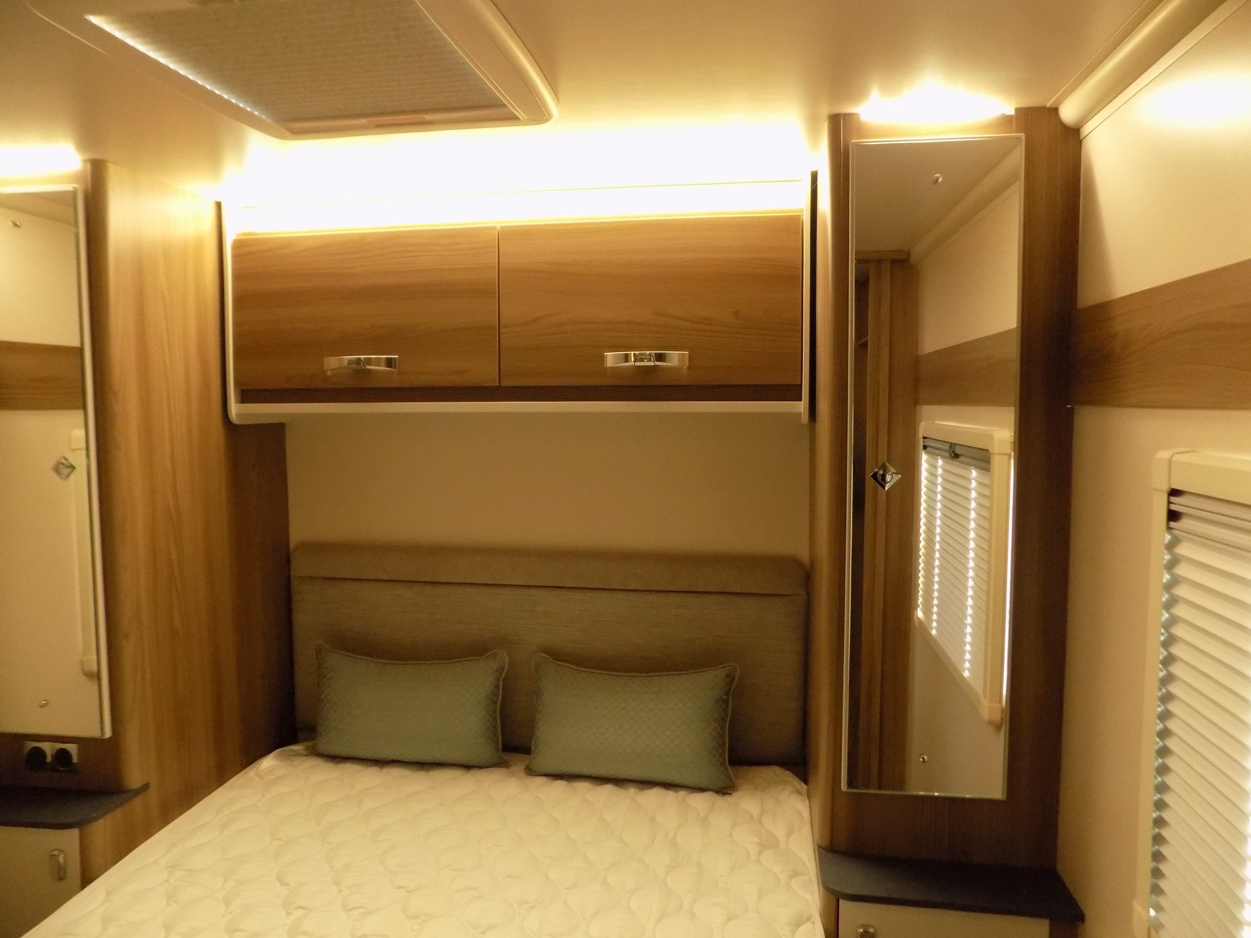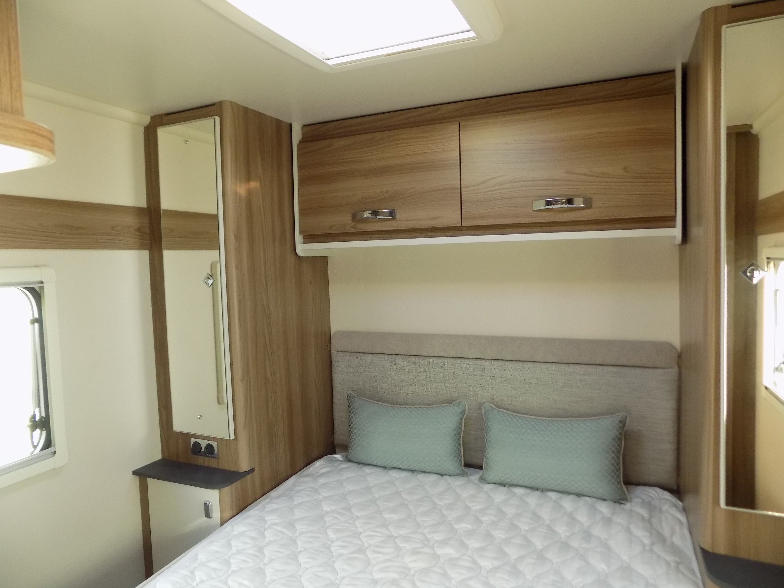 4 berth, end island bed, mid washroom layout. Load margin: 156kg.