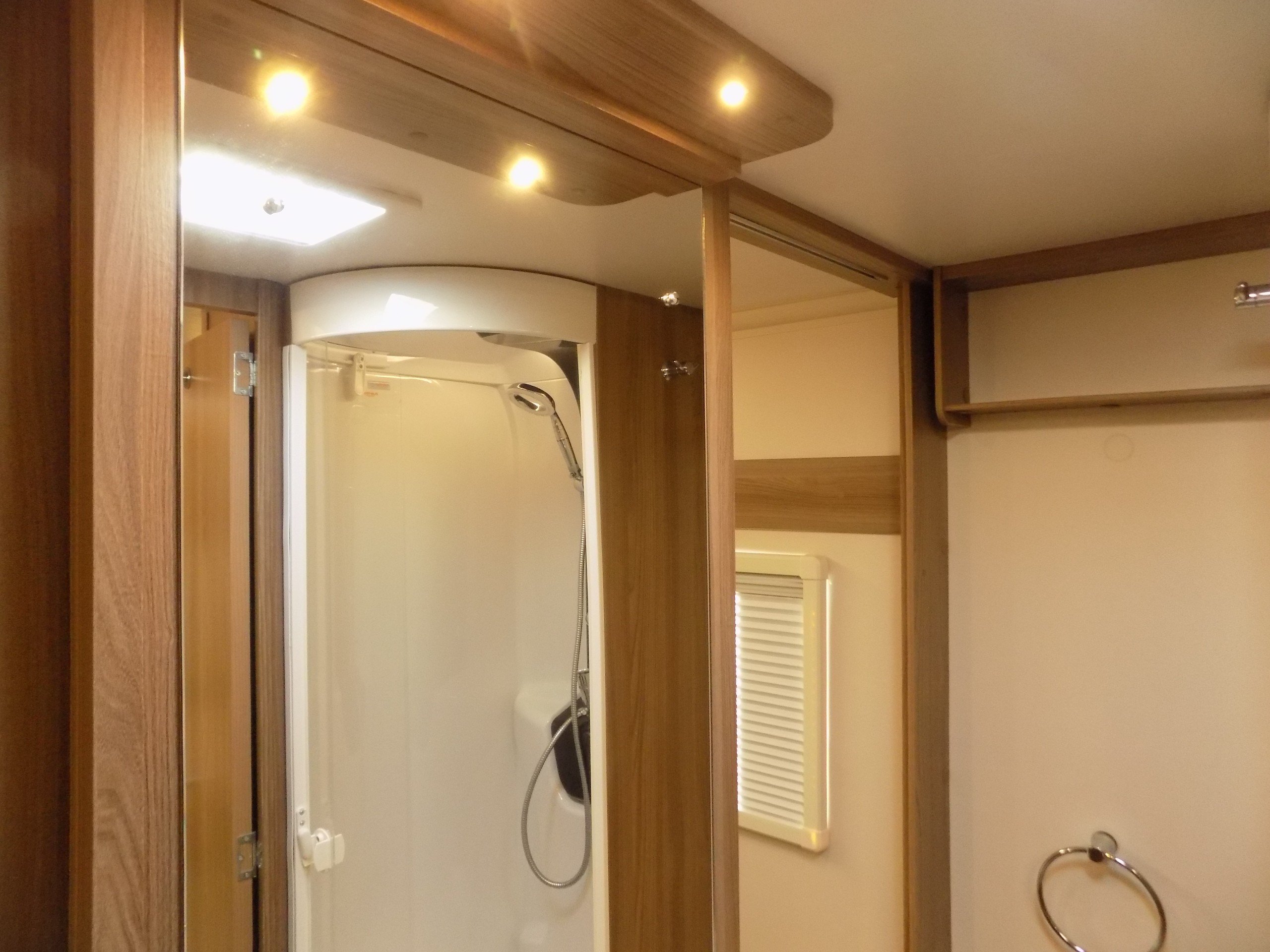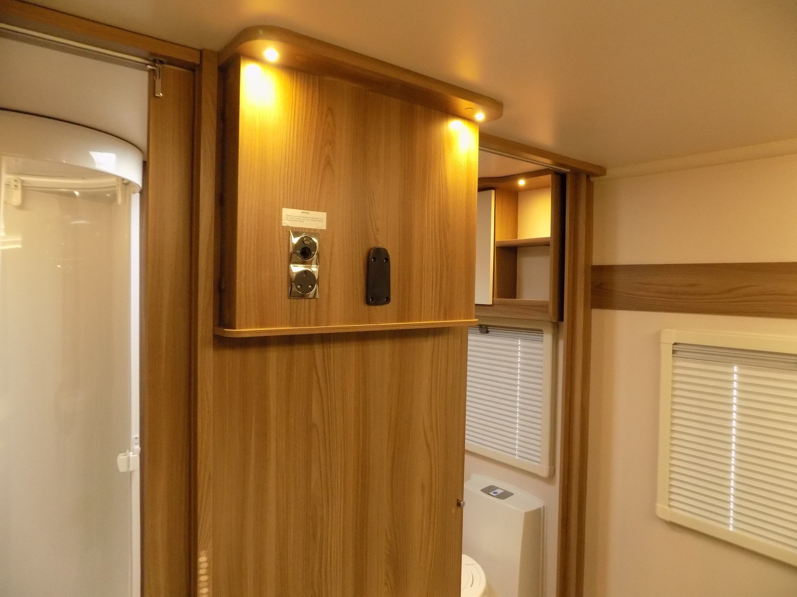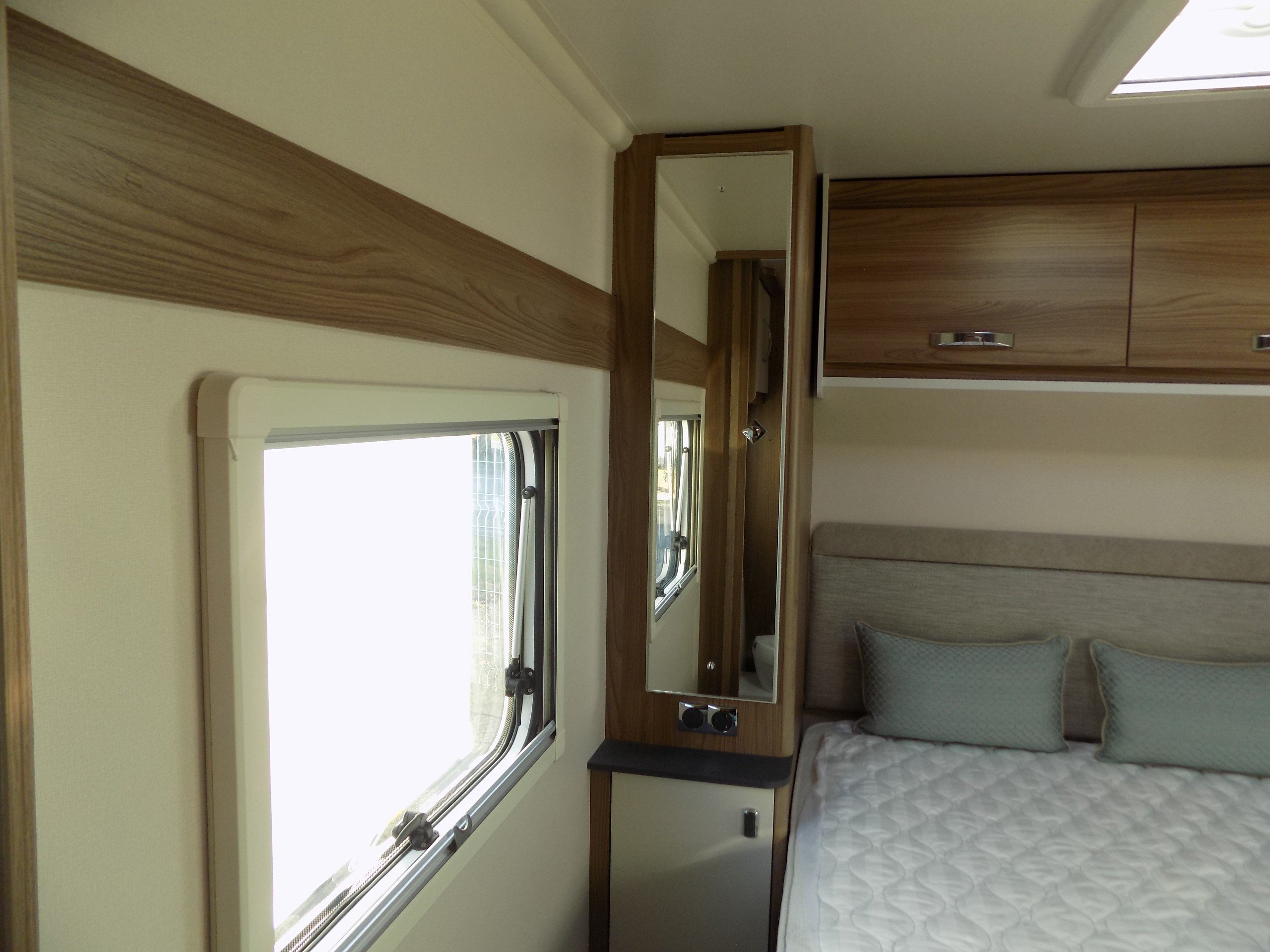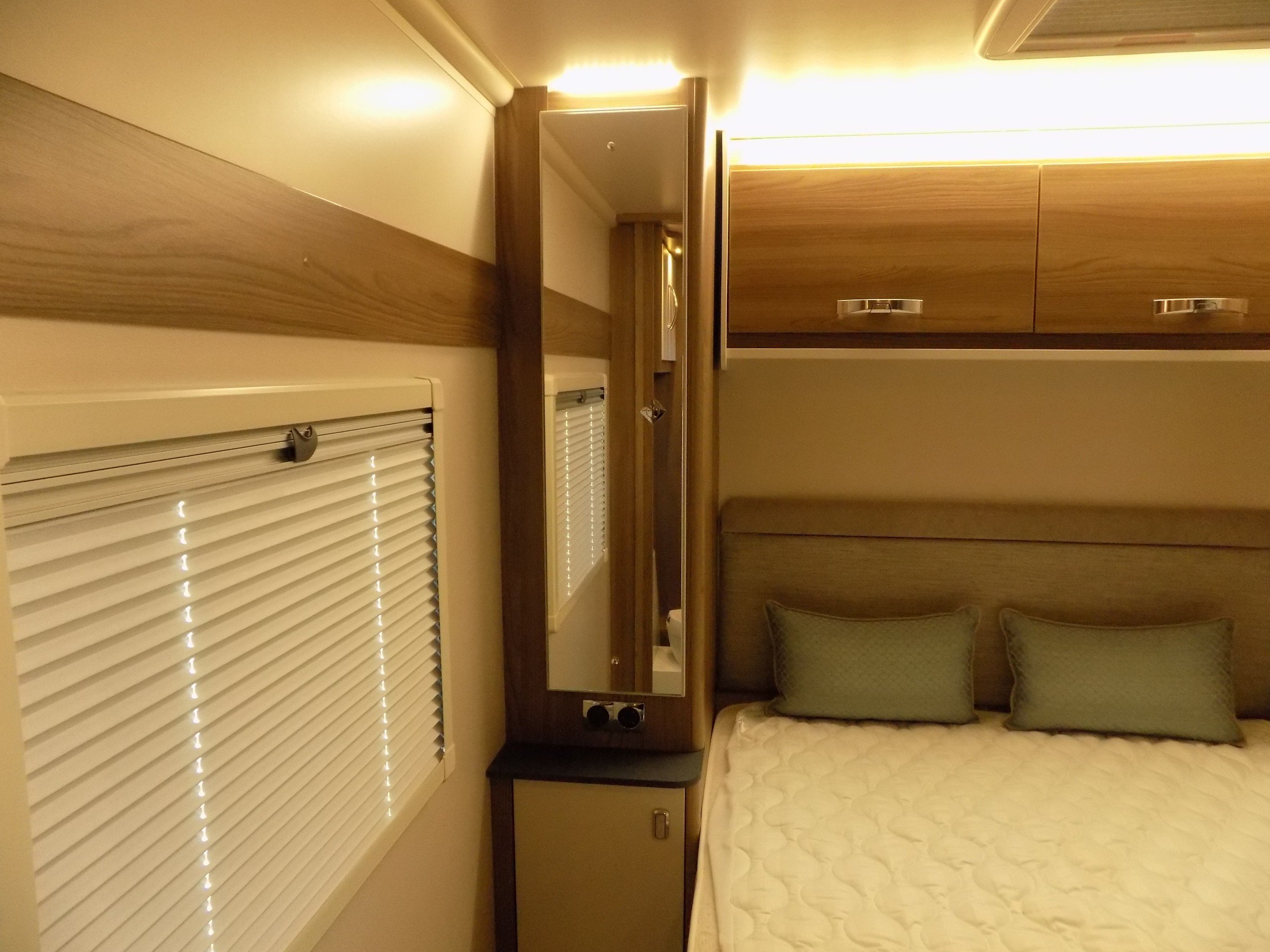 4 berth, end island bed, mid washroom layout. Load margin: 156kg.