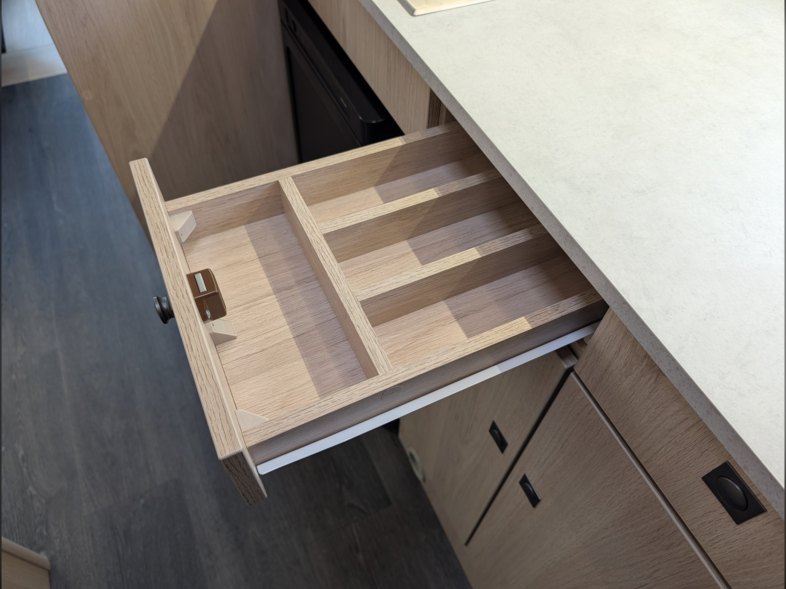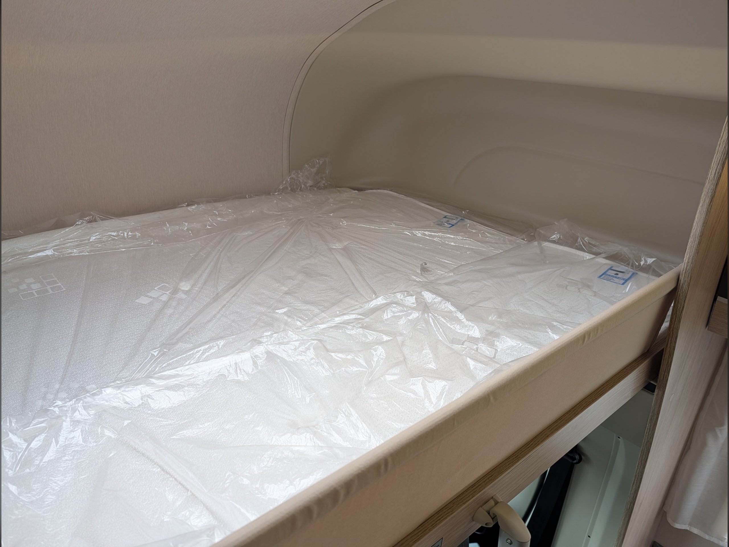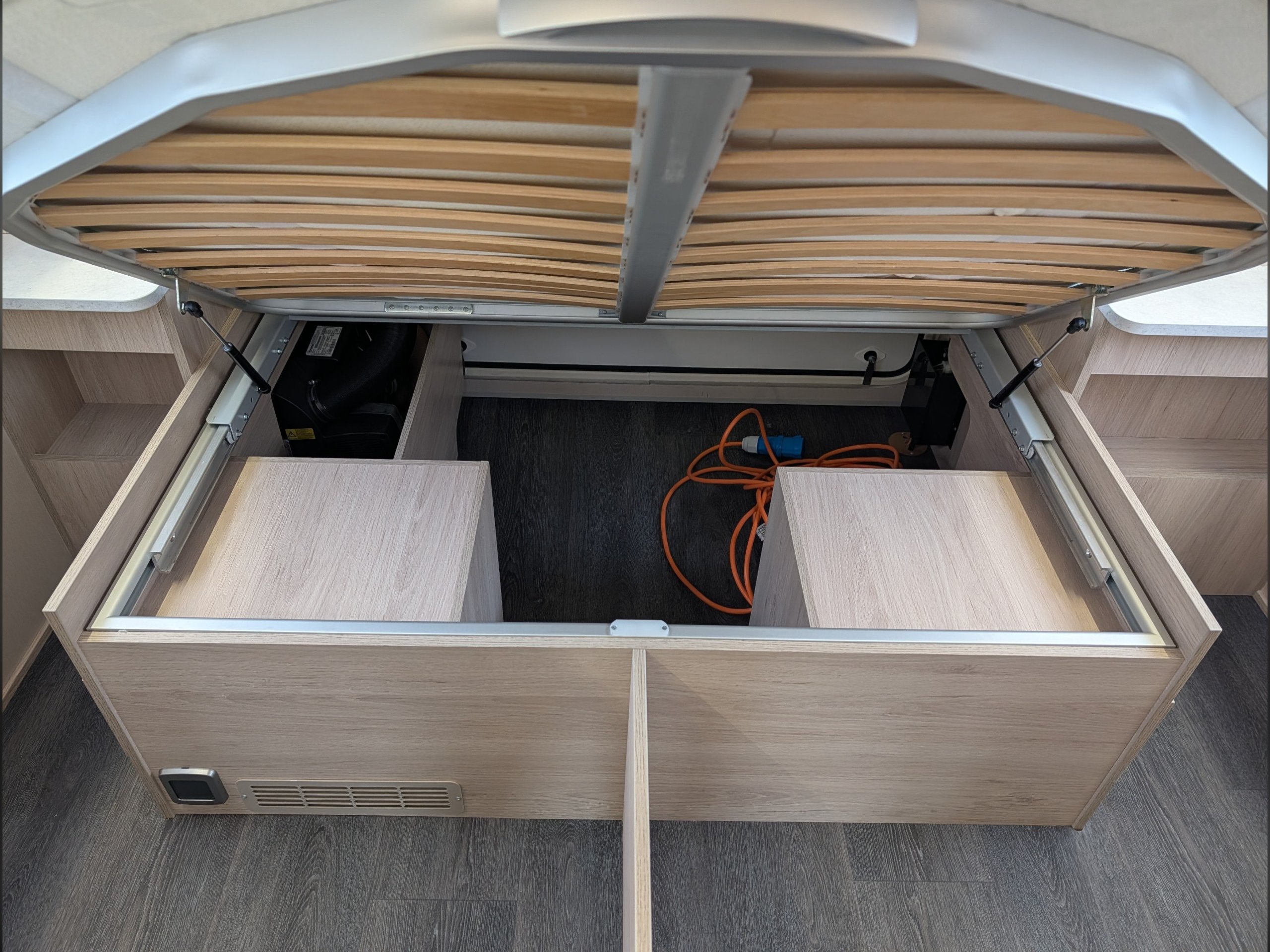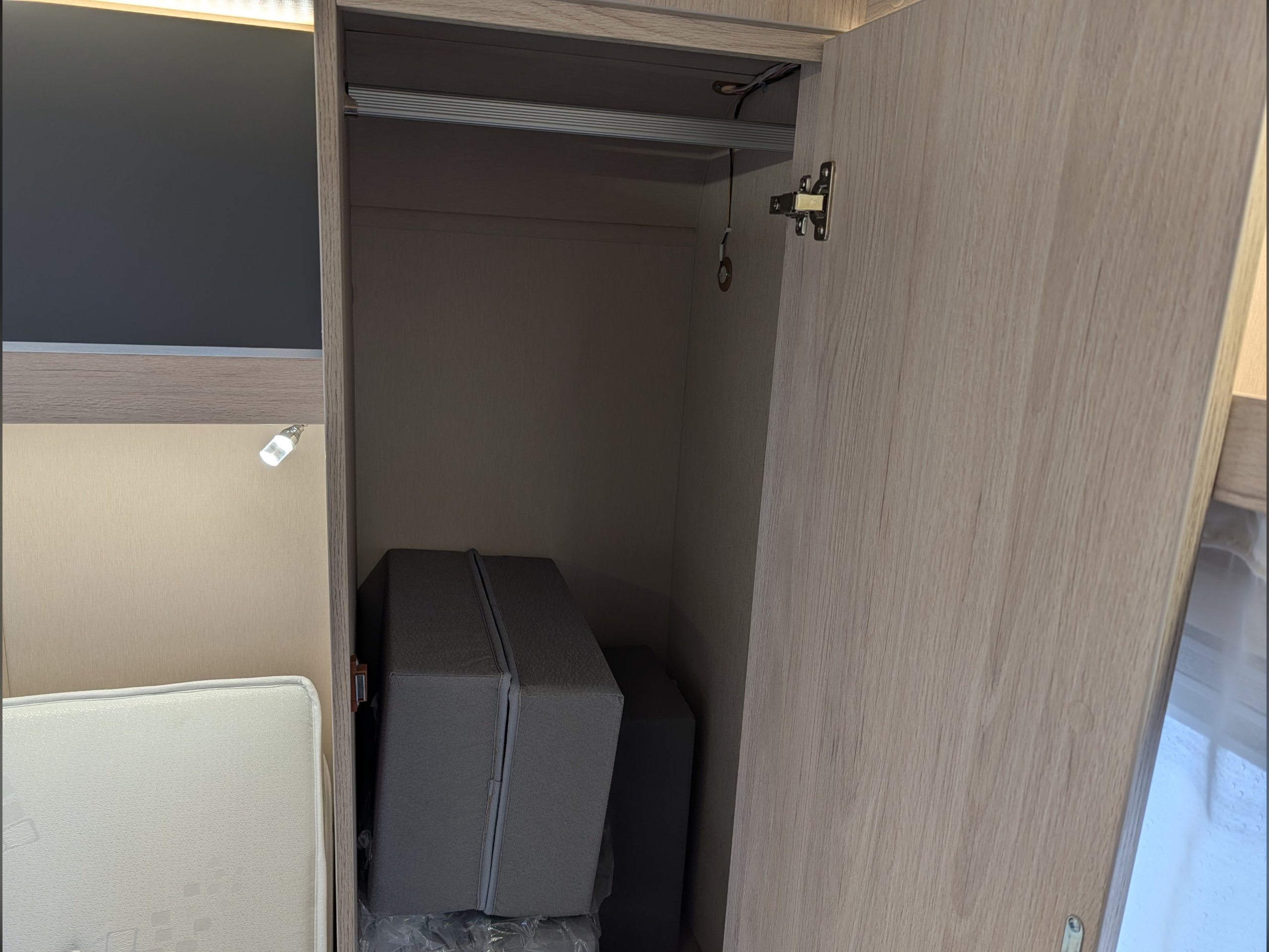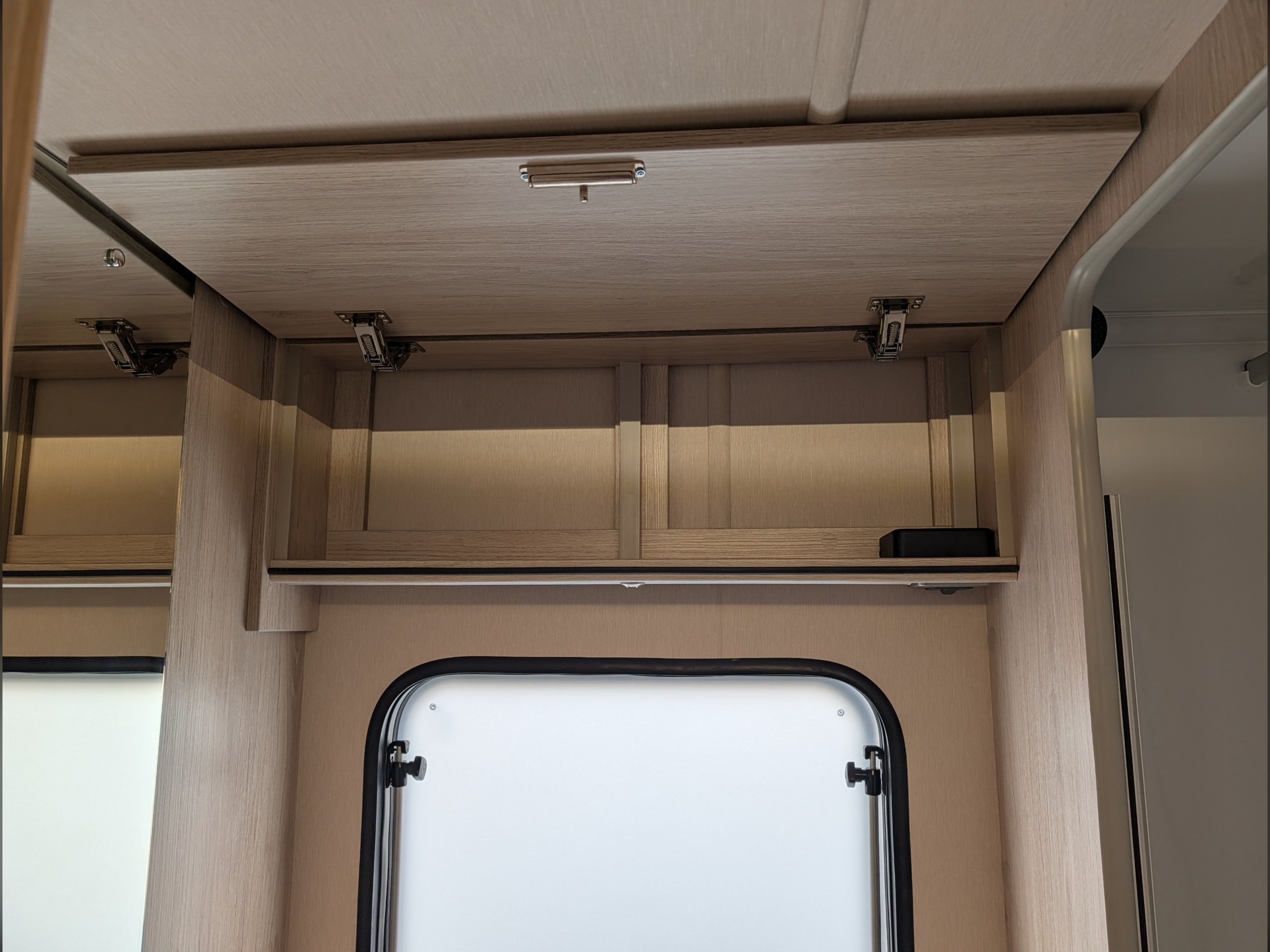 This 2025 Auto-Trail Expedition C71 motorhome has two main, separate fixed double sleeping areas: a rear island bed which can be sectioned off to create a private en-suite bedroom, and another double bed in the over-cab area.