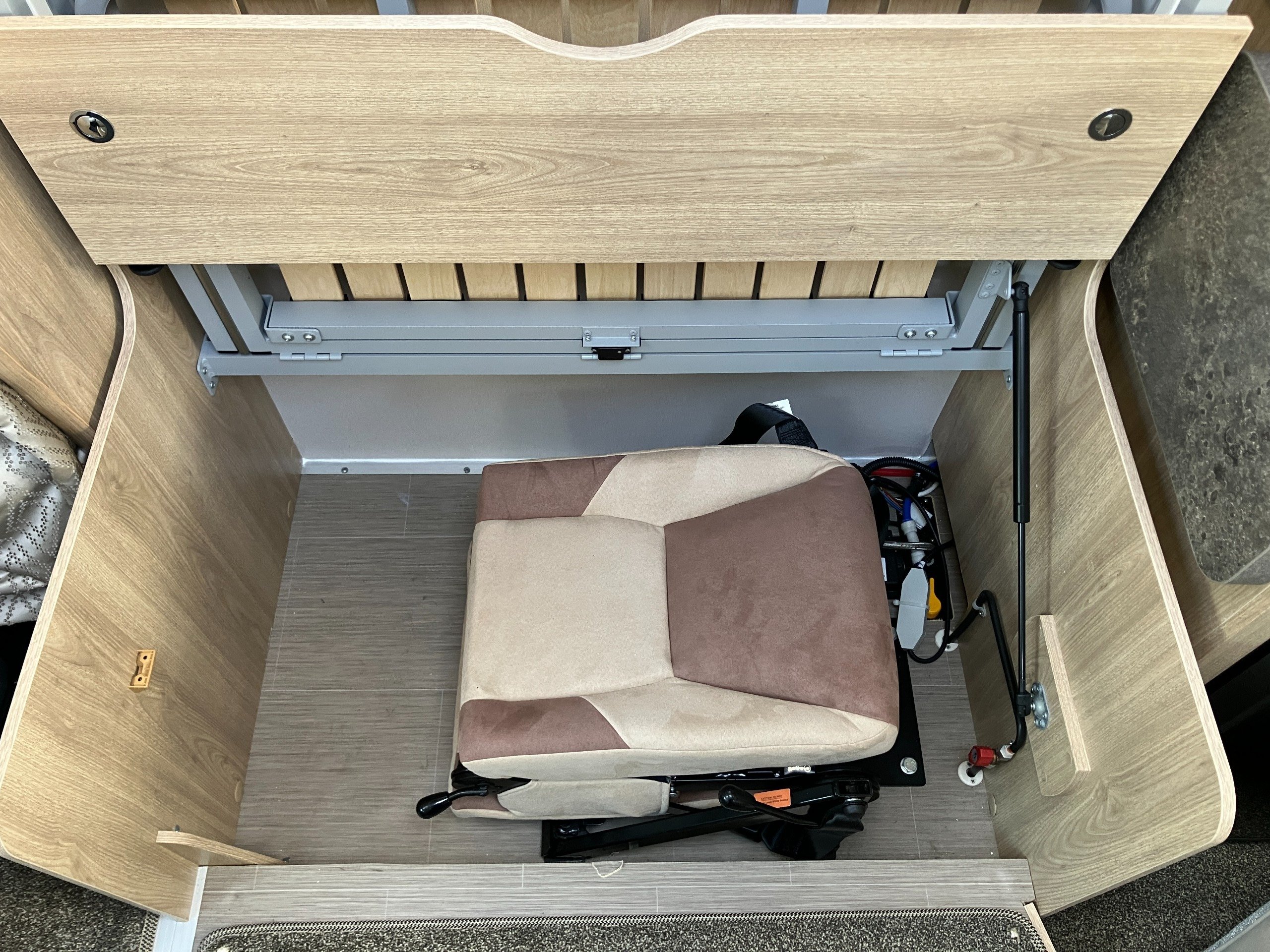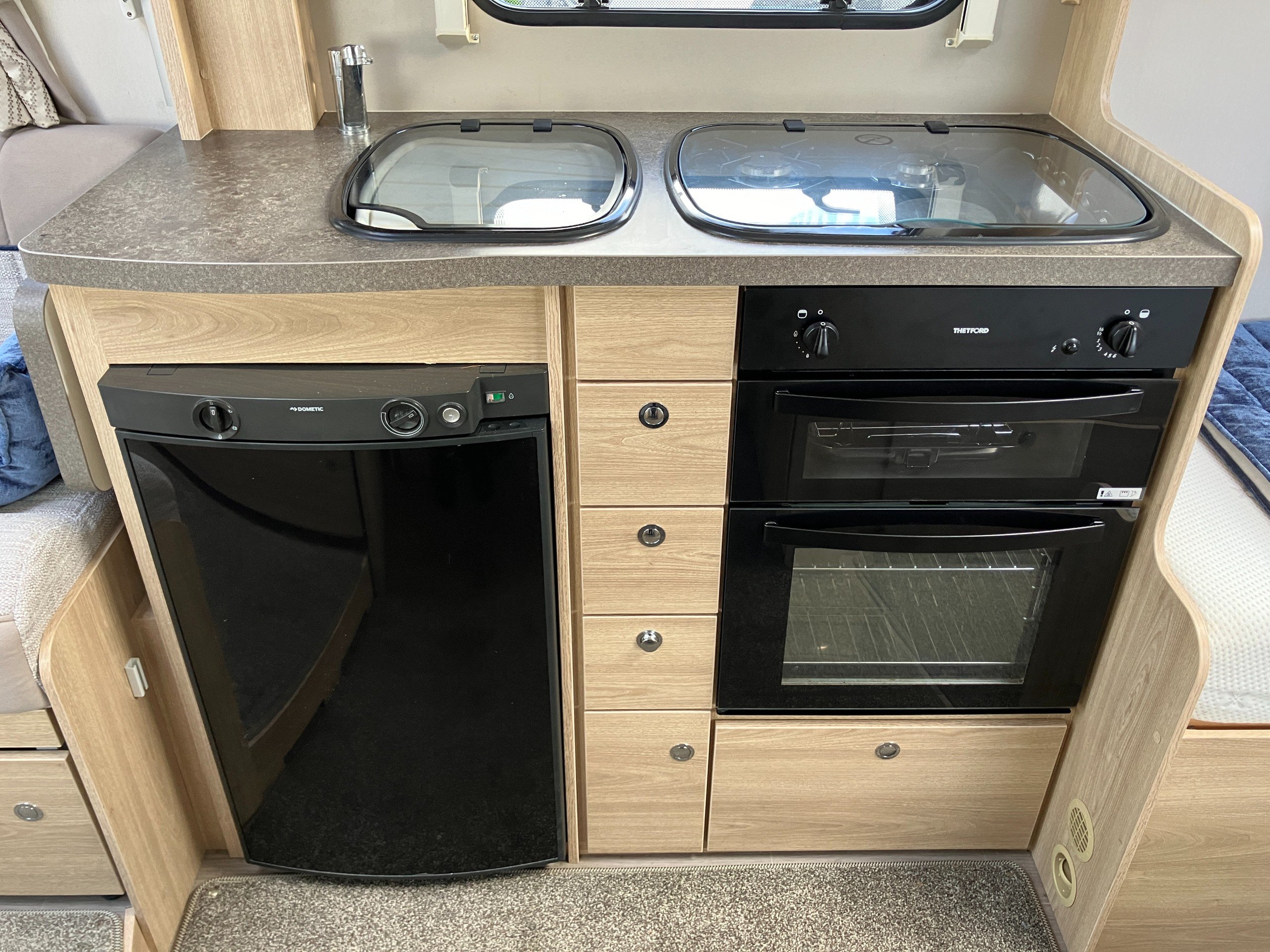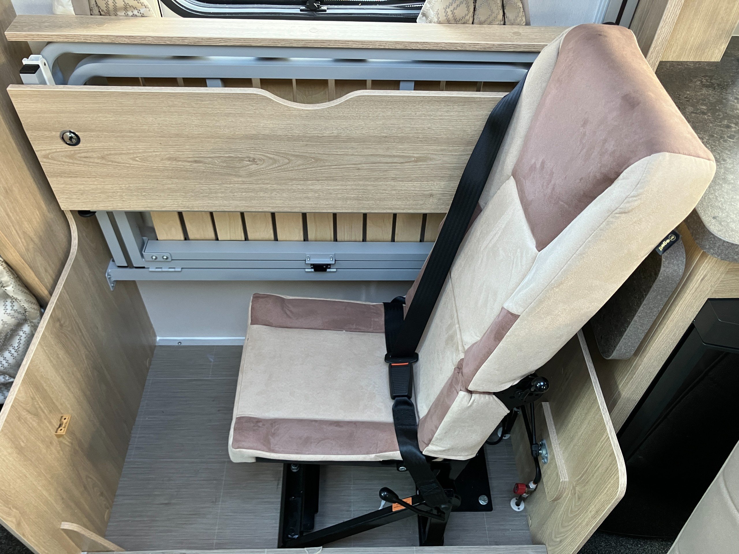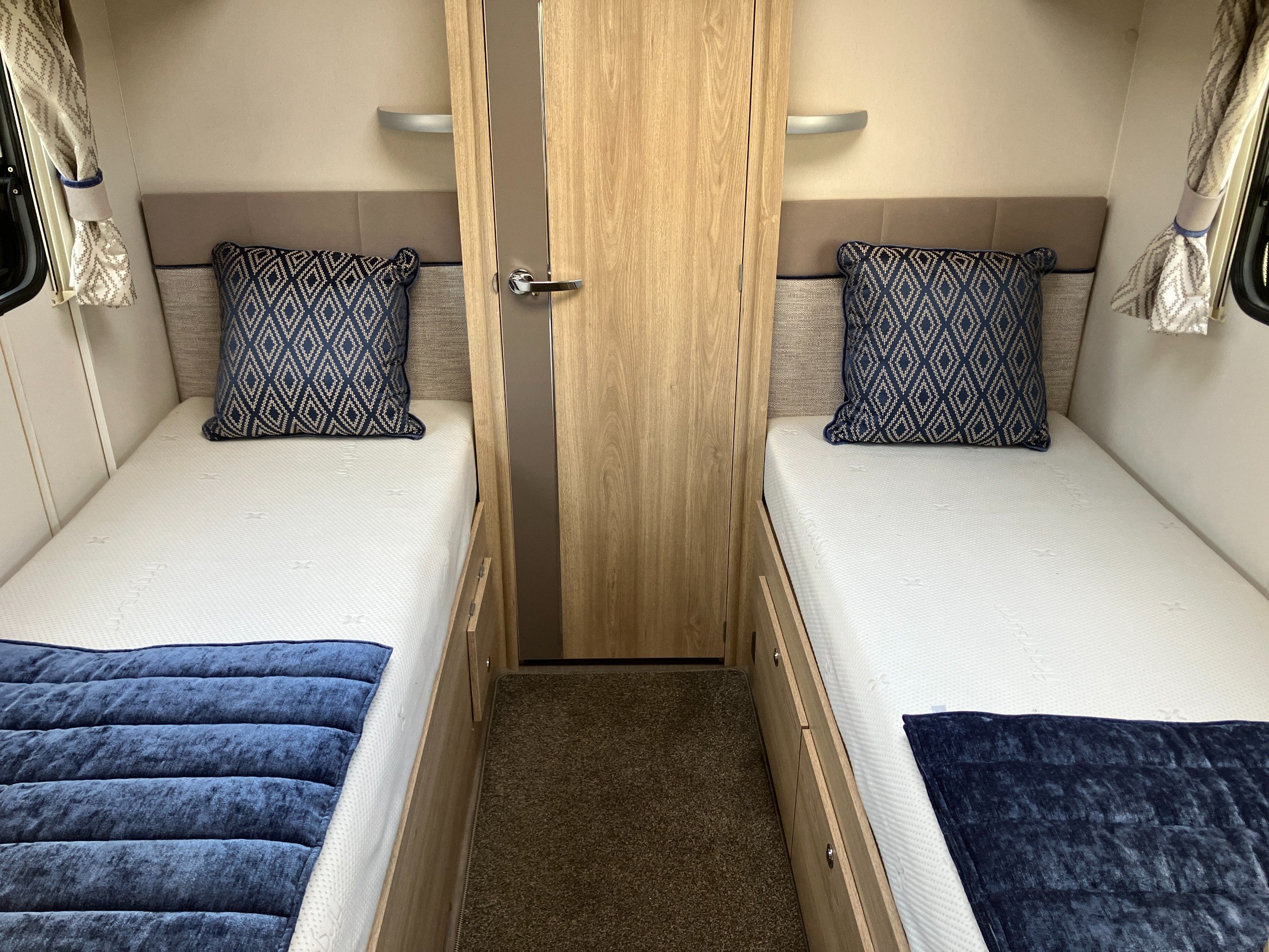 Very low mileage Sussex Special Edition model with bespoke soft furnishings and exclusive graphics. This spacious layout with light tone of wood and contemporary finish offers a bright and comfortable living space for any couple or family. Convenient fold away travel seats offer the option of additional travel seats when required, or remove them for additional storage when travel as two. Designed with both style and practicality in mind, this highly desirable model comes with an enhanced specification including: