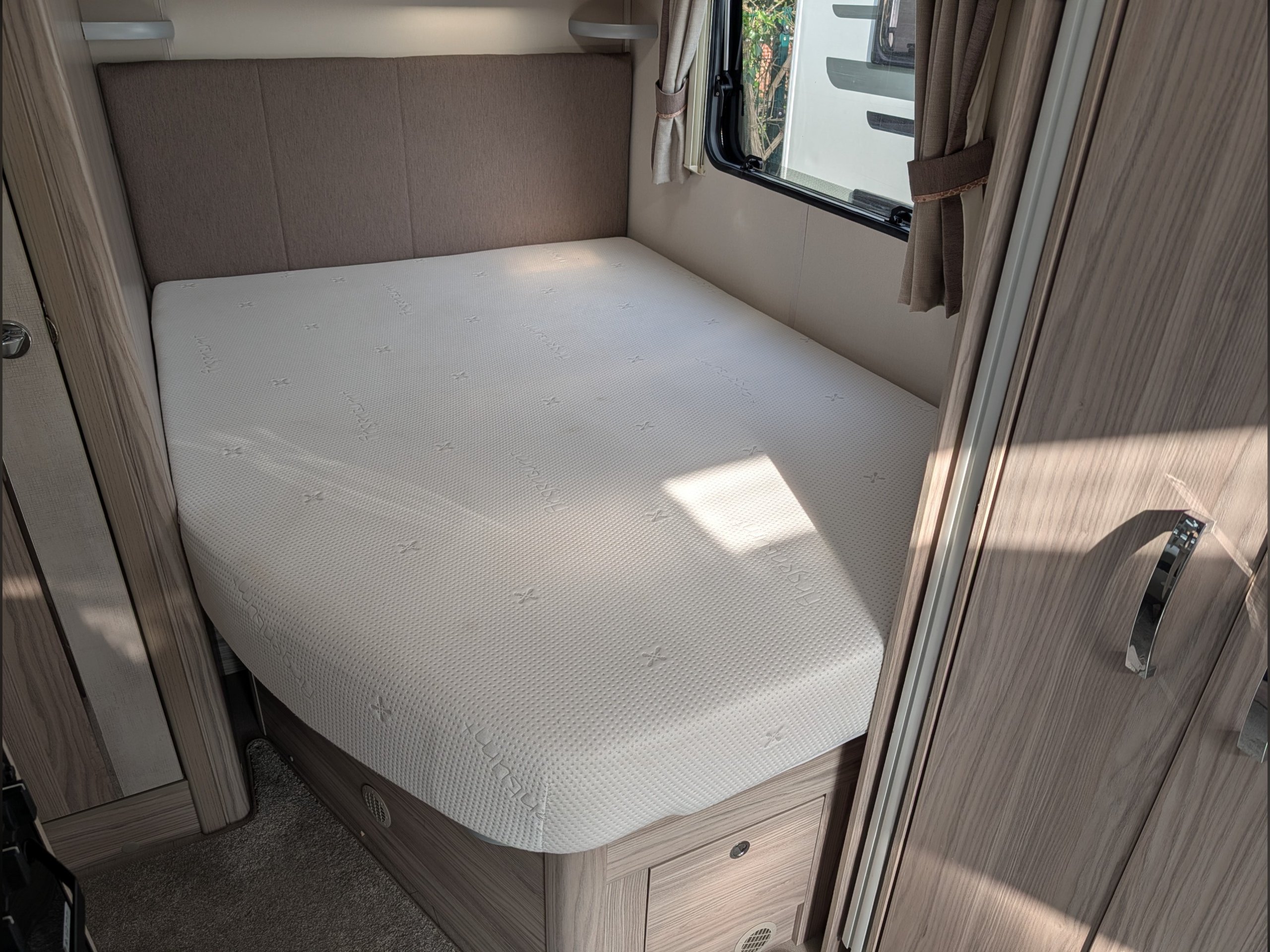 Layout: Front lounge (converts to double bed) and a fixed French double bed at the rear.