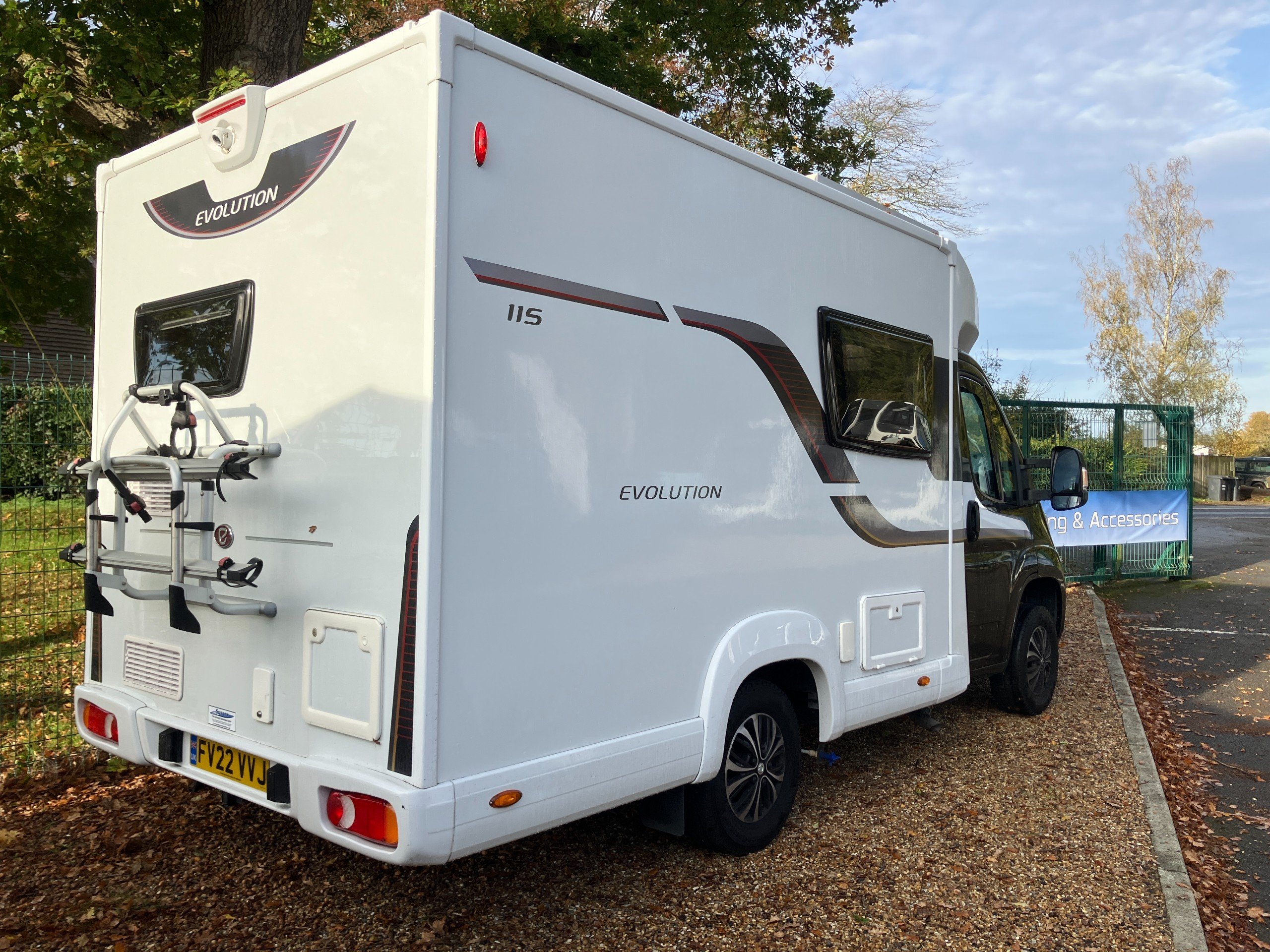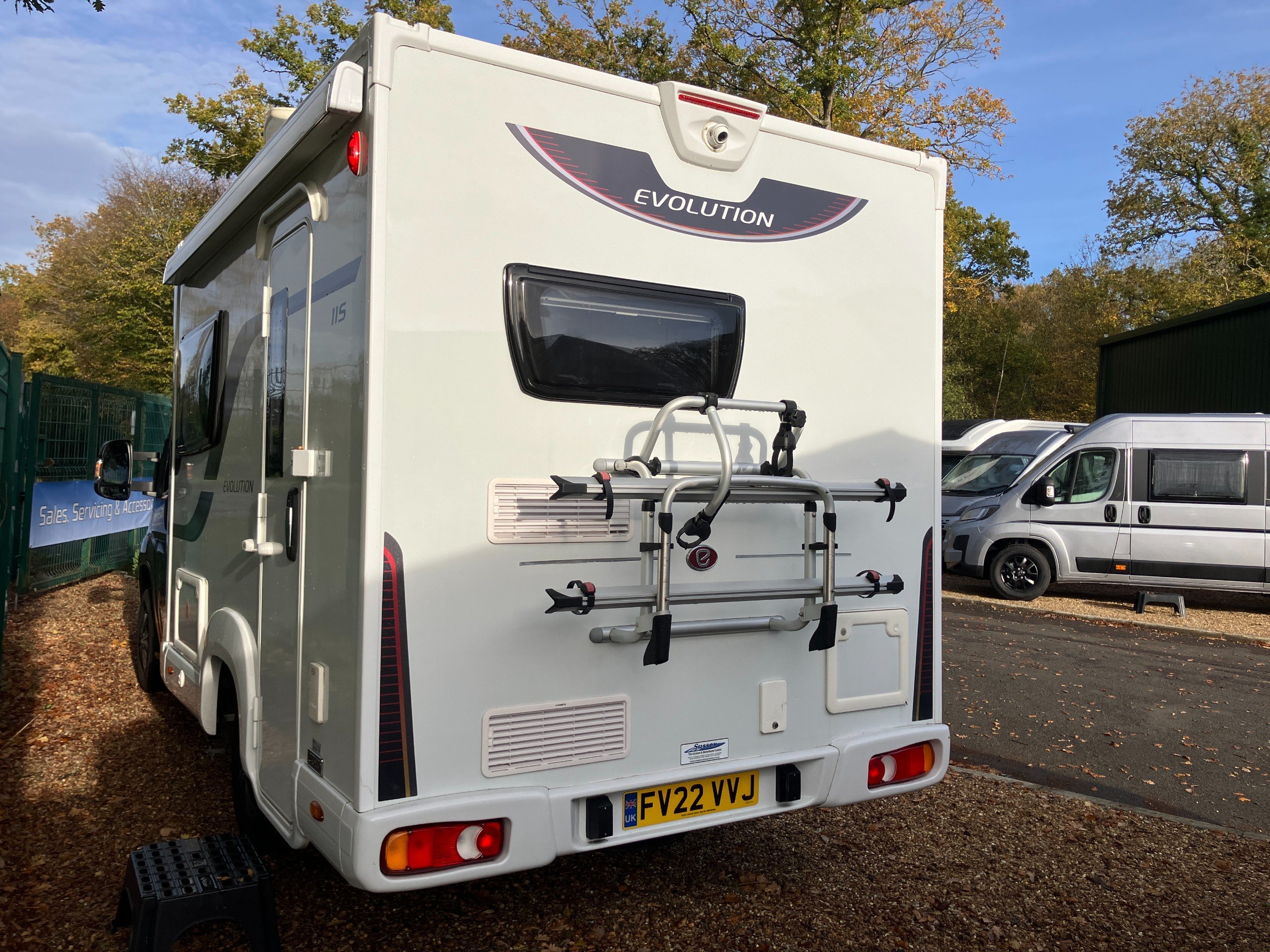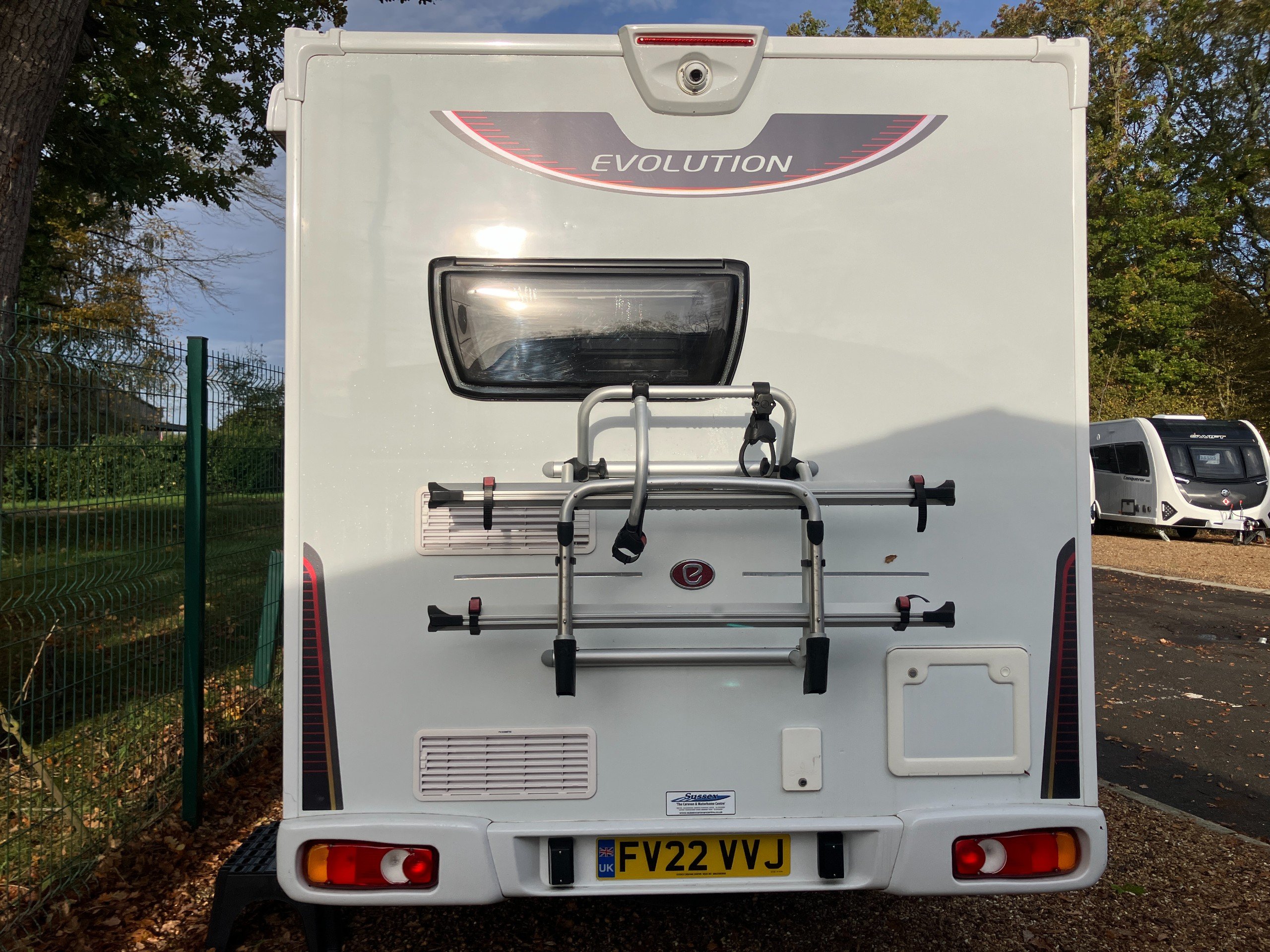 Combining practicality with style, this desirable special edition model is set to impress. At just over 6 meters in length this compact model offers a Tardis like interior with spacious lounge converting into a comfortable 4'4" x 6'10" double or two convenient 5'7" x 2'4" singles. The Evolution 115's modern exterior is complemented by a well equipped interior featuring a full end kitchen with dual fuel hob, fridge, oven, and microwave, in addition to a carefully planned wetroom to the offside. Designed without compromise, this model comes with the benefit of a wind-out canopy awning, bike rack, solar panel, cab blinds, rear view camera, winter pack, and sat nav.