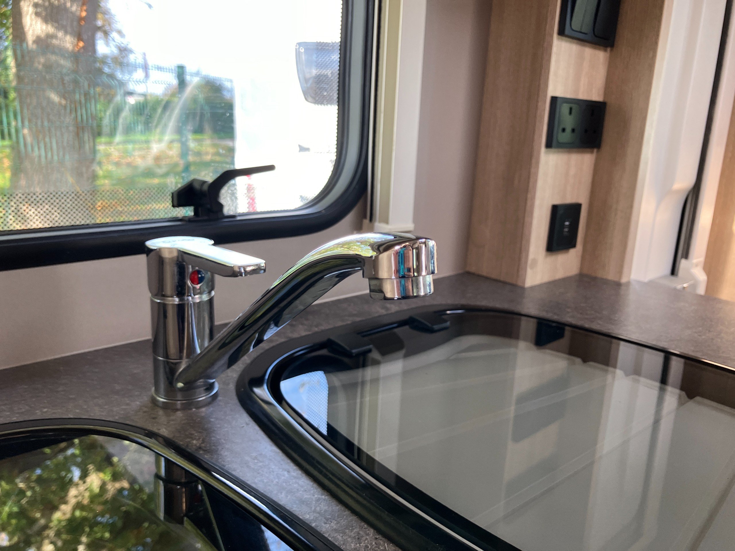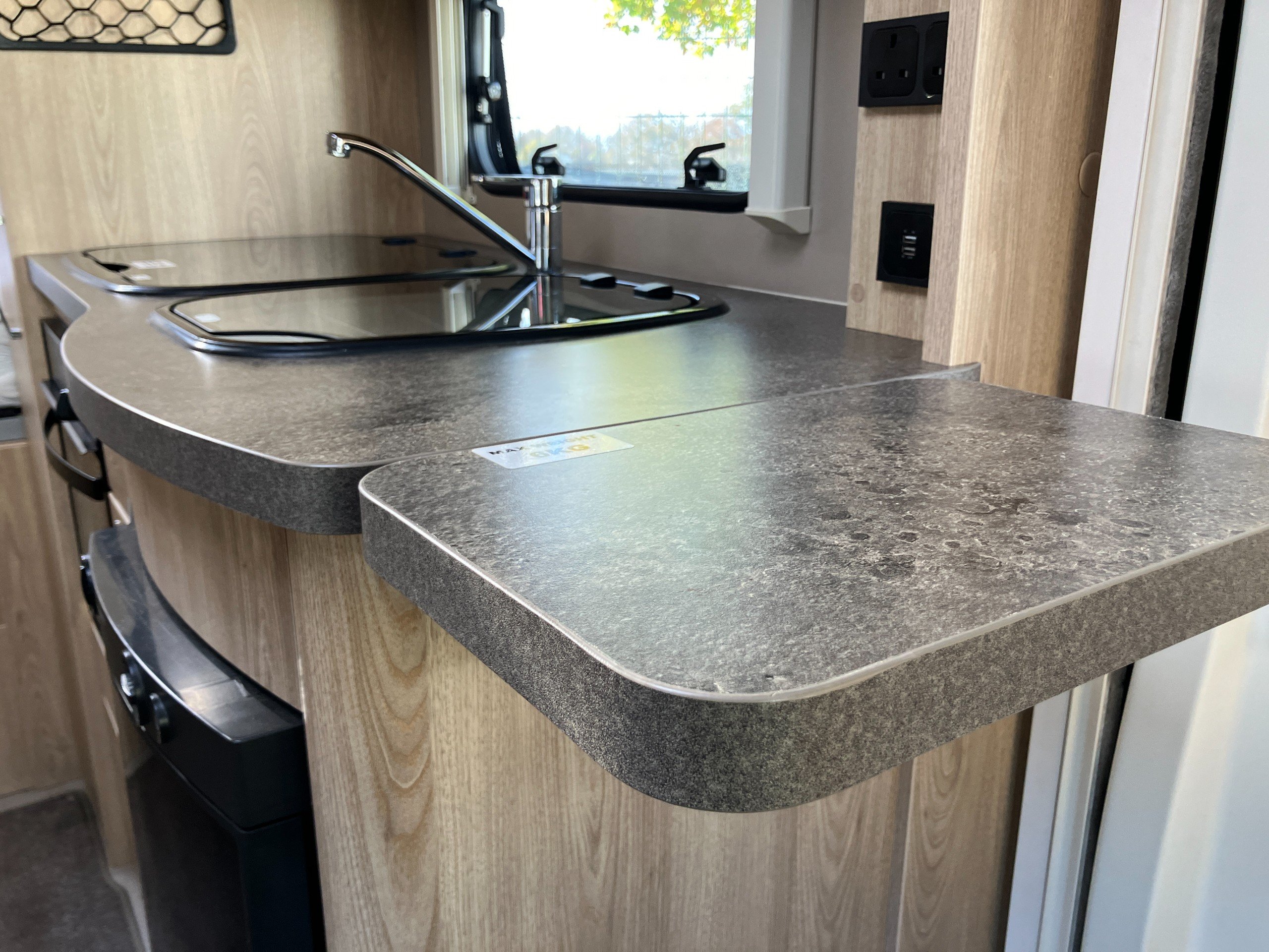 This model comes with the added benefit of a wind-out canopy, solar panel, reversing camera, sat nav, omnivent roof fan, external gas BBQ point, and exterior cold water shower point.
