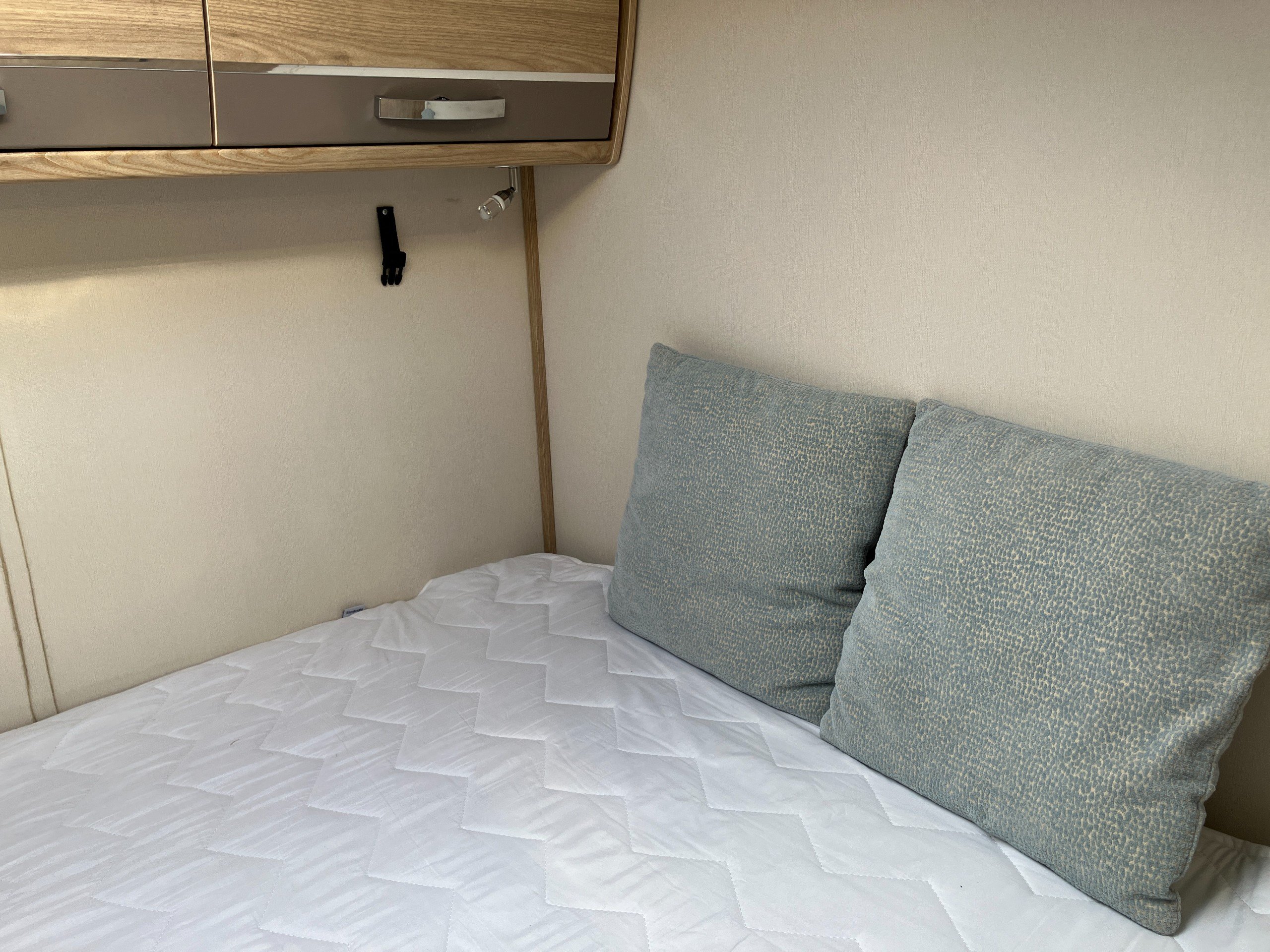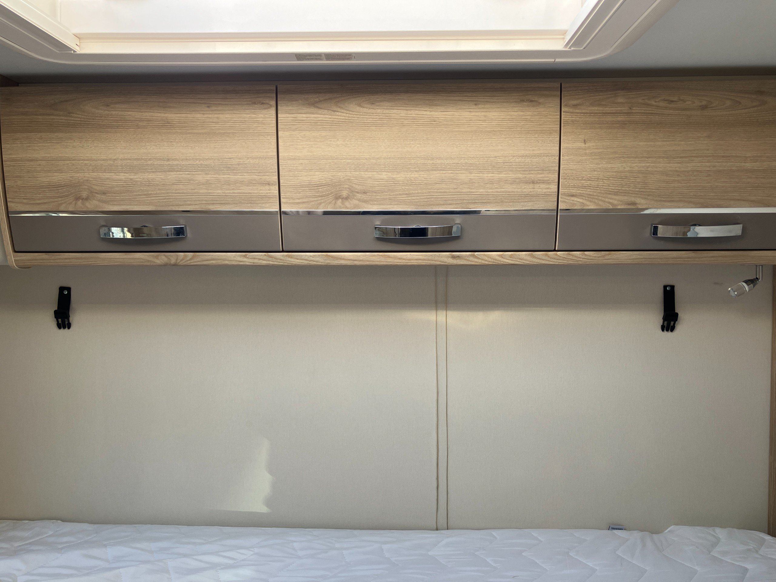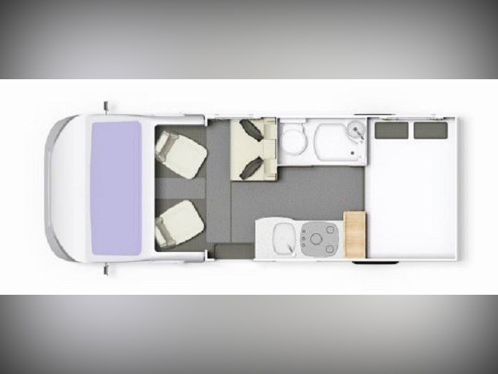 3 berth, 4 belt, rear fixed bed, side wetroom layout. GVW: 3300kg.