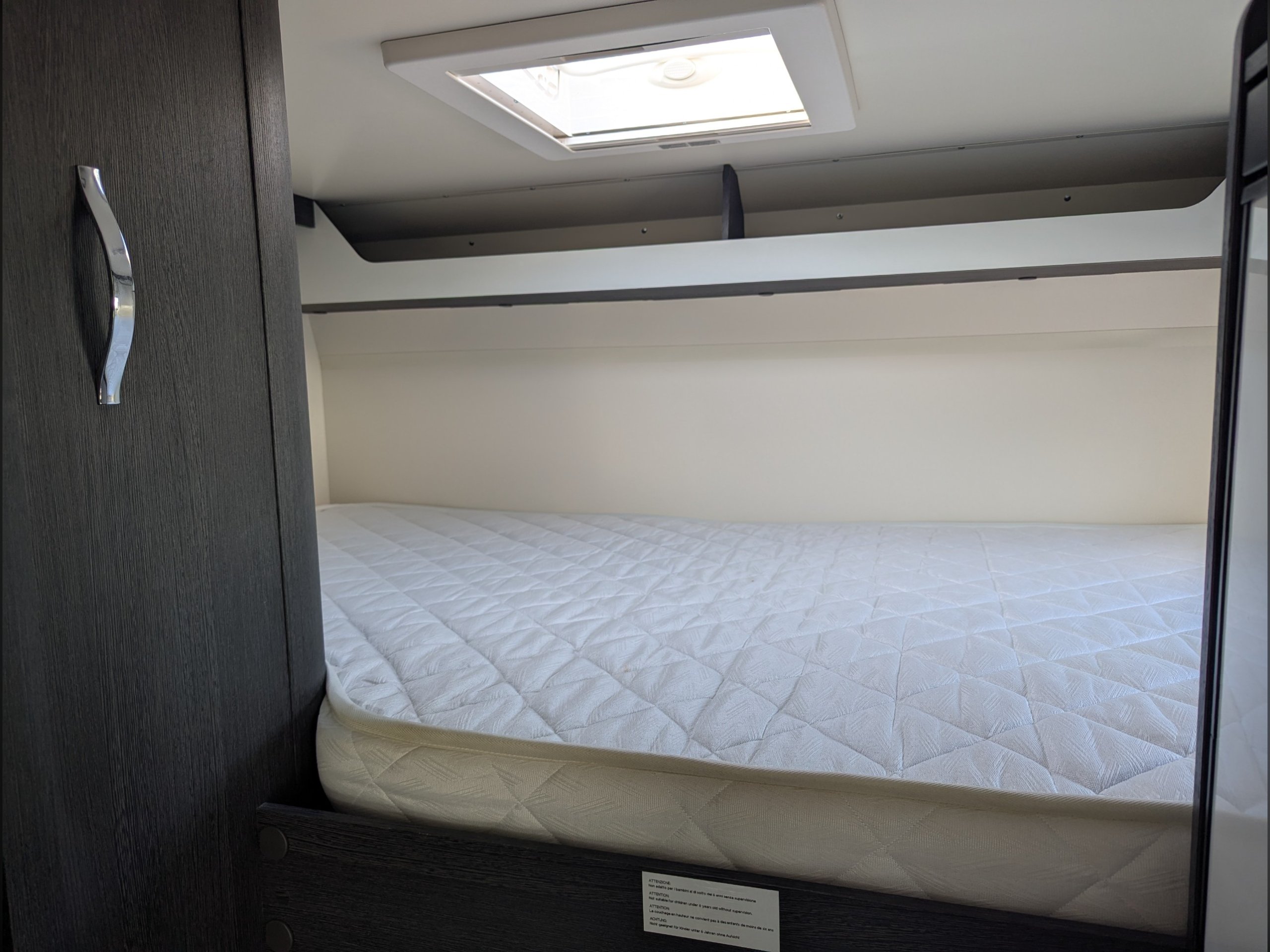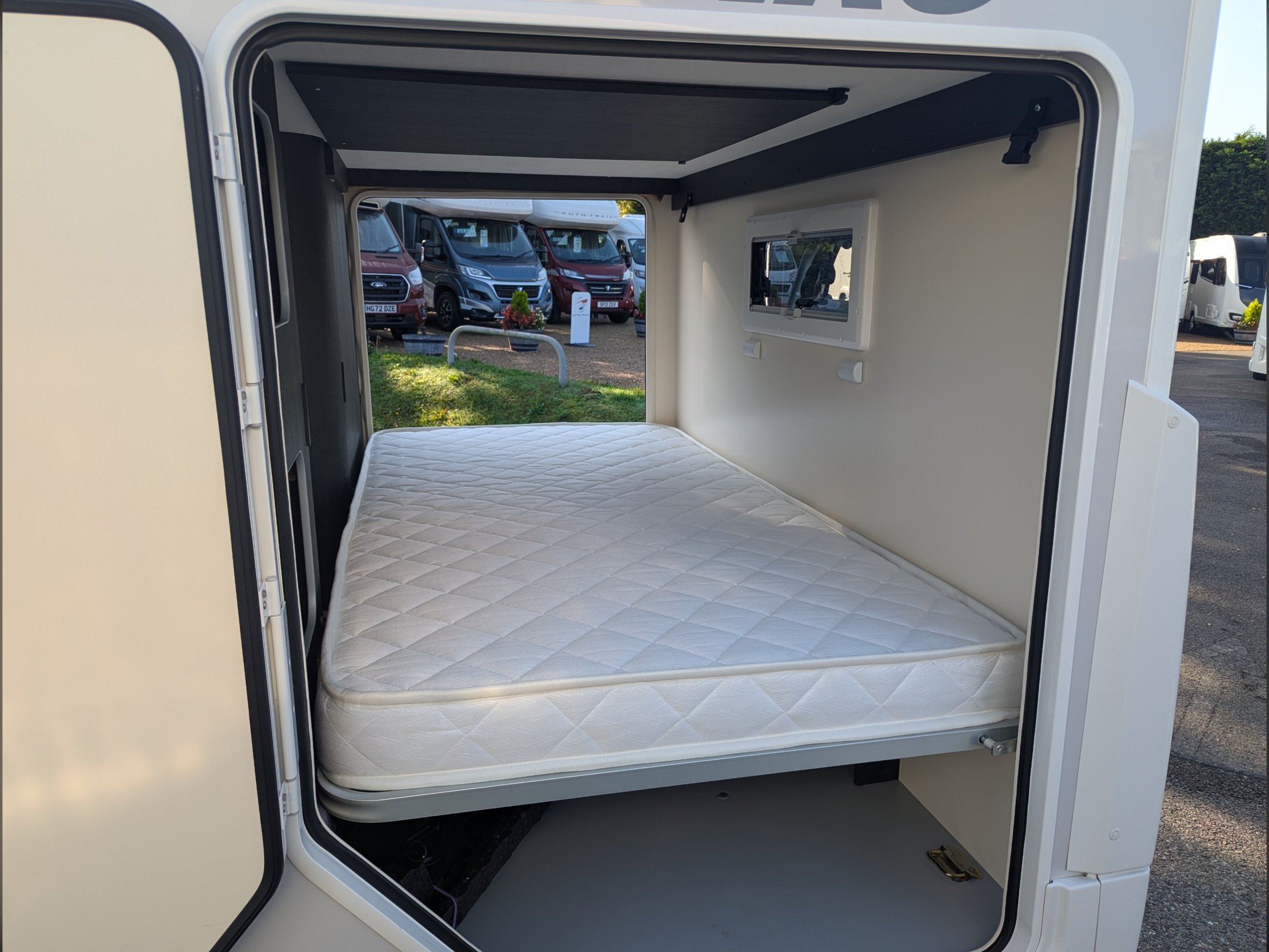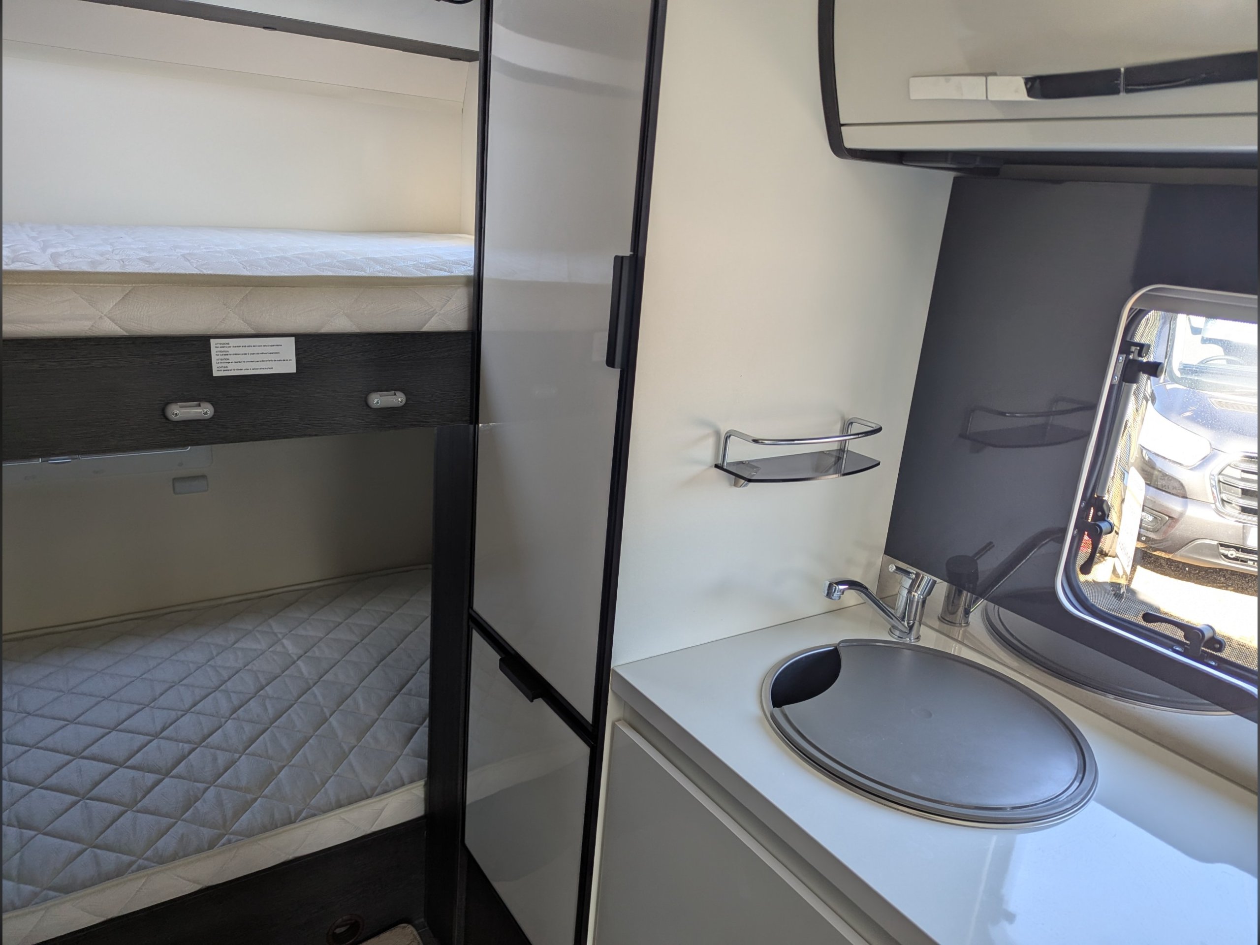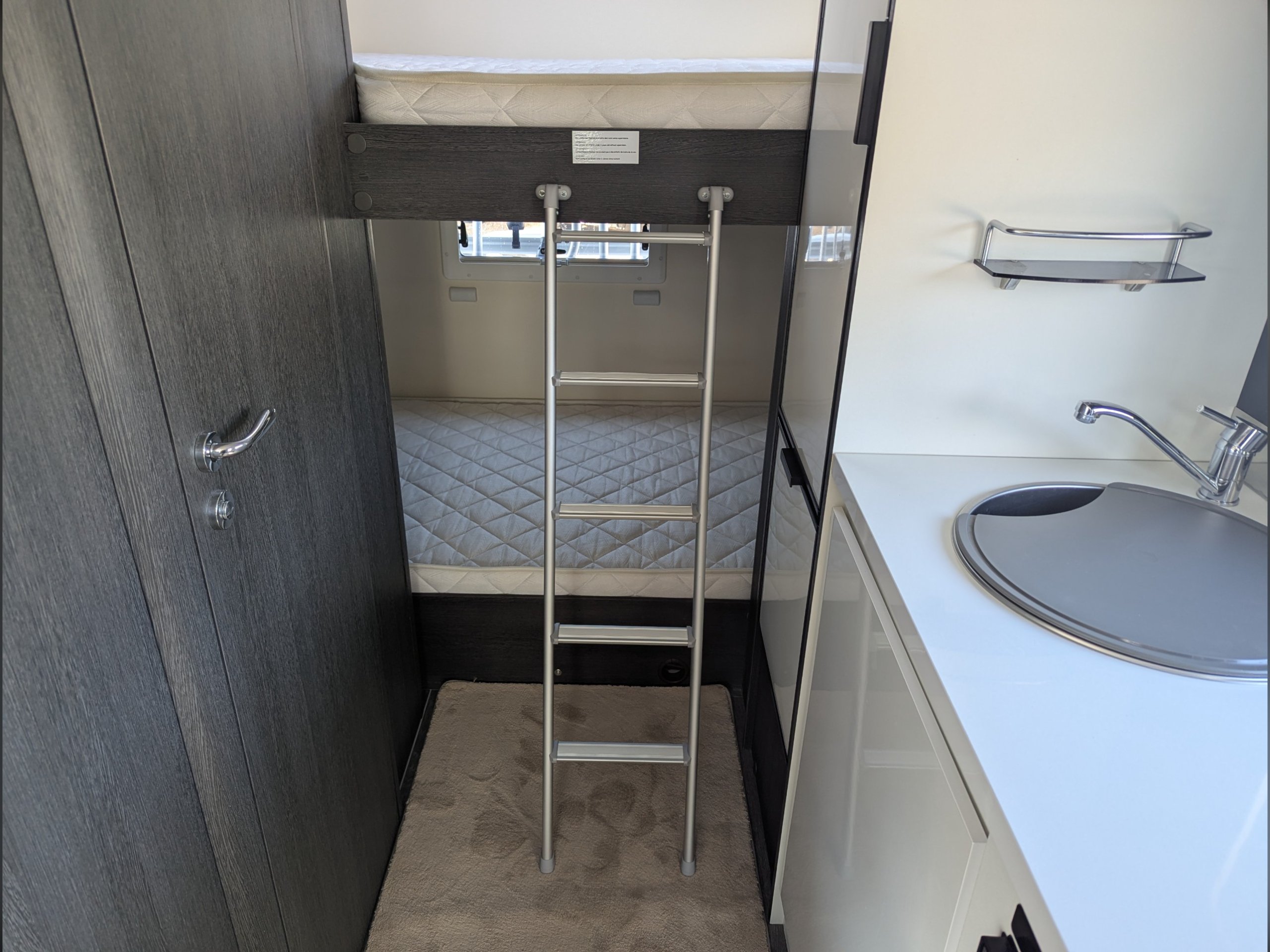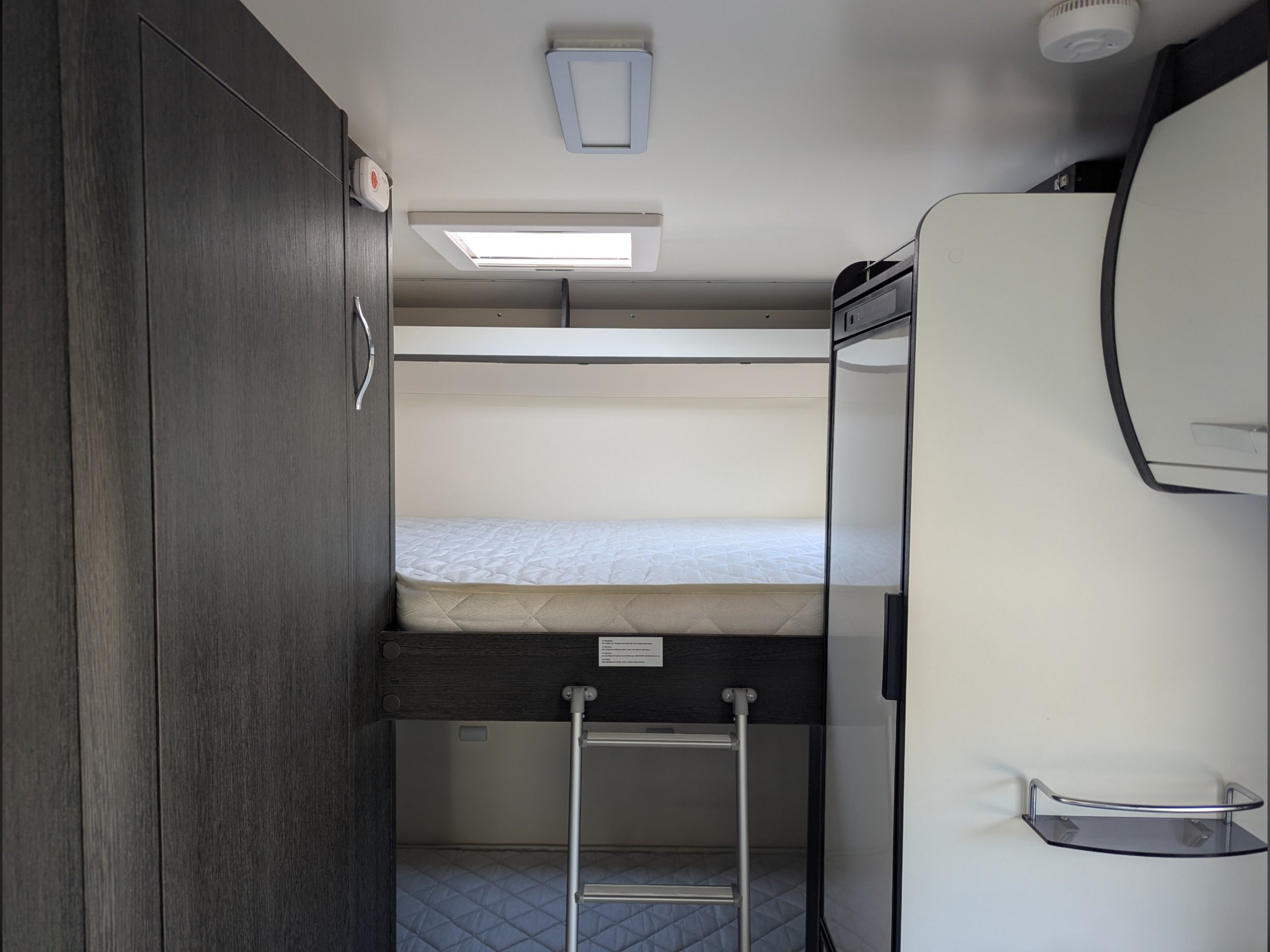 There are two bunk beds at the rear, with the lower bunk being able to be folded away to provide more space in the garage area.