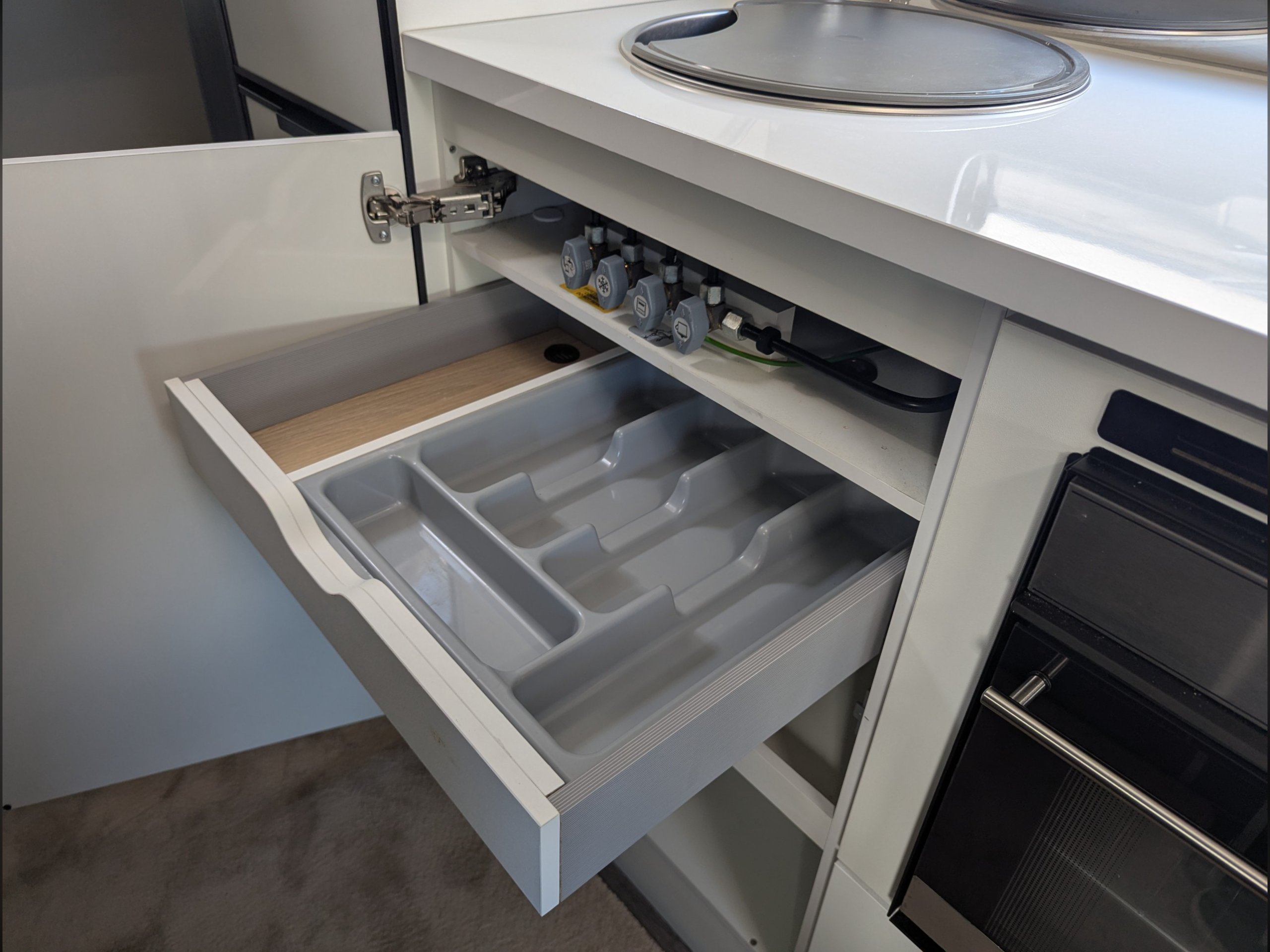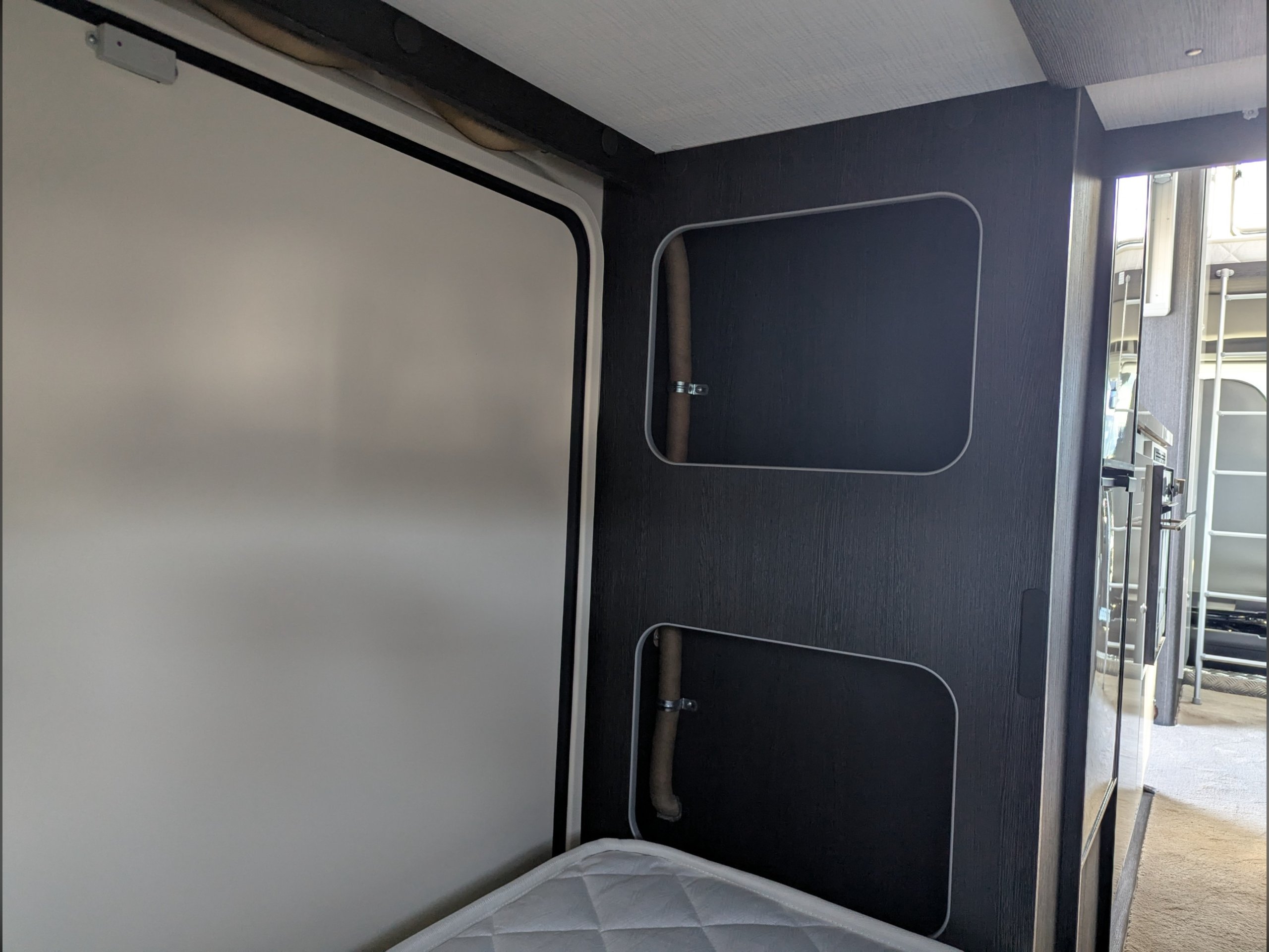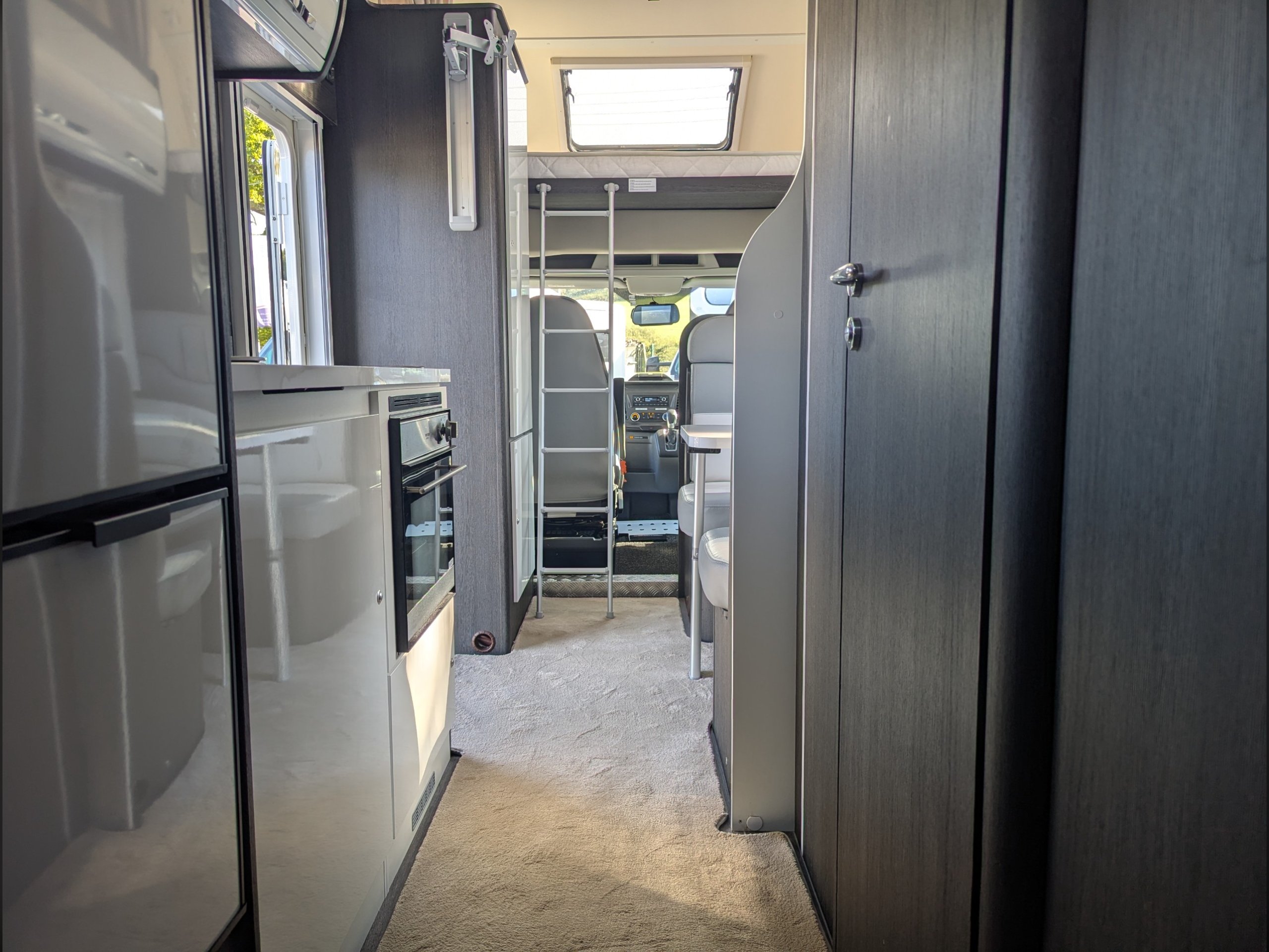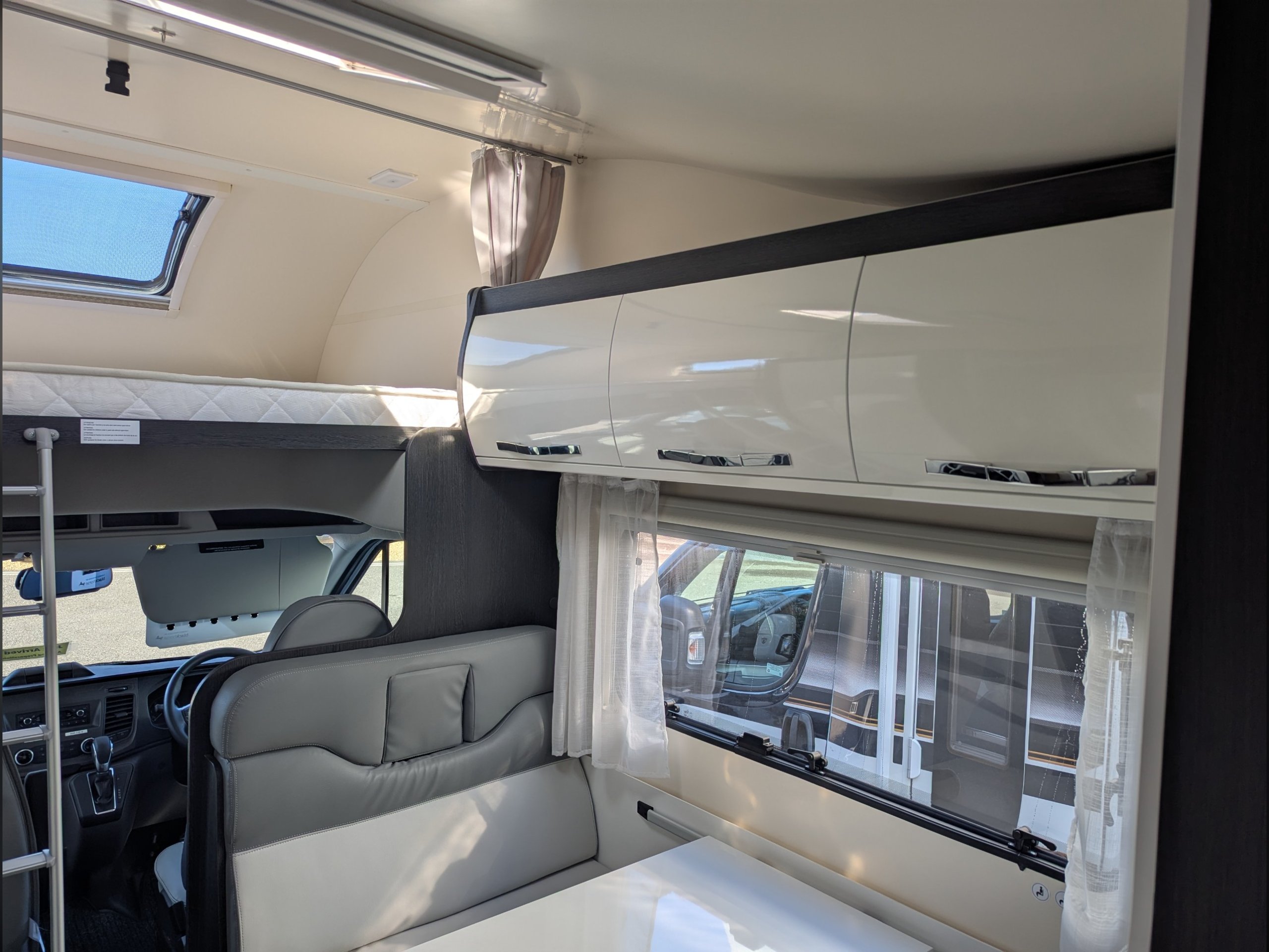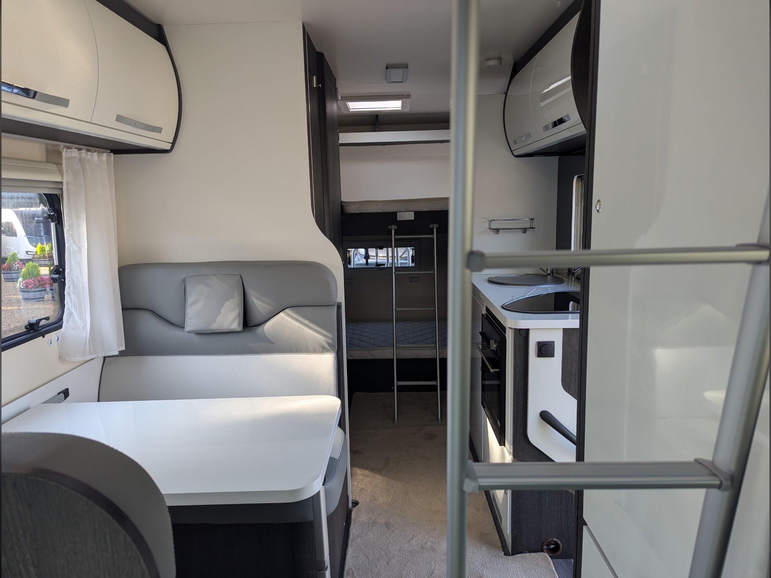 There are two bunk beds at the rear, with the lower bunk being able to be folded away to provide more space in the garage area.
