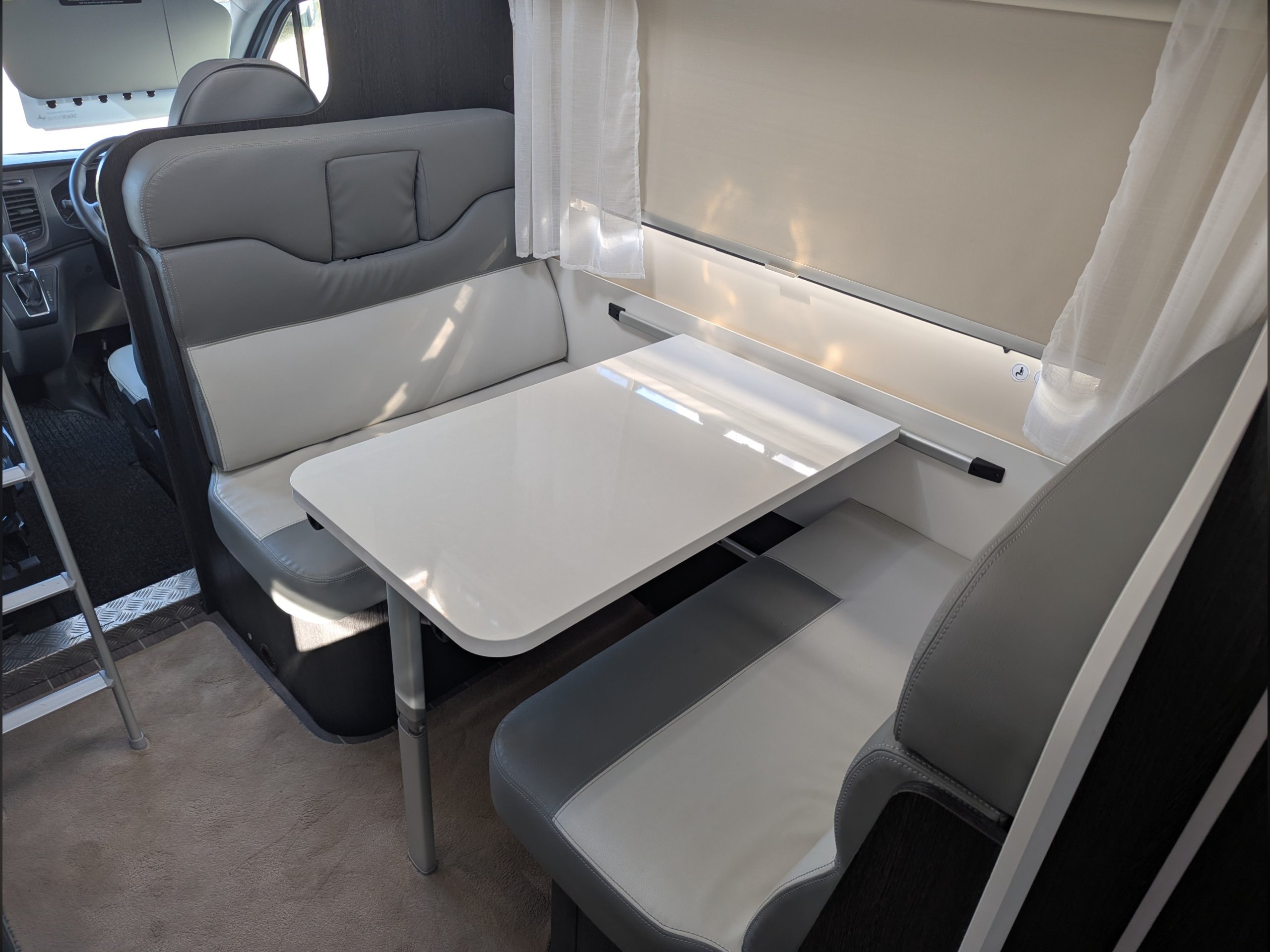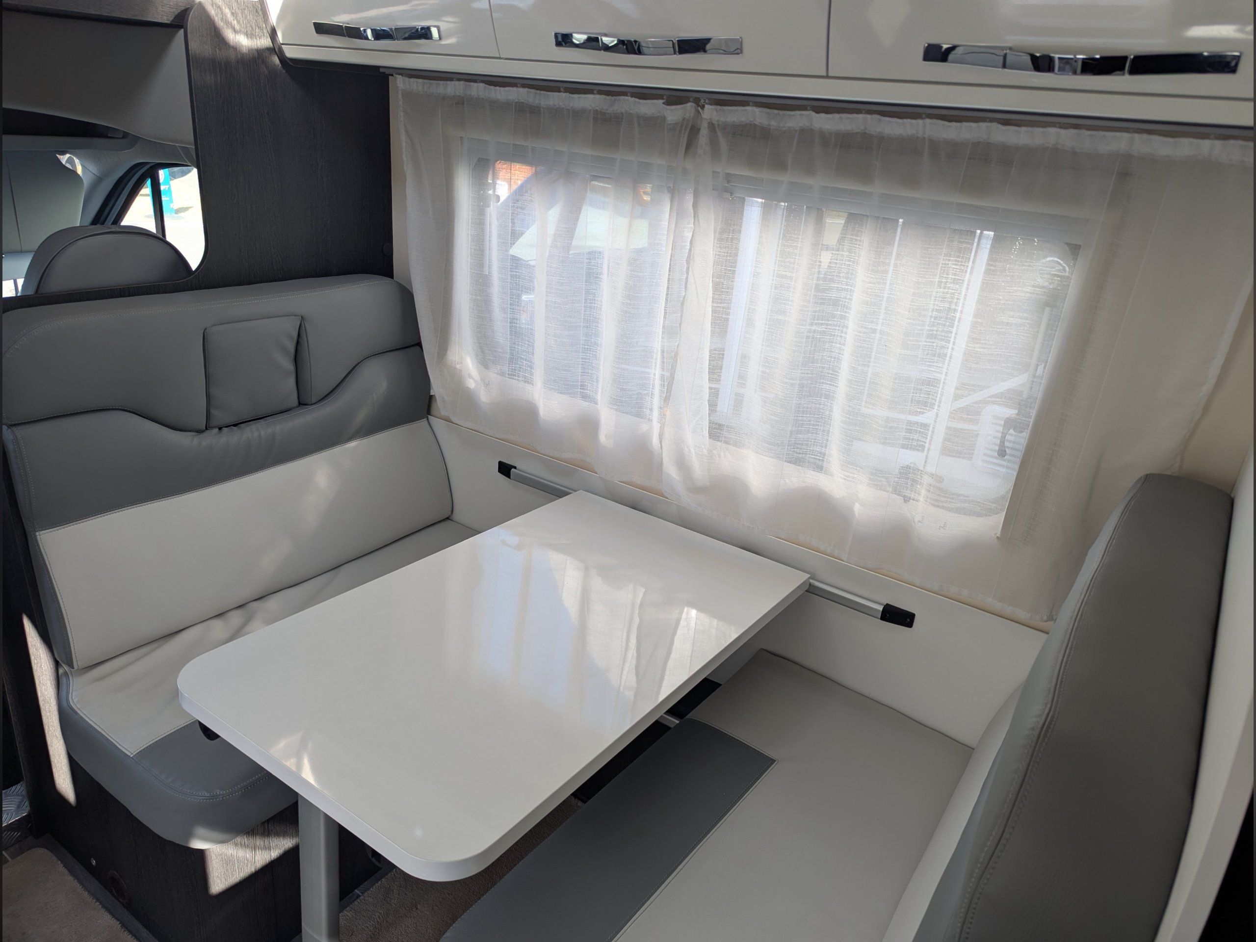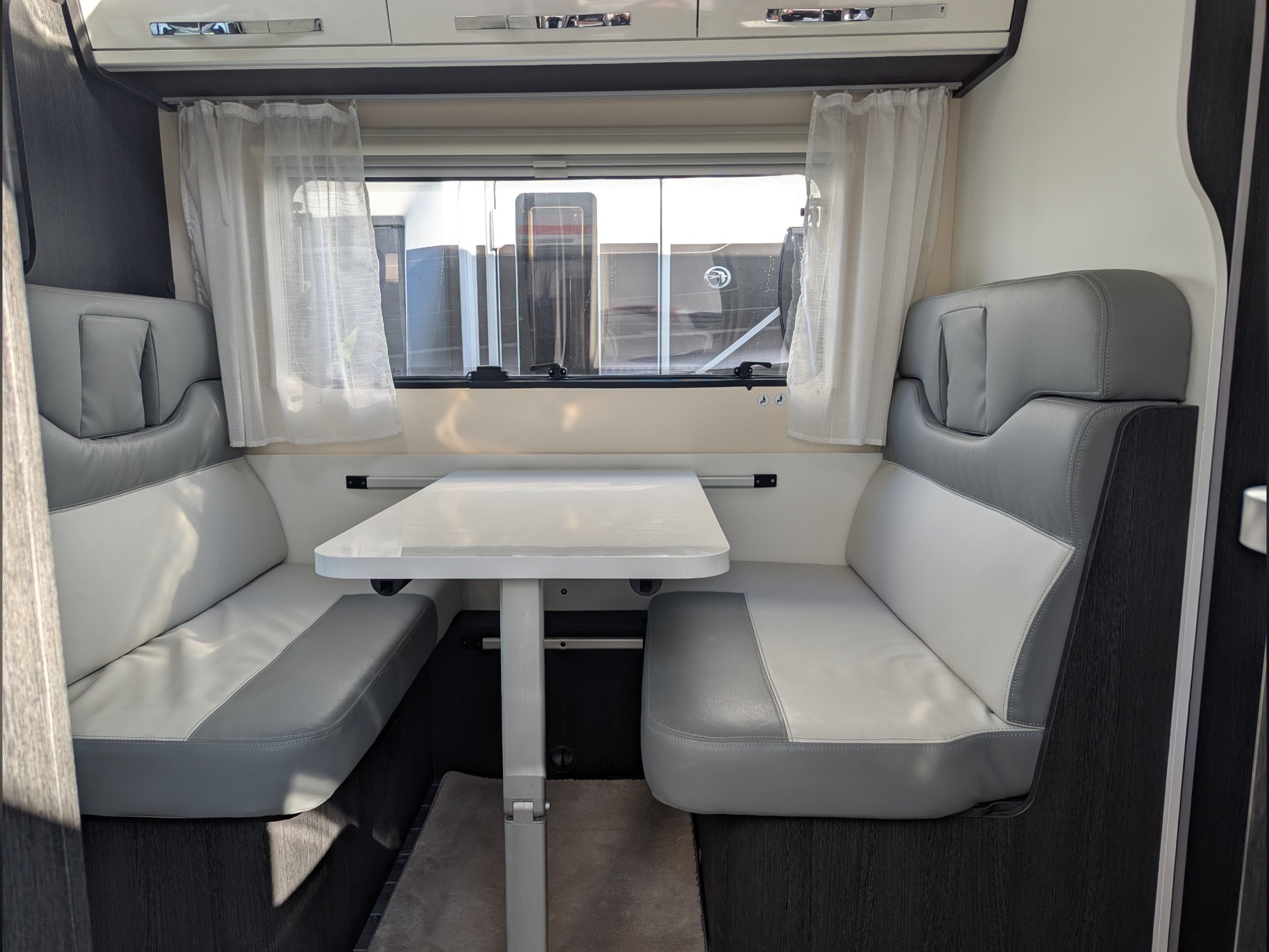 The forward dinette area can be converted into an additional double bed, providing flexibility for family meals and sleeping arrangements, which means sleeping for up to 6 people and providing 6 travel seats.