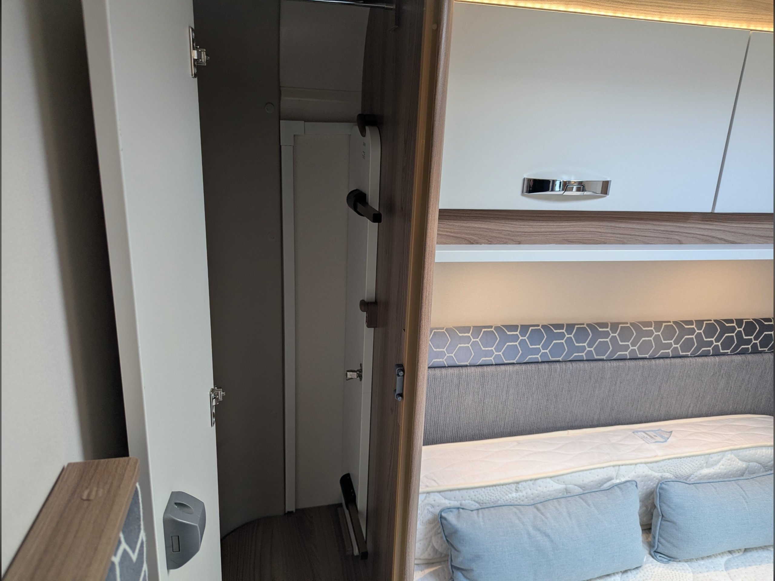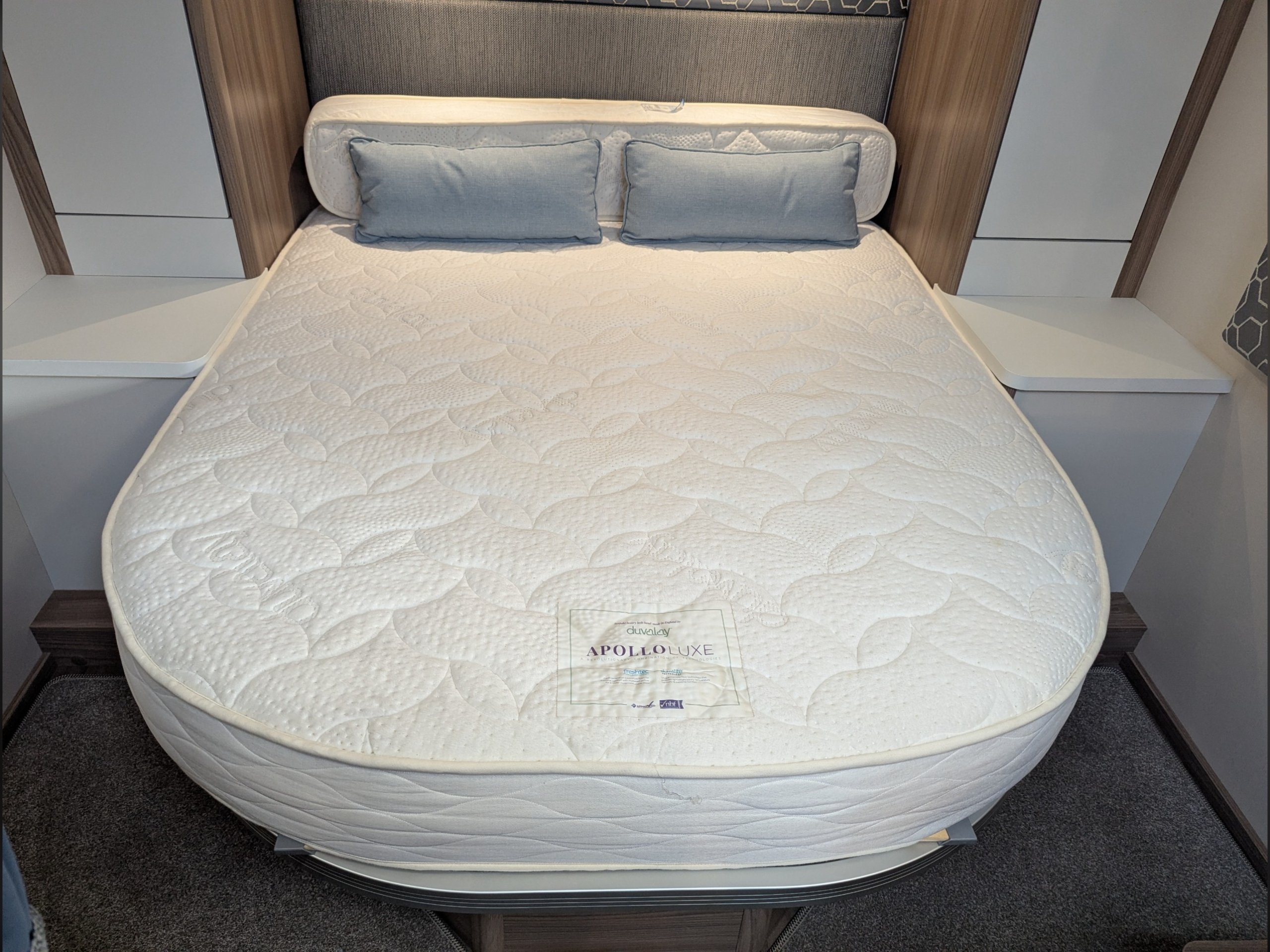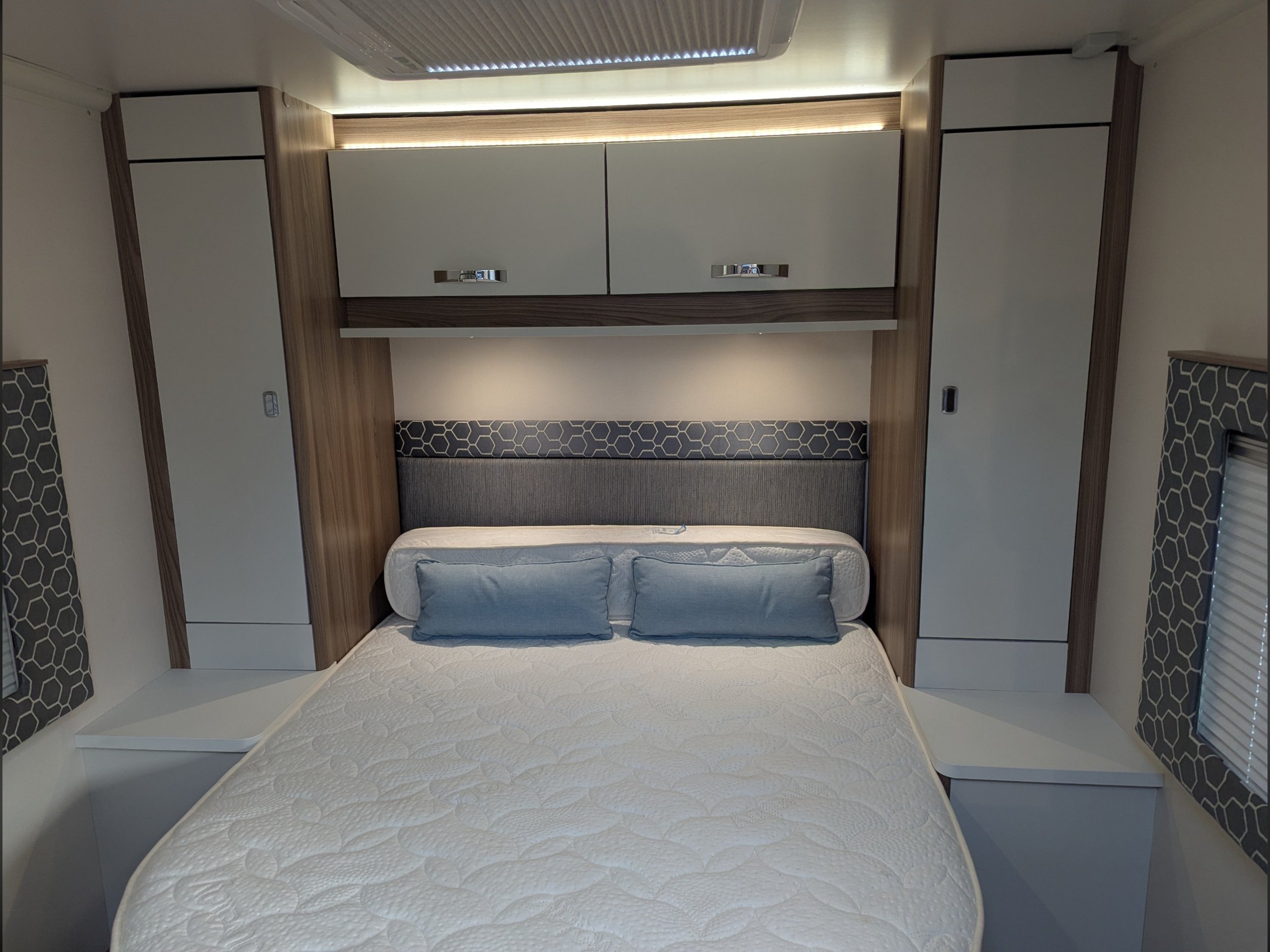 The lounge can be converted into a second double bed, and the island bed can be slid back during the day to increase space.