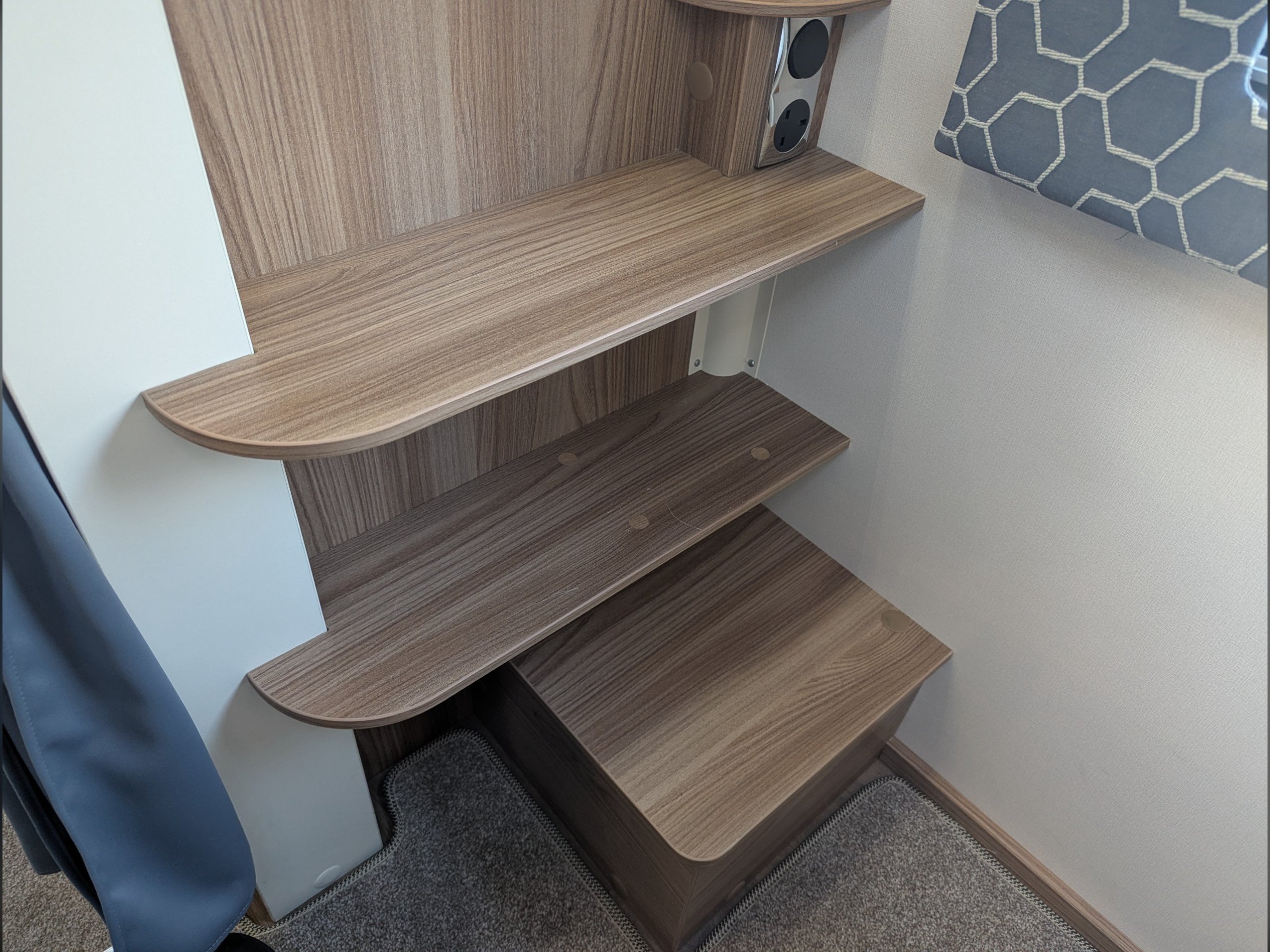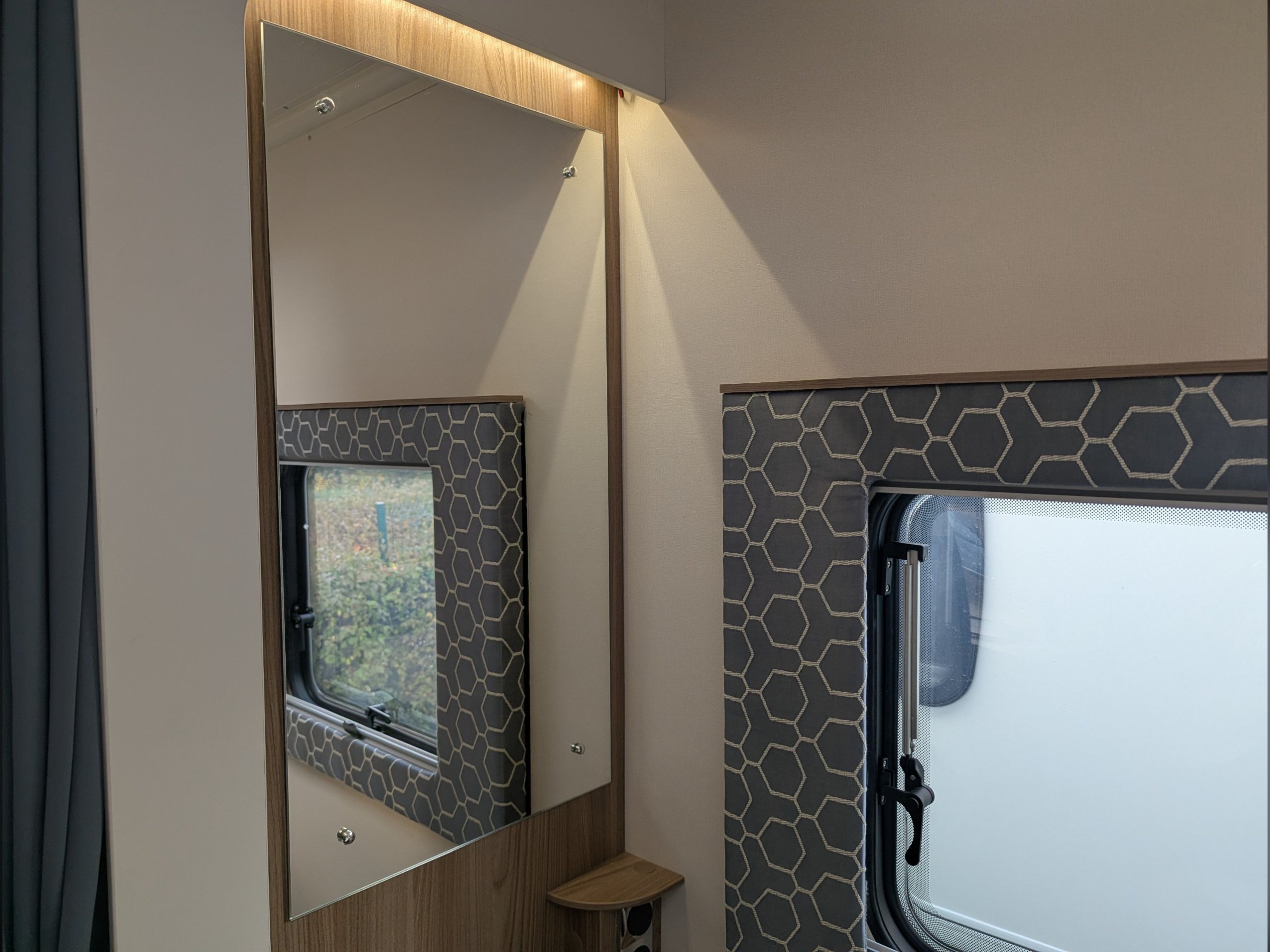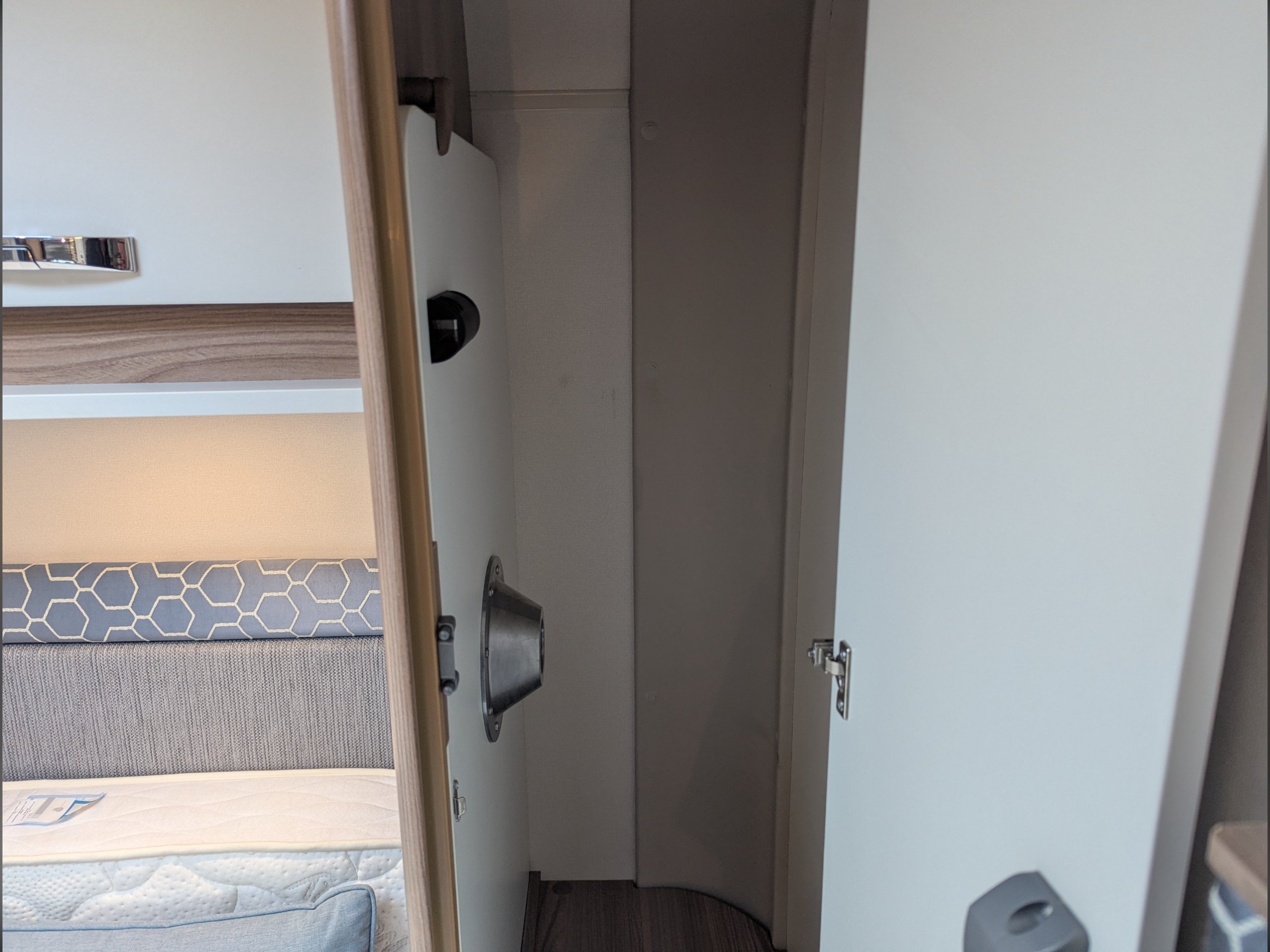 The lounge can be converted into a second double bed, and the island bed can be slid back during the day to increase space.