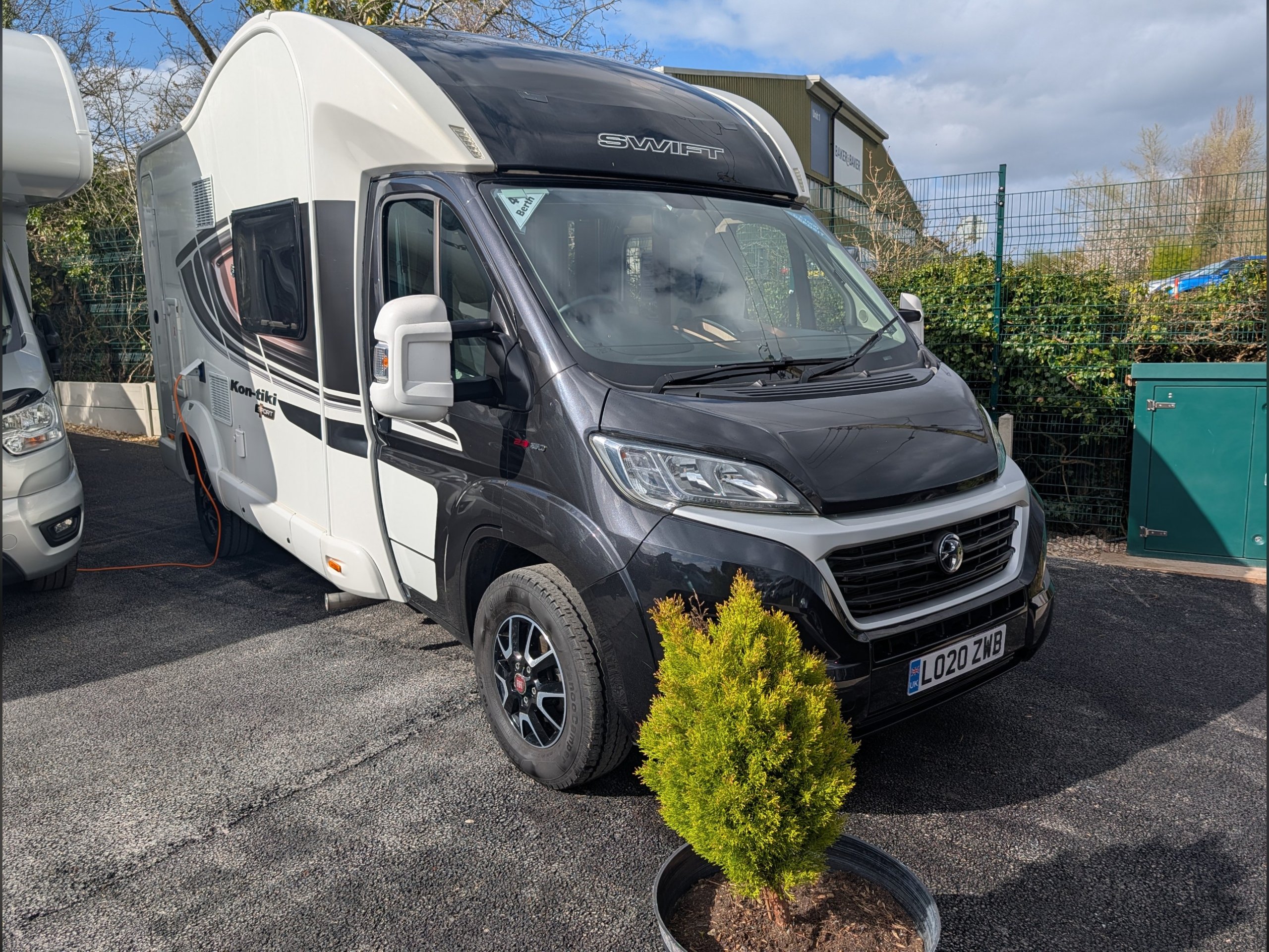 This 2020 Swift Kon-Tiki Sport 524 is a 4-berth, 4-travel seat, motorhome based on a Fiat Ducato.